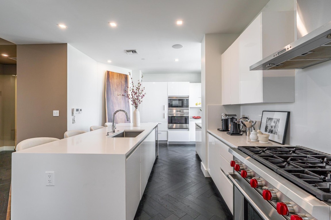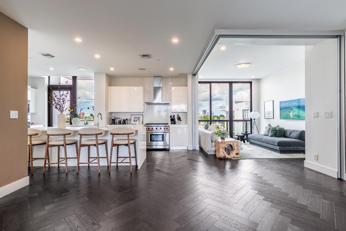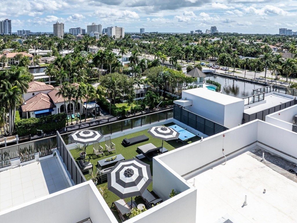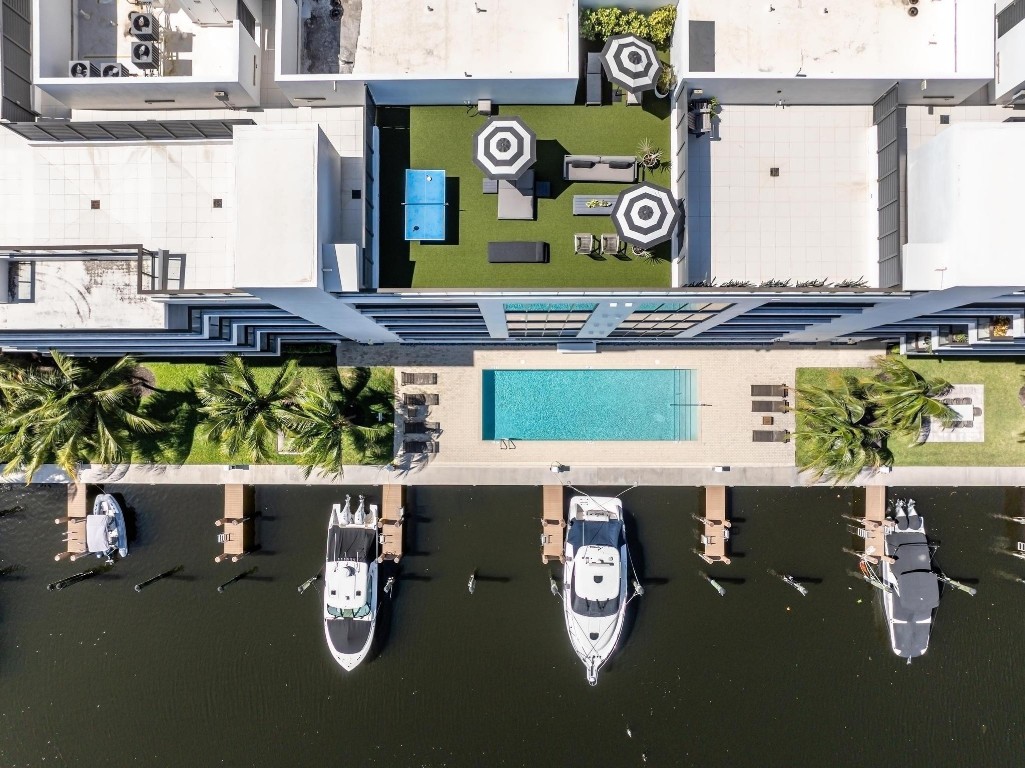 SPECTACULAR FLOW-THROUGH WATERFRONT PENTHOUSE in PRIME LAS OLAS ISLES LOCATION! 3bed/3bth residence with a 40' DOCK (NO FIXED BRIDGES), PRIVATE 1,100 SF ROOFTOP DECK, and panoramic sunrise& sunset views through floor-to-ceiling impact windows. Enjoy breathtaking vistas of the Las Olas canals, ocean, & surrounding multimillion-dollar estates. The unit features a PRIVATE ELEVATOR, over 10' ceilings, smart home automation with Lutron controls for shades, lighting, TV & sound. The gourmet chef's kitchen includes Wolf gas stove & oven, Sub-Zero appliances, wine cooler. 2 expansive terraces. Amenities: saltwater pool, gym, outdoor barbecue area, SUP/kayak rack, bike room, extra storage. 2covered parking spaces. Professionally decorated. Short walk to the beach, restaurants, upscale shops.