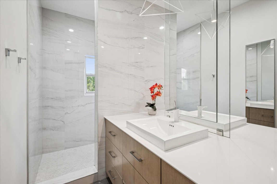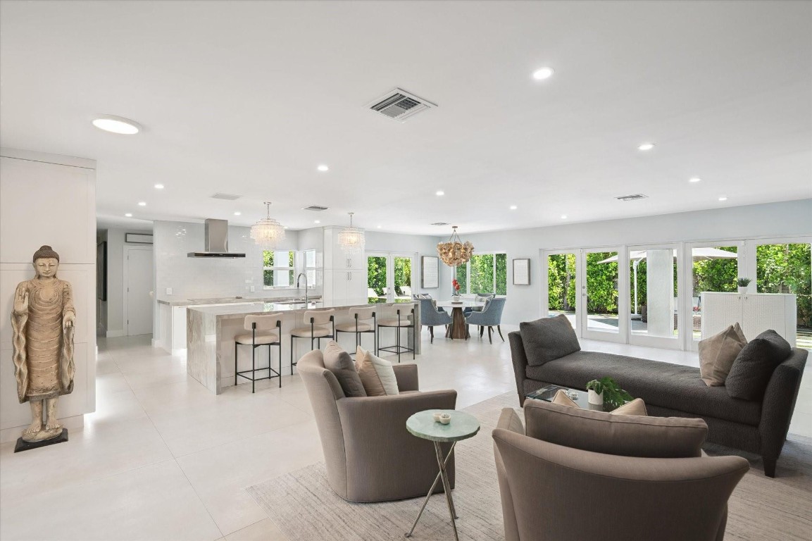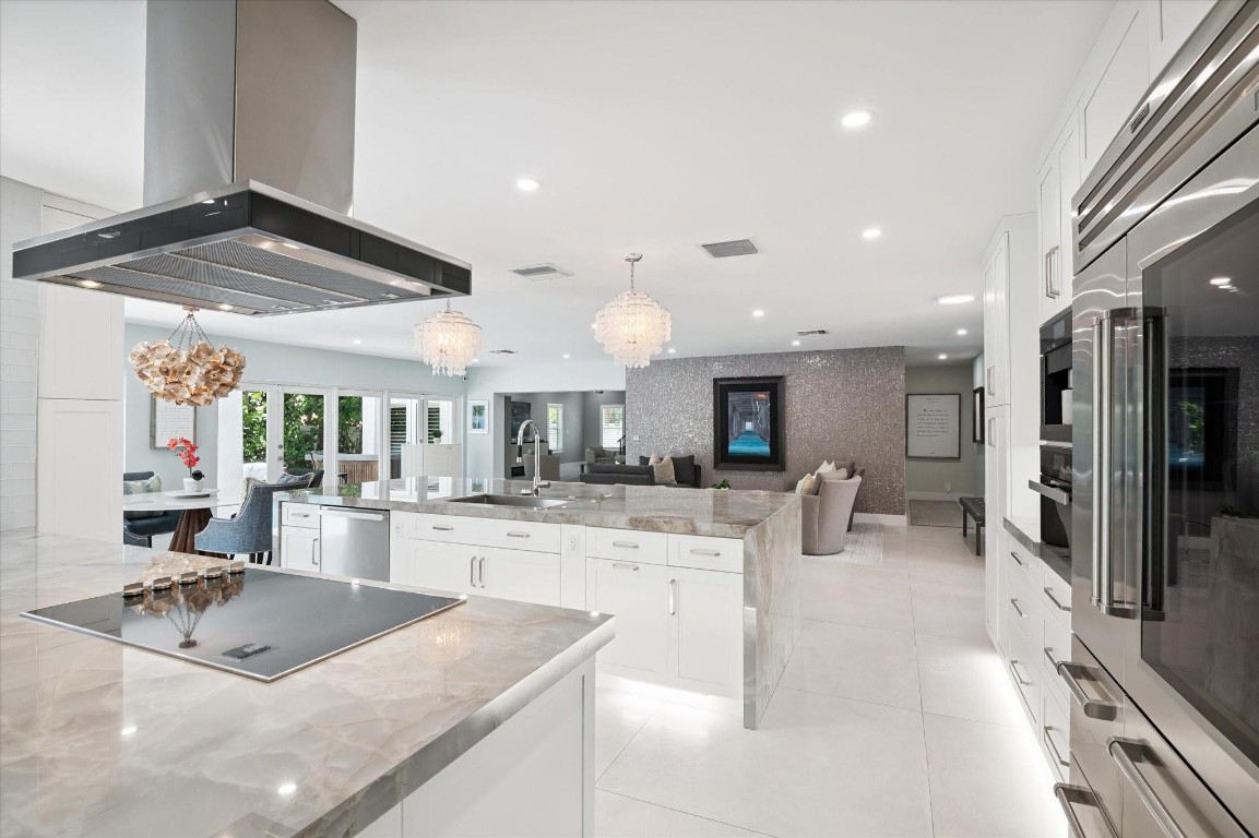 Coral Ridge luxury home in Bayview School District. Expertly renovated in 2021, this 3,011 sq ft, 3 bed, 3.5 bath residence features a metal roof, impact windows/doors, and an open-concept chef’s kitchen with Sub-Zero & Miele appliances, custom cabinetry, and oversized island. Two large first-floor ensuite bedrooms offer flexibility for guests or multi-generational living. The private upstairs primary suite includes a spa-style bath, walk-in closet, and covered balcony. Outdoor living boasts a heated saltwater pool, dining patio, and 4-hole putting green. Minutes to Fort Lauderdale Beach, shopping, dining, and parks.