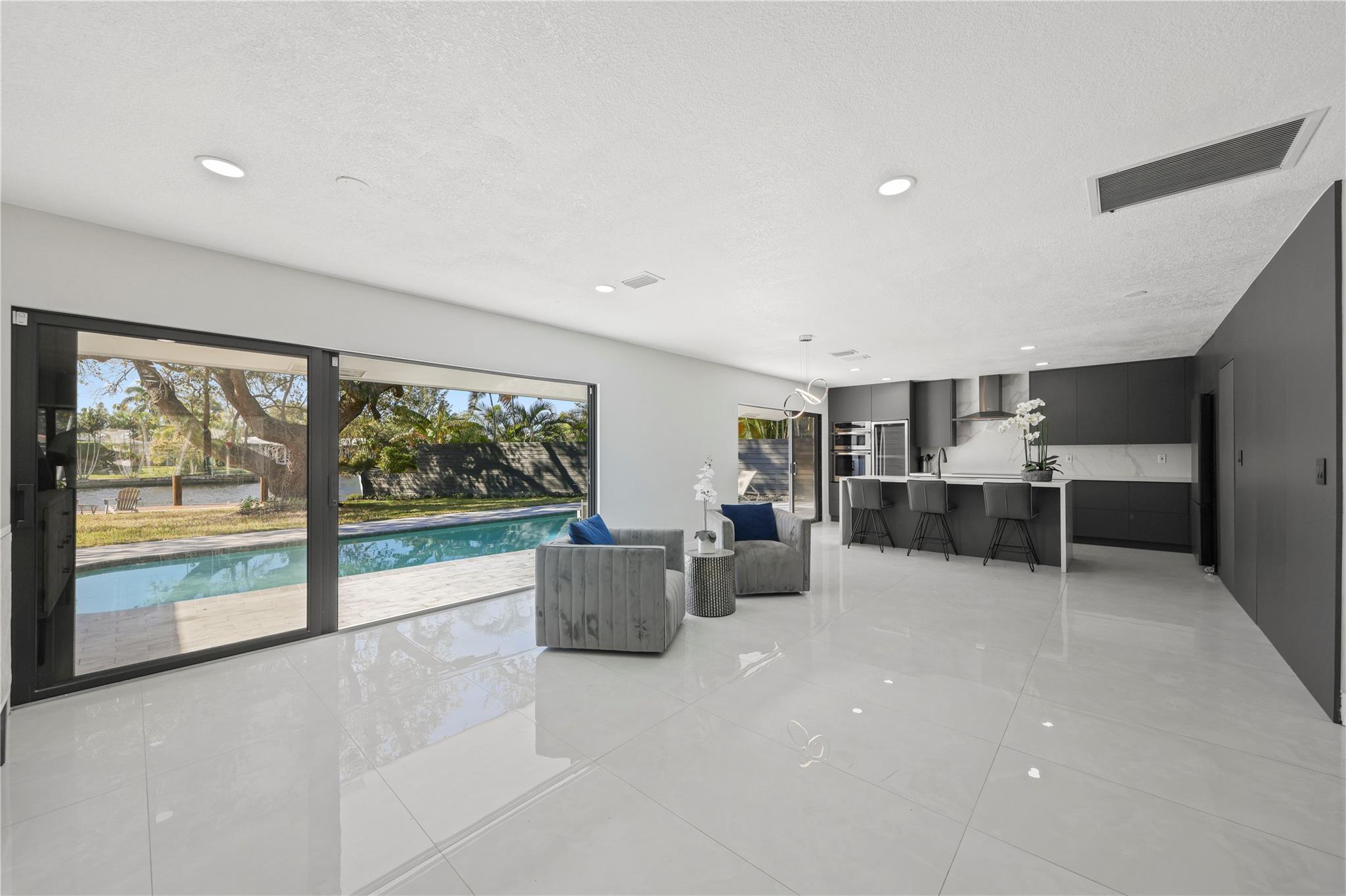 Discover your dream home in Coral Ridge! This beautifully updated home offers 4-bedrooms, 2-bathrooms, a 2-car garage, and impact windows and doors. The open-concept design with high-end finishes and a modern kitchen featuring top appliances and a spacious island is great for large families and entertaining. The oversized backyard includes a sparkling pool, large dock, and serene Middle River Waterway views. Boating enthusiasts will appreciate ocean access with one fixed bridge allowing 40 ft boats with ease. Located in the A-rated Bayview Elementary school district, enjoy easy access to the beach, shopping, and amenities. Option to purchase furnished or unfurnished. Owner is willing to help with buy down rate and closing cost