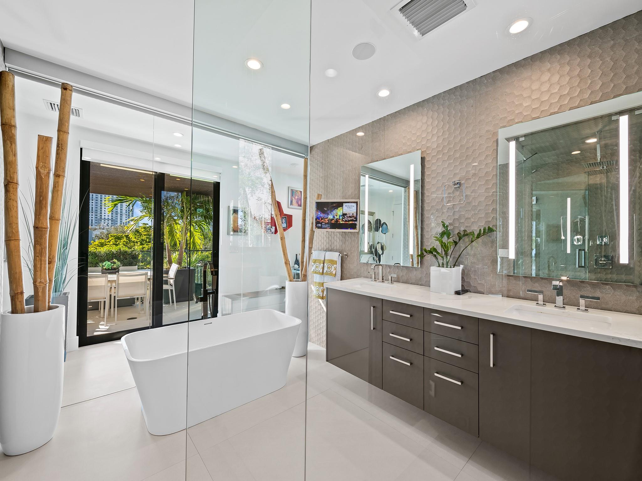 Sophisticated urban luxury inspired by modern architecture. Walking distance to dining, shopping, entertainment & the water taxi. This 3 story townhome offers a luminous open flr plan, walls of glass, an open balcony & 3rd flr terrace outfitted with a summer kitchen, outdoor TV & downtown skyline views. The soaring glass foyer accesses 2 ensuite bedrms, an office/den area with a bar & elevator to all 3 flrs. The 2nd flr opens onto the great rm, dining area & half bath. The custom kitchen is ideal for entertaining with a large center island, gas cook top & upgraded appliances. The primary suite occupies the 3rd flr complete with a lavish spa inspired bathrm, custom walk-in closet & access to the 3rd flr terrace. Gated entry, pool & patio area, home generator. Sq ft from architect's plans.
