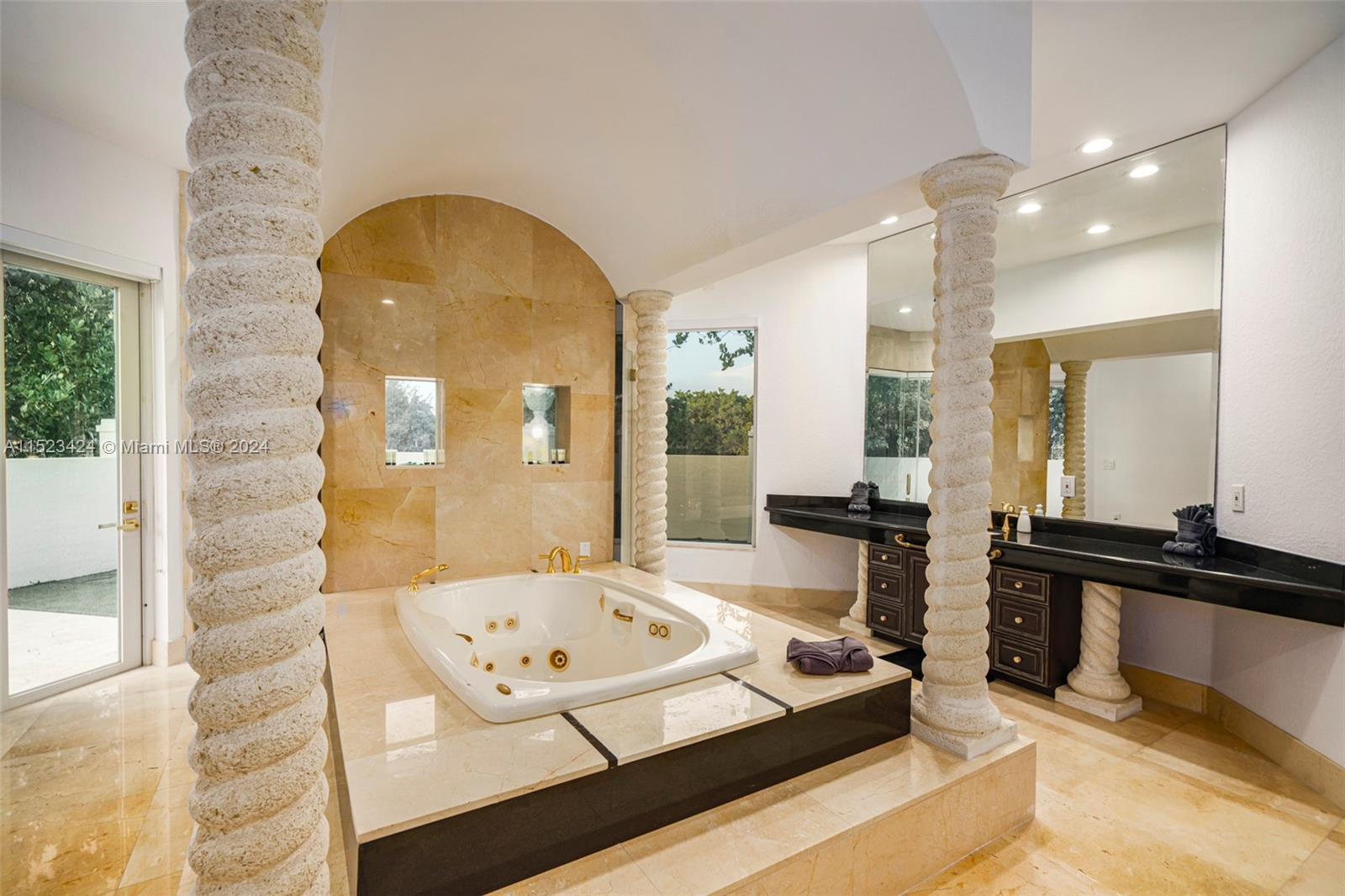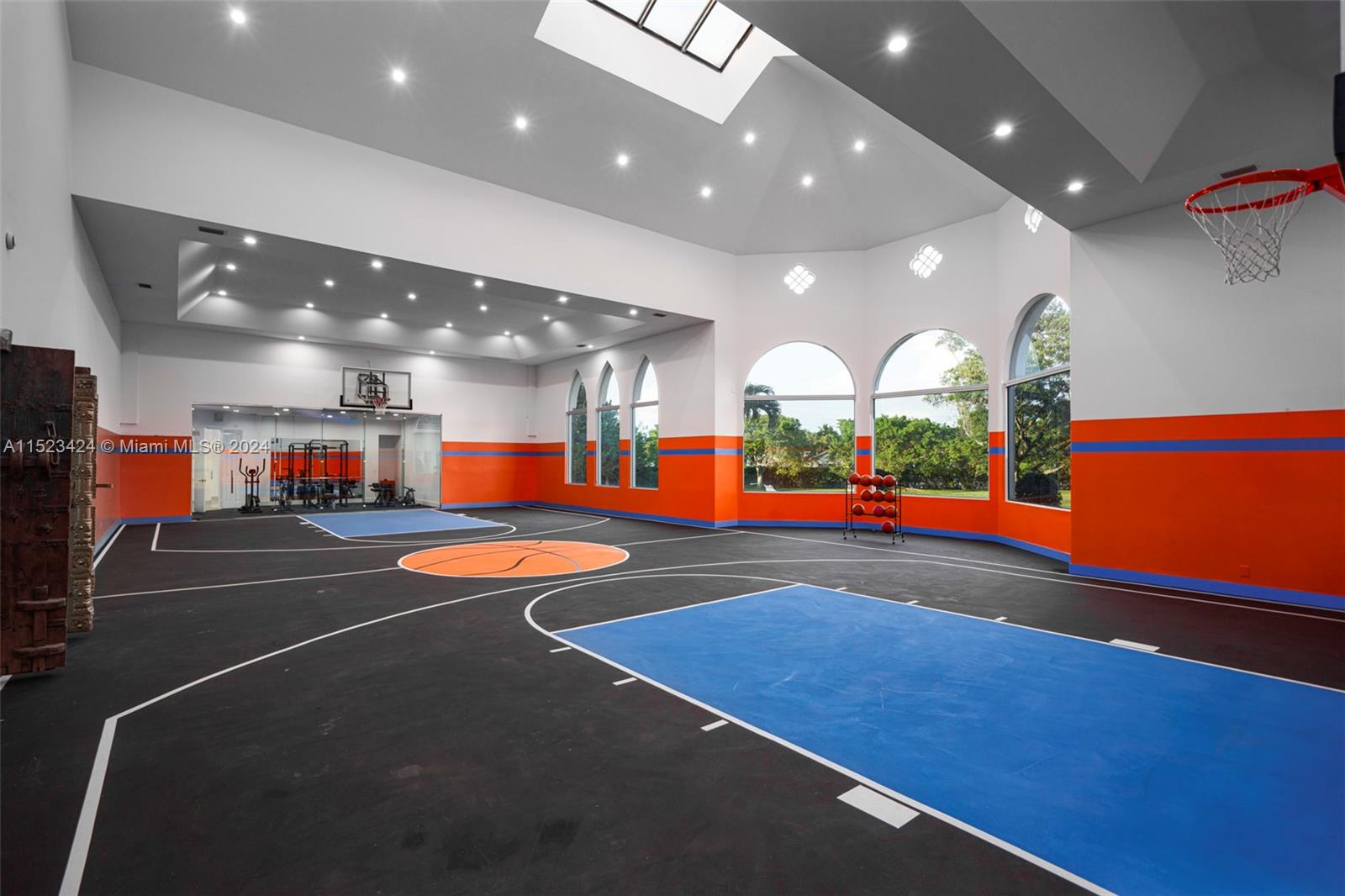 MASTERPIECE nestled on 3.84 acres! The only property of this size in Weston! This 19,269 SF palace features luxury finishes, a beautiful indoor basketball court, 26' x 20' home theater, compact windows, imported custom doors from Spain, full service interior bar with fireplace, exercise room, contemporary kitchen with high end finishes and appliances, long majestic hallways, impressive chandeliers, and much more!! The outdoors is an experience for itself, with a resort size 60 x 30 pool, and space for any occasion.