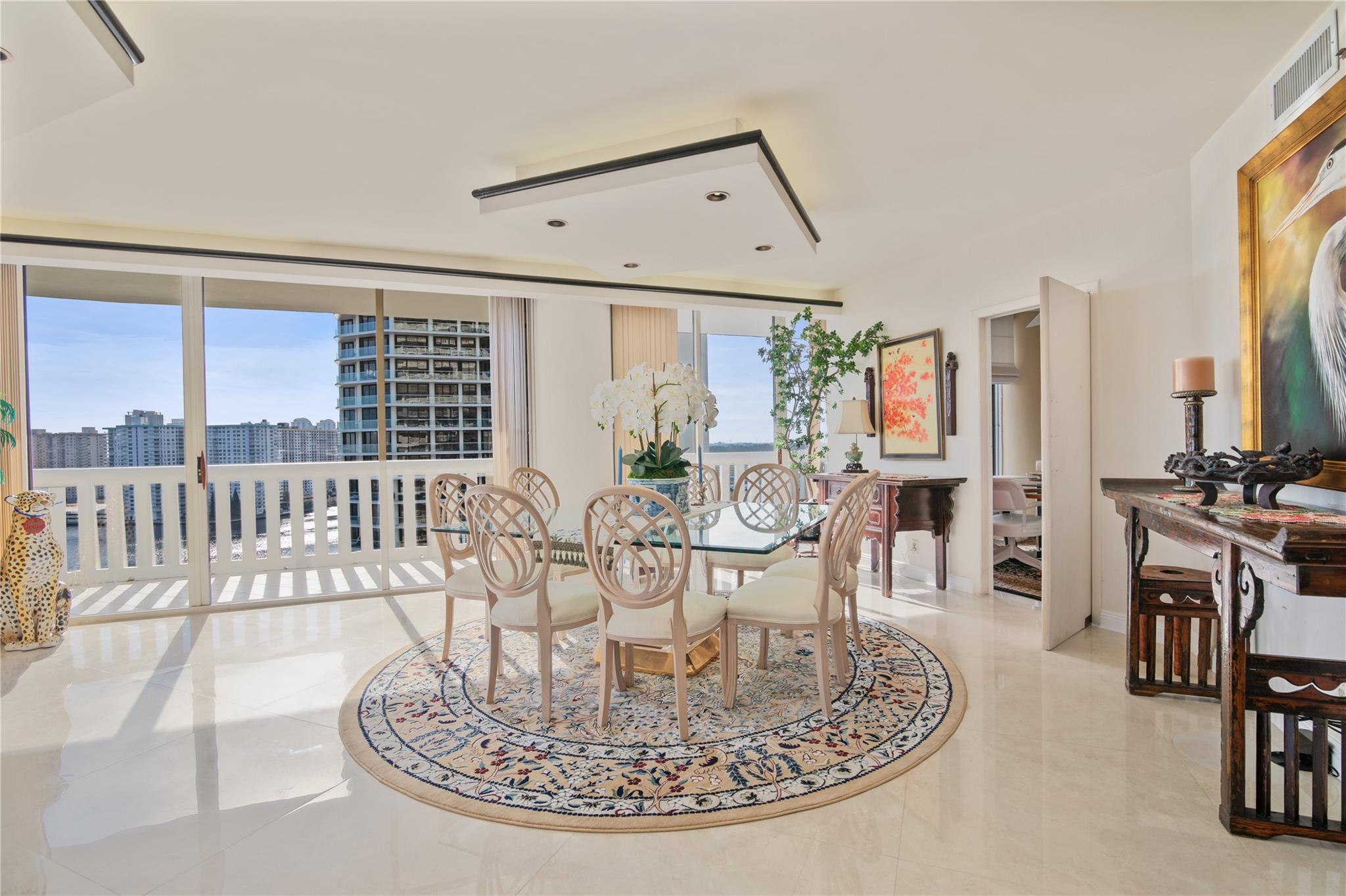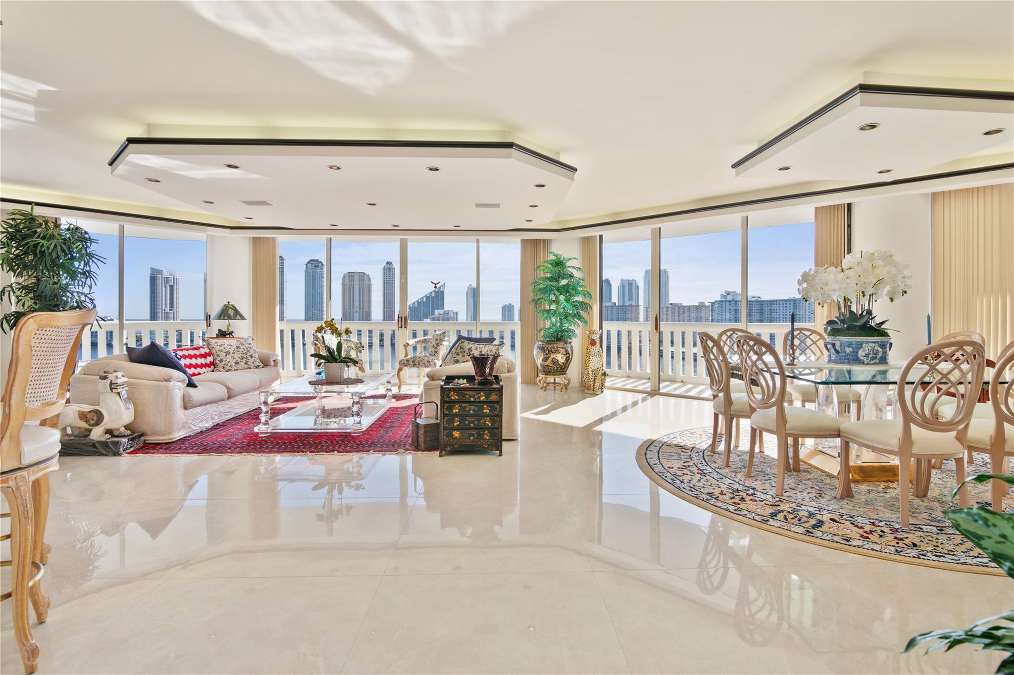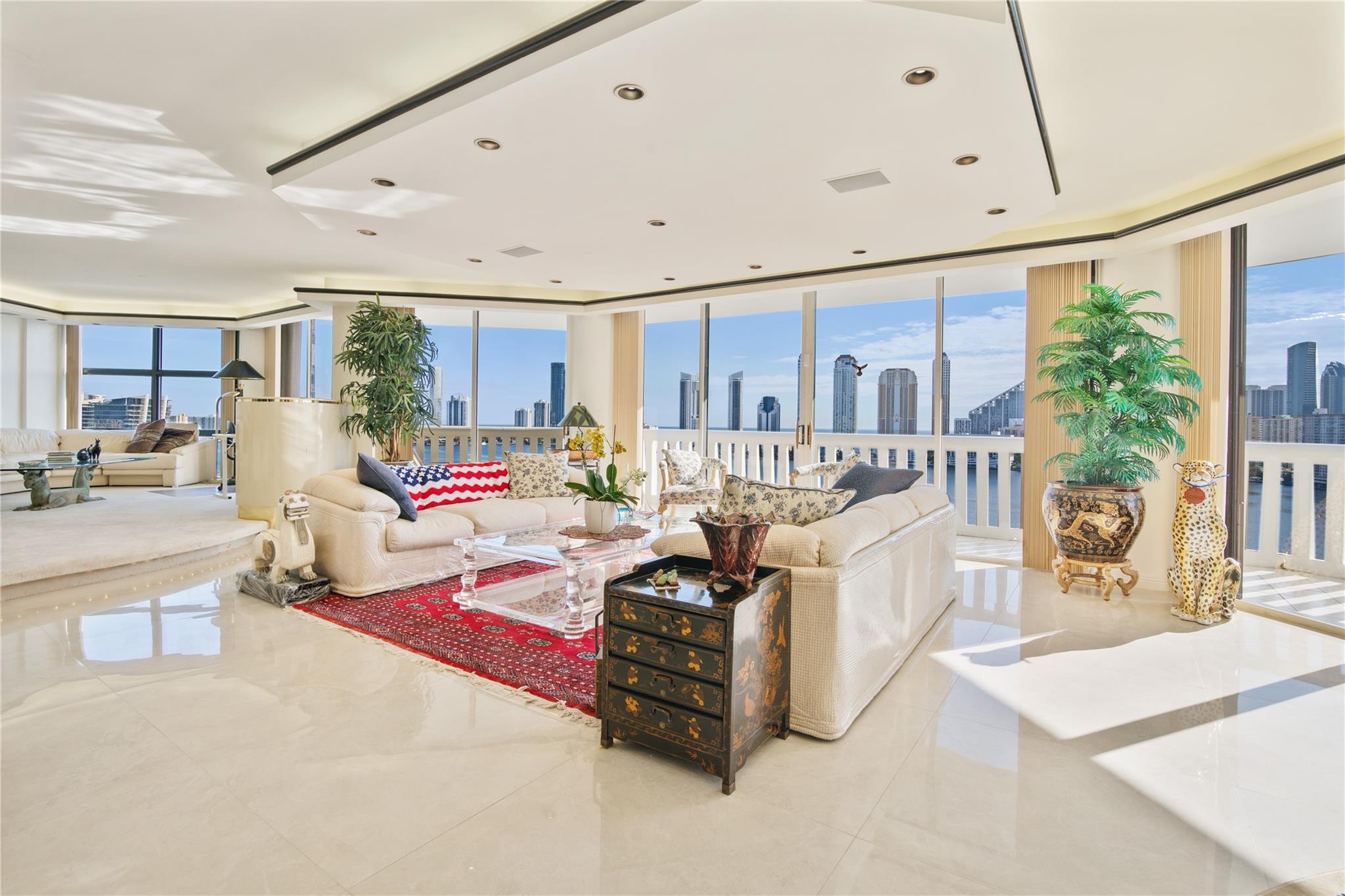 *Custom built unit*4308 sq. ft.*Breathtaking Intra-coastal views from 2 wrap around balconies*2 Master Suites*2 master bedrooms*Newer Porcelain Tile*Real hardwood oak flooring*In Kitchen - Granite Countertops replaced 2015*Newer Cabinetry, Eat in Kitchen, Appliances replaced 2021, Larger Stainless Steel fridge 38 Cubic Ft., 2 smart wall ovens, Cooking Island, Extra Pantries*2 zone AC - replaced 2021 - 2 Nests, Wet Bar off Spacious Living room. 2 Master Bathrooms, Roman tub with Jacuzzi, 40 year inspection done 2021, Roof Replaced Nov 2023, Williams Island offers a Country club resort lifestyle, Full services European Style Spa, Indoor Pool, 15 Tennis courts with teaching pros, 4 pickleball courts, Doggie park, 2 Restaurants, outdoor pool, Deep Water Mariana, Intra-Coastal walkway