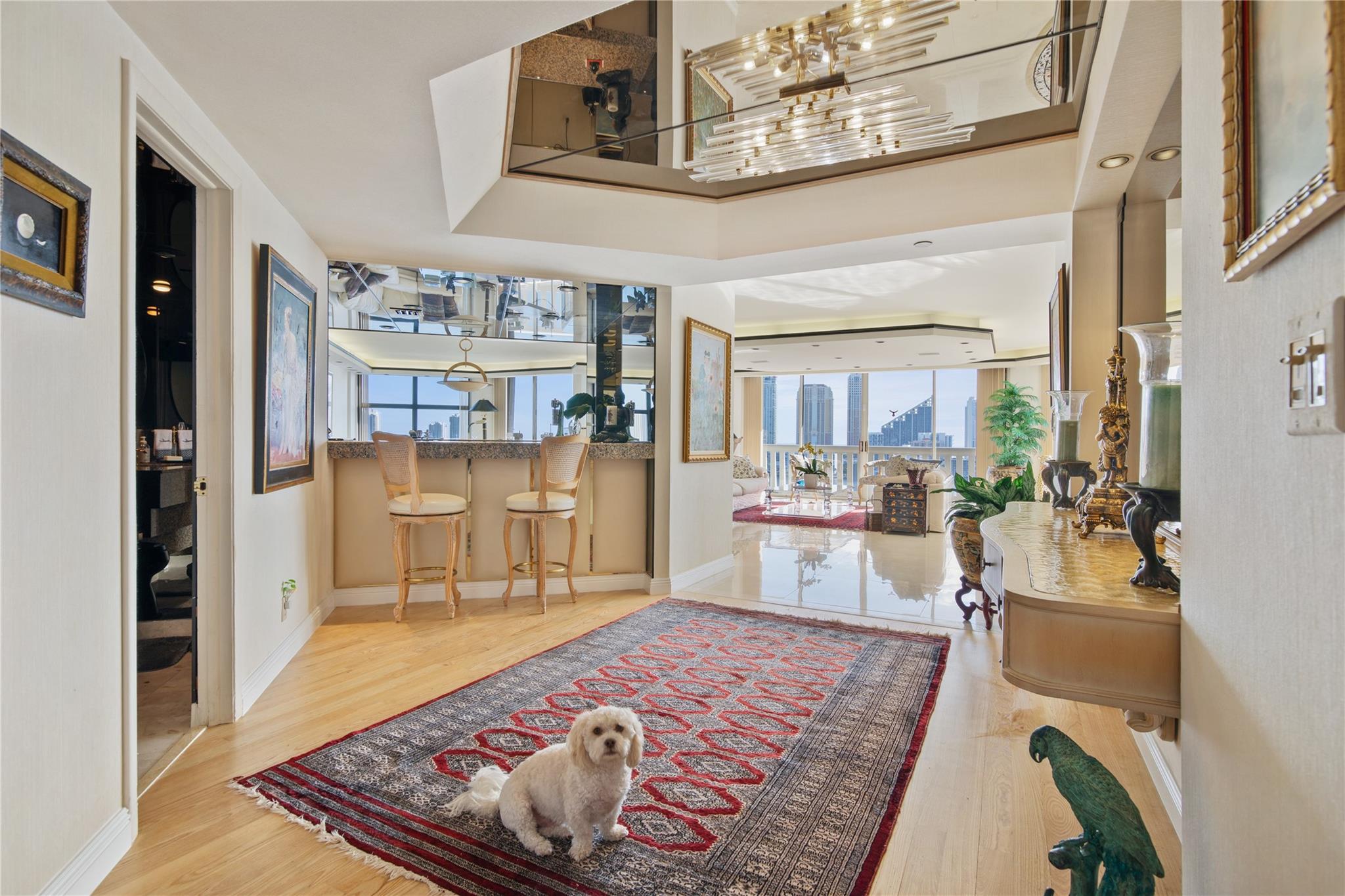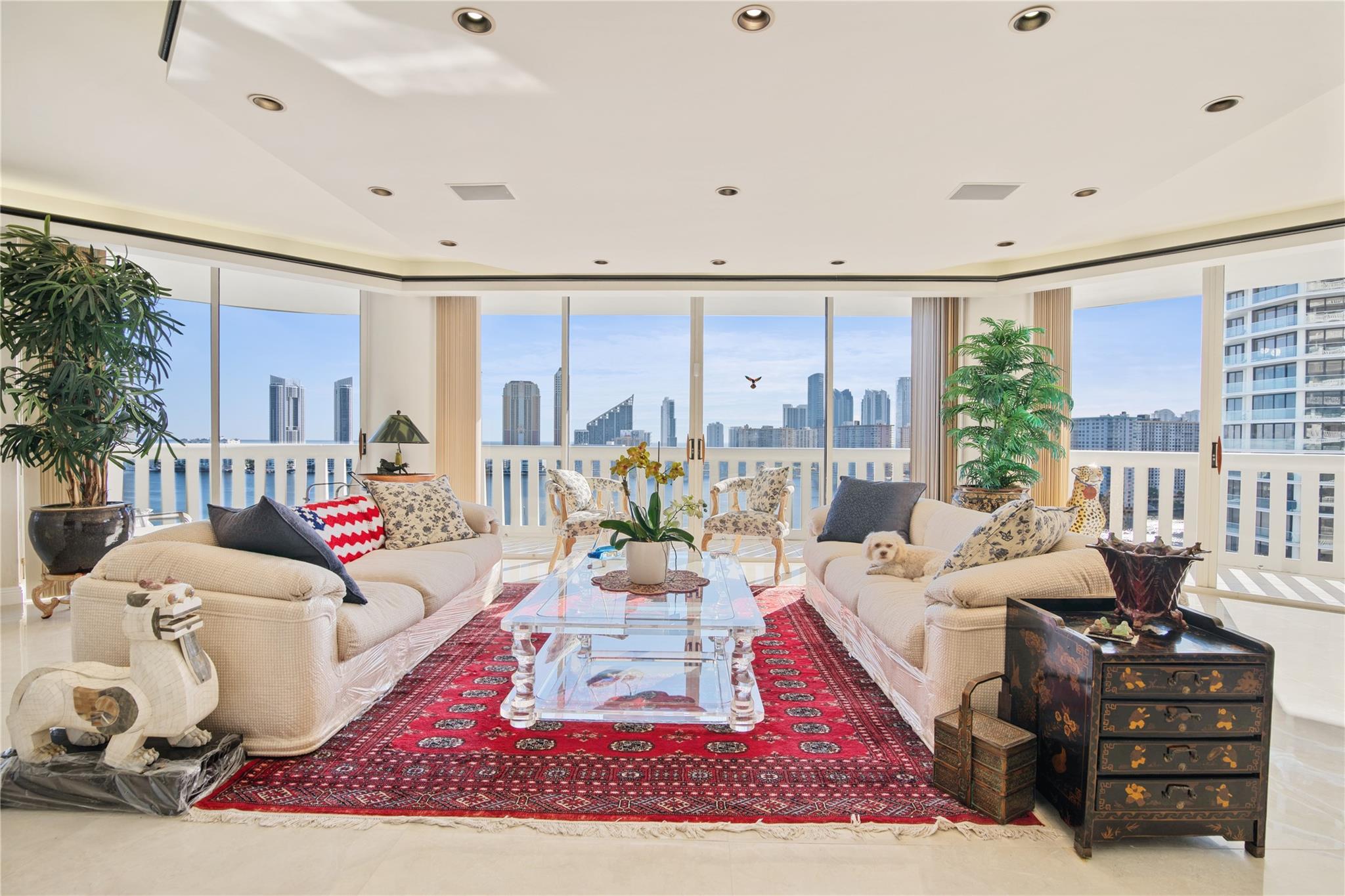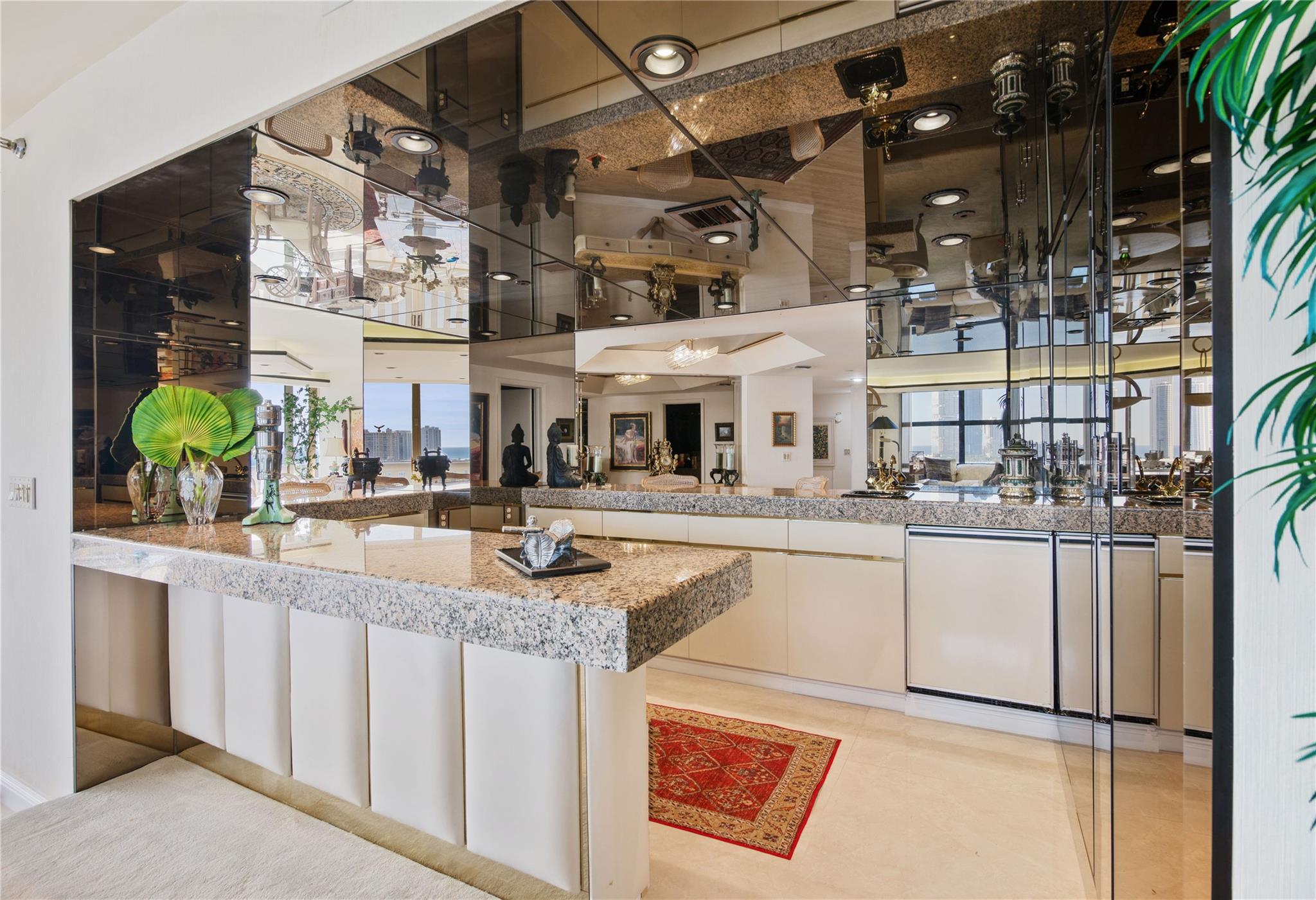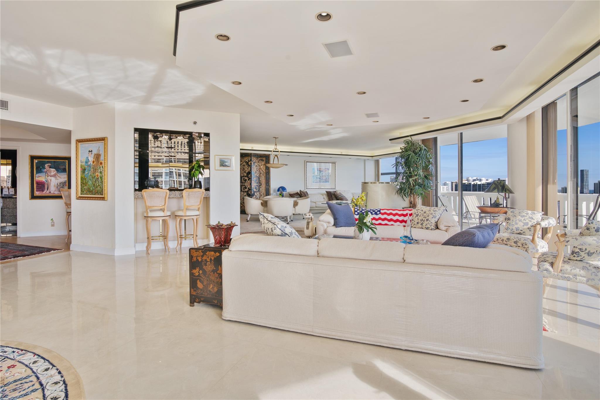*Custom built unit*4308 sq. ft.*Breathtaking Intra-coastal views from 2 wrap around balconies*2 Master Suites*2 master bedrooms*Newer Porcelain Tile*Real hardwood oak flooring*In Kitchen - Granite Countertops replaced 2015*Newer Cabinetry, Eat in Kitchen, Appliances replaced 2021, Larger Stainless Steel fridge 38 Cubic Ft., 2 smart wall ovens, Cooking Island, Extra Pantries*2 zone AC - replaced 2021 - 2 Nests, Wet Bar off Spacious Living room. 2 Master Bathrooms, Roman tub with Jacuzzi, 40 year inspection done 2021, Roof Replaced Nov 2023, Williams Island offers a Country club resort lifestyle, Full services European Style Spa, Indoor Pool, 15 Tennis courts with teaching pros, 4 pickleball courts, Doggie park, 2 Restaurants, outdoor pool, Deep Water Mariana, Intra-Coastal walkway
