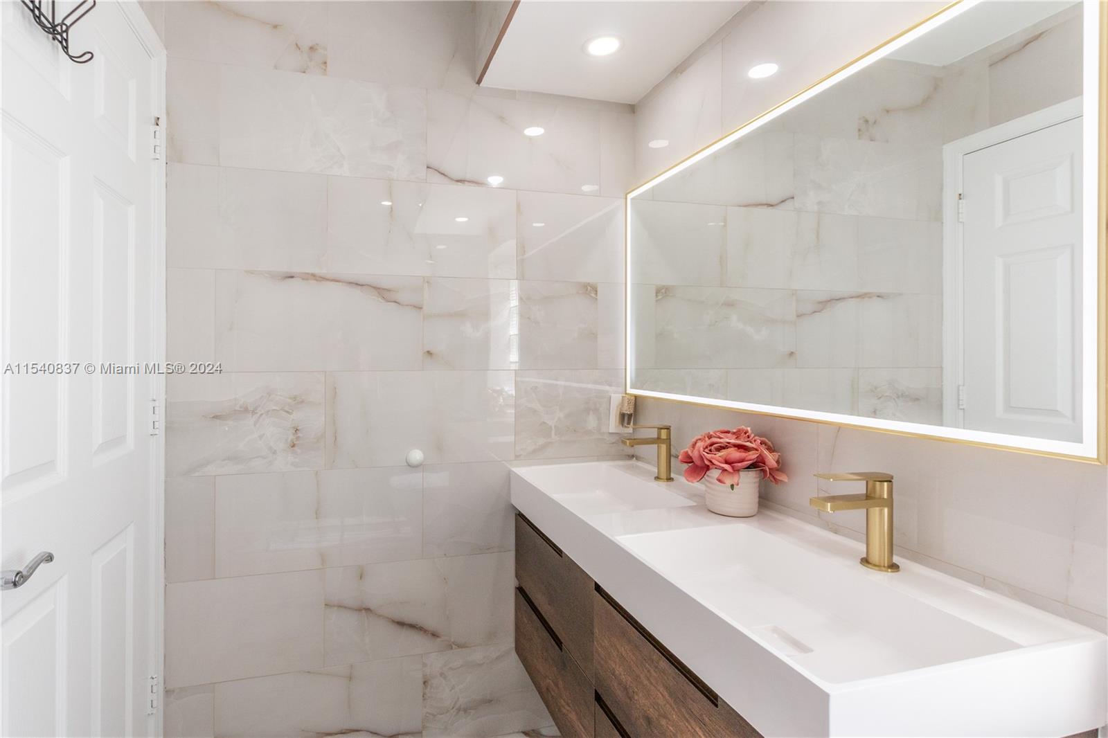 Beautiful single family Home in Aventura Lakes, Completely Remodeled, porcelain floor throughout the entire house, Electric Hunter Douglas blinds installed in every window, New recessed light on the whole house. Modern kitchen with quartz counter top and brand new appliances. Renovated bathrooms, walk in closet and storage space. Furniture can be negotiated as well. Backyard paved and fenced. Club House with top of the line Gym and Exercise Room, and oversize pool and Jacuzzi !! Walking distance to Aventura Mall, Aventura Park Square and Aventura Golf Course Circle. MUST SEE !!!