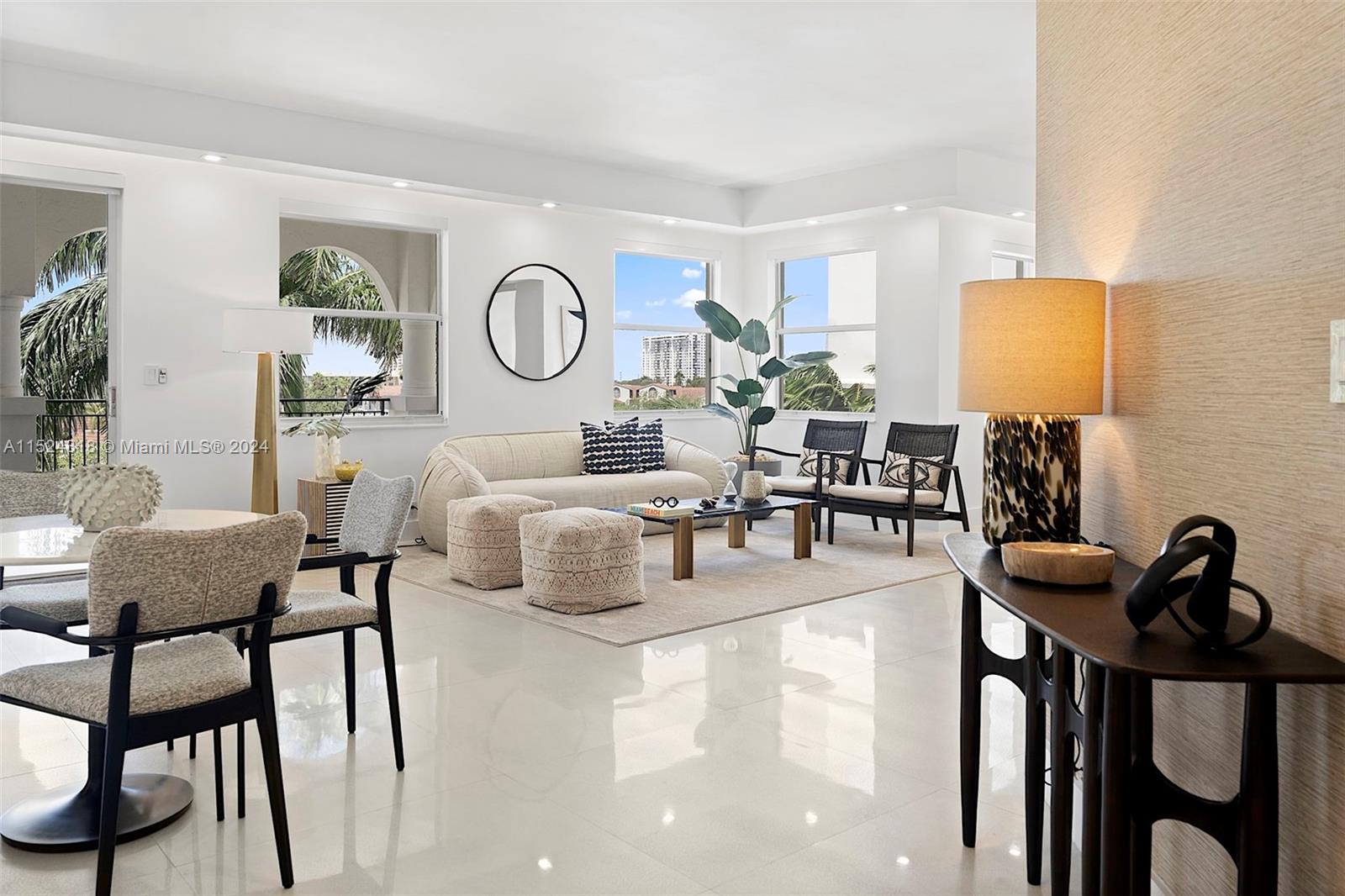 Come and enjoy living the fabulous lifestyle of Williams Island. This rarely available completely updated large 33.5 bedroom unit in Mediterranean Village feels like a home with 2,500 sq ft under AC. Unit has been nicely redone with custom European finishes and has new AC units. Unit features 3 bedrooms all en suite, with built- out closets and a guest powder room. The apartment has a large laundry area with a brand new washerdryer. The kitchen is ample with stainless steel appliances and Quartz countertops. Porcelain tiles throughout the unit. From the livingdining areas enjoy a very nice view of the boats in the marina. Unit has two large nice size terraces. Just bring your furniture and move in. Unit is immaculate. This unit also comes with a large storage and undercover parking