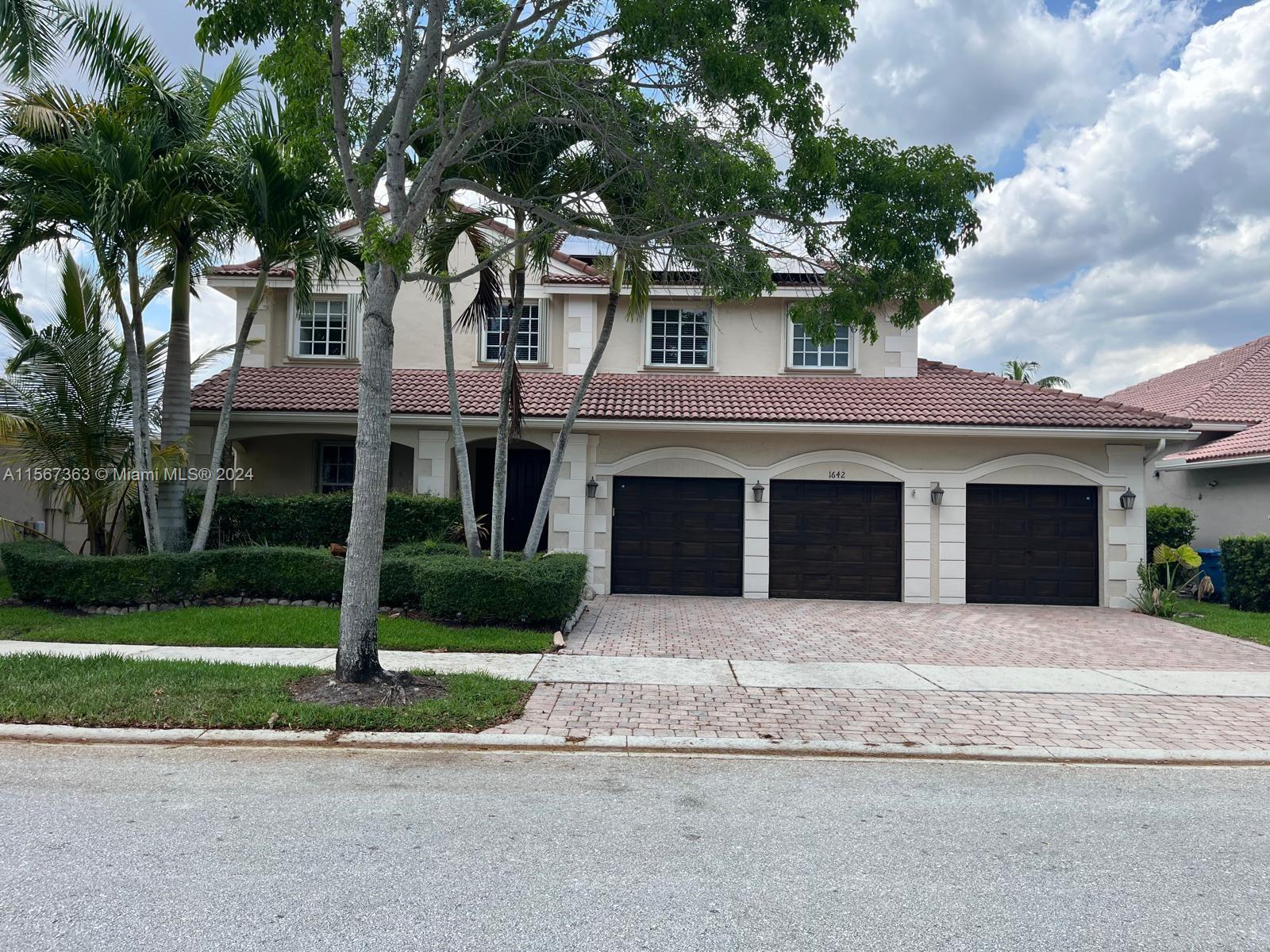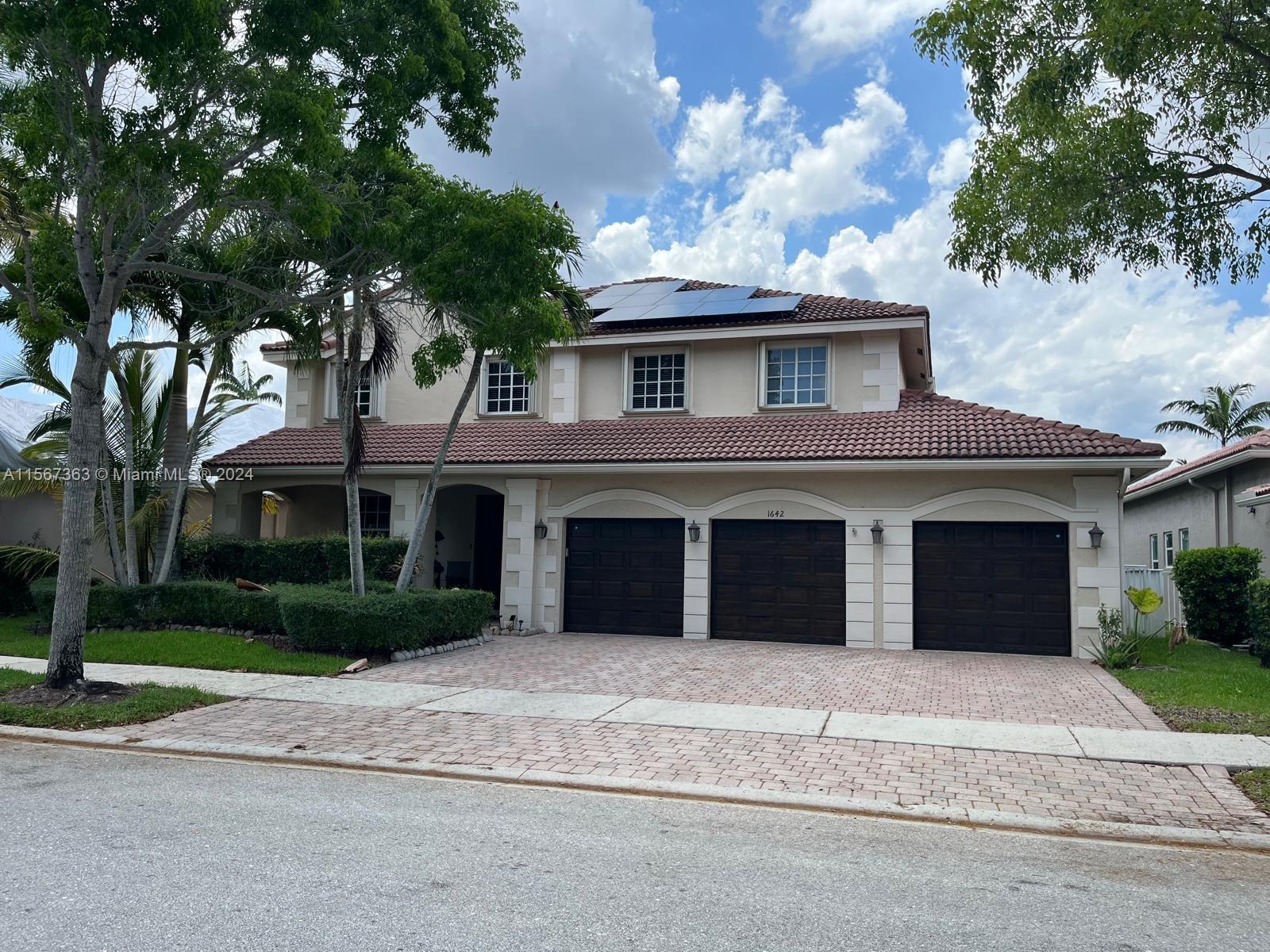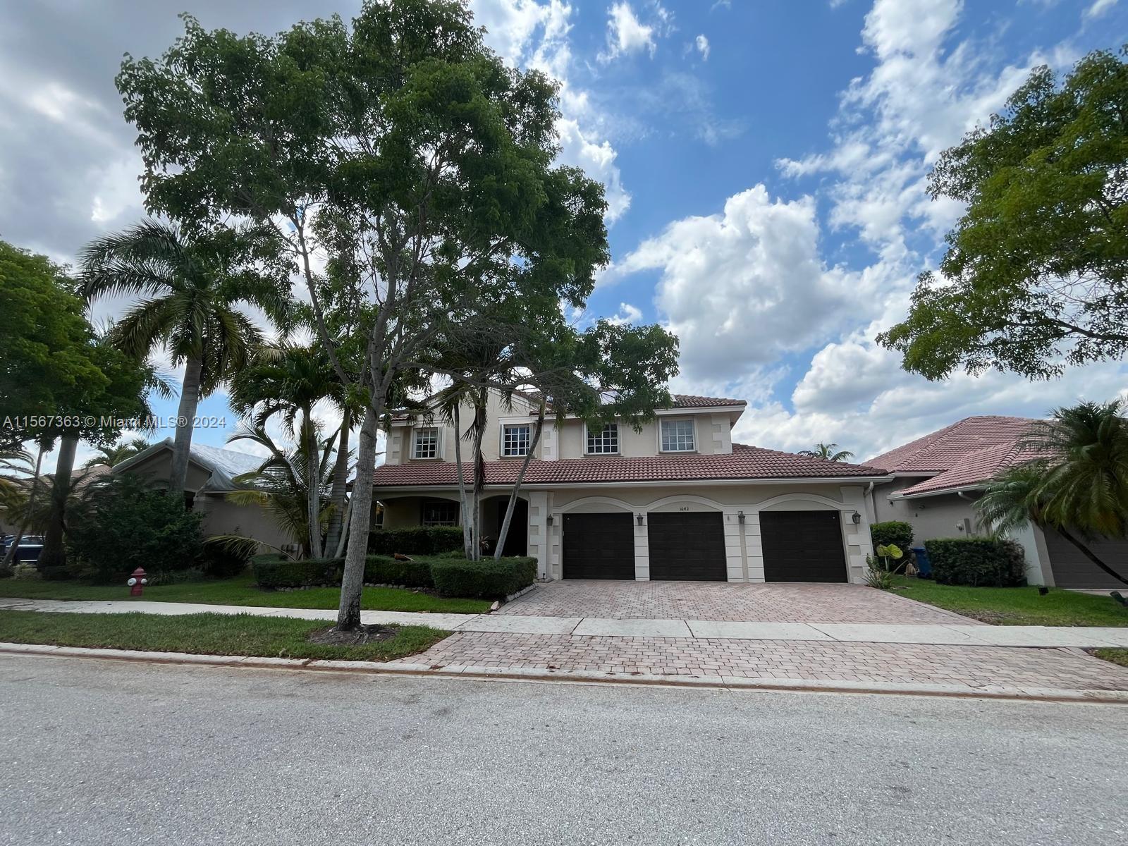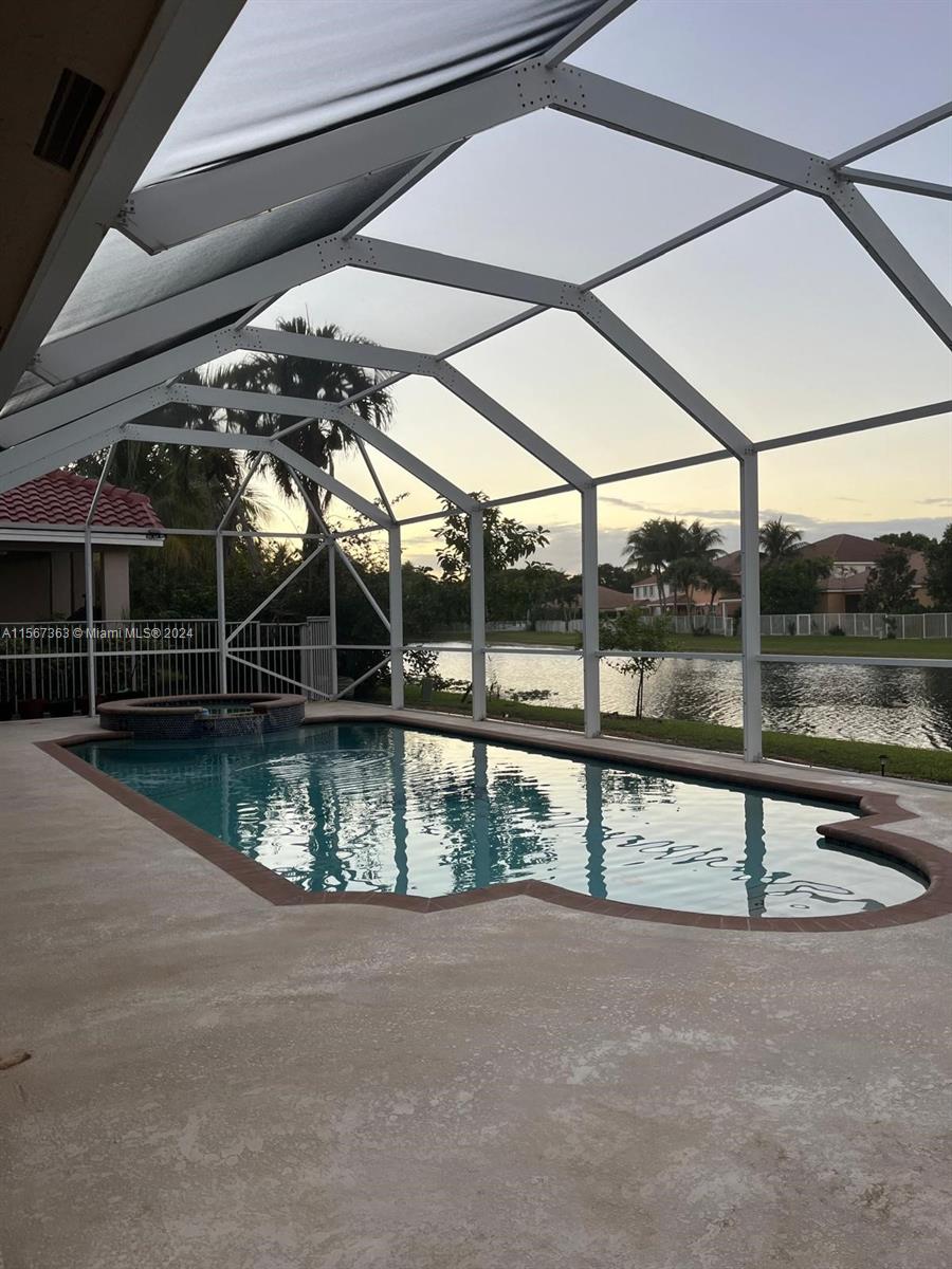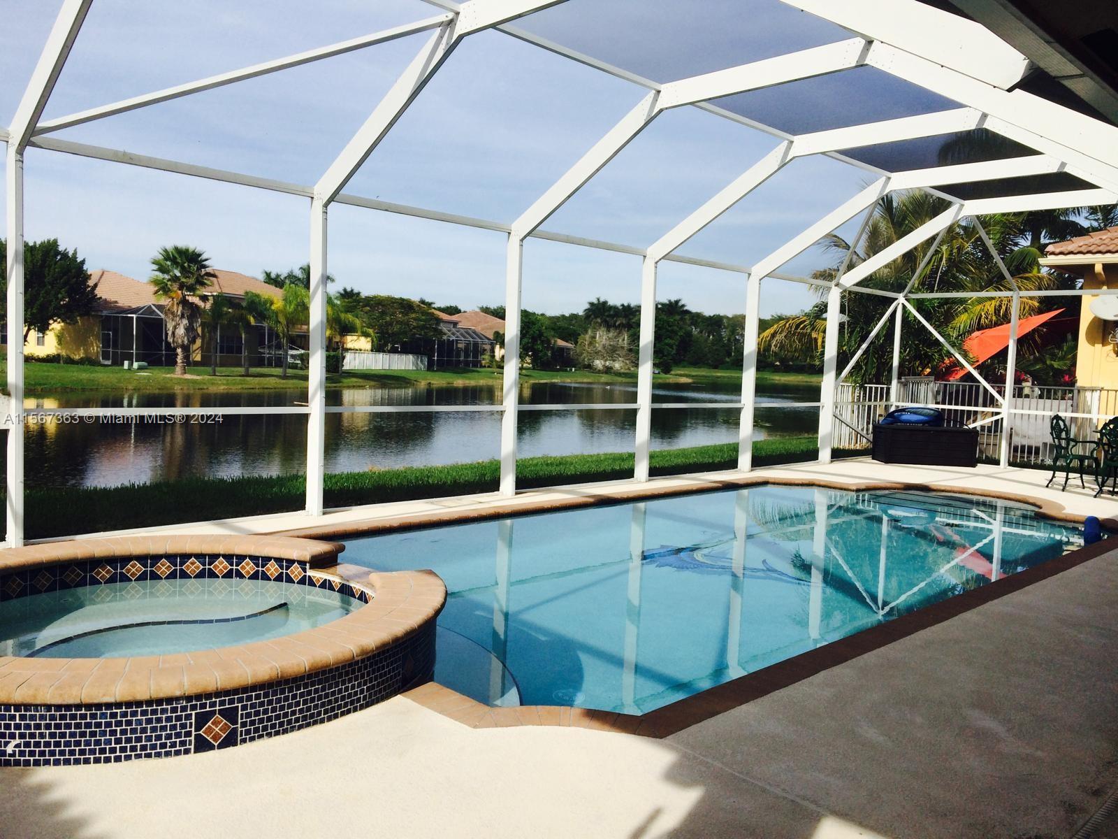 This Gorgeous house with a lake view includes 6 bedrooms, 5 baths, a 3-car garage, and a pool with a steaming Jacuzzi. A large master bedroom, and a comfortable family room. An extraordinary kitchen with granite tops, new appliances, and a shining Jasper Porcelain floor Downstairs. There are accordion shutters. This is a calm and quiet community. This complex has a mini golf club, a Water Park, an Olympic pool, a kids' pool, and great Jacuzzi a clubhouse, a barbecue area, a hockey arena, and a soccer field beautiful resort.