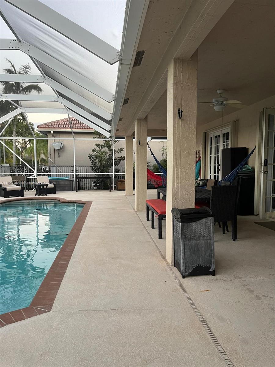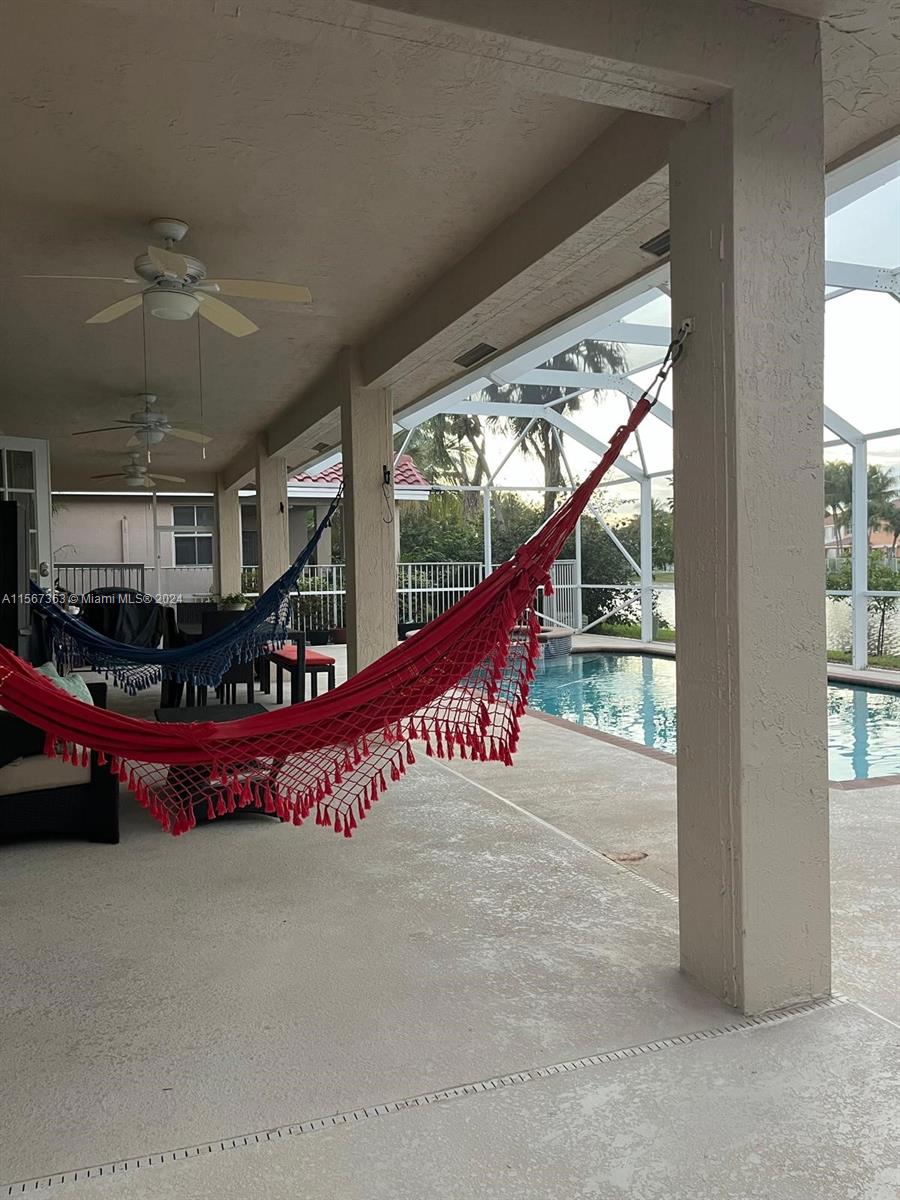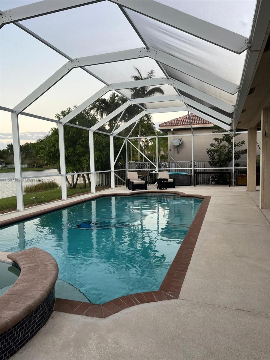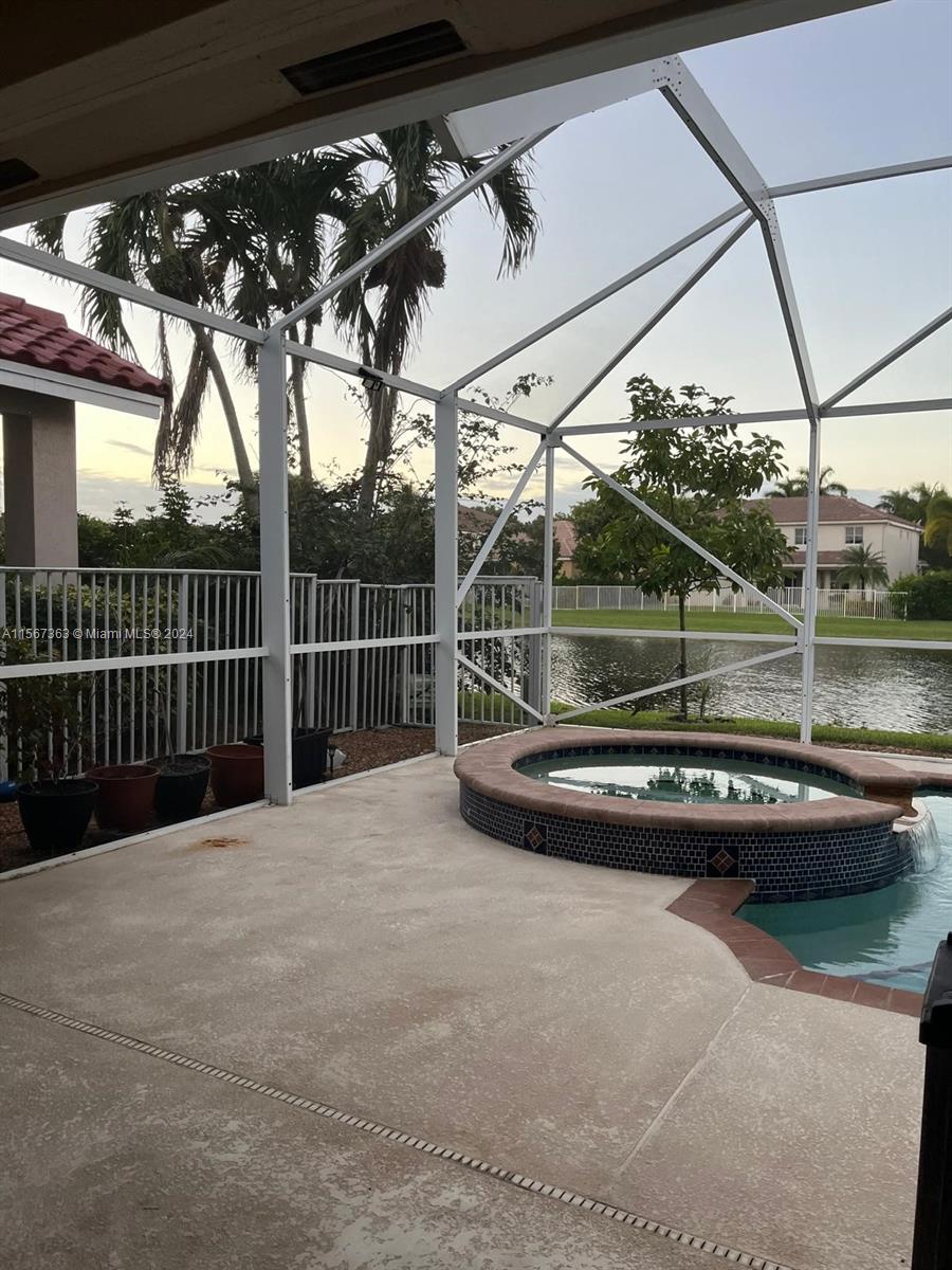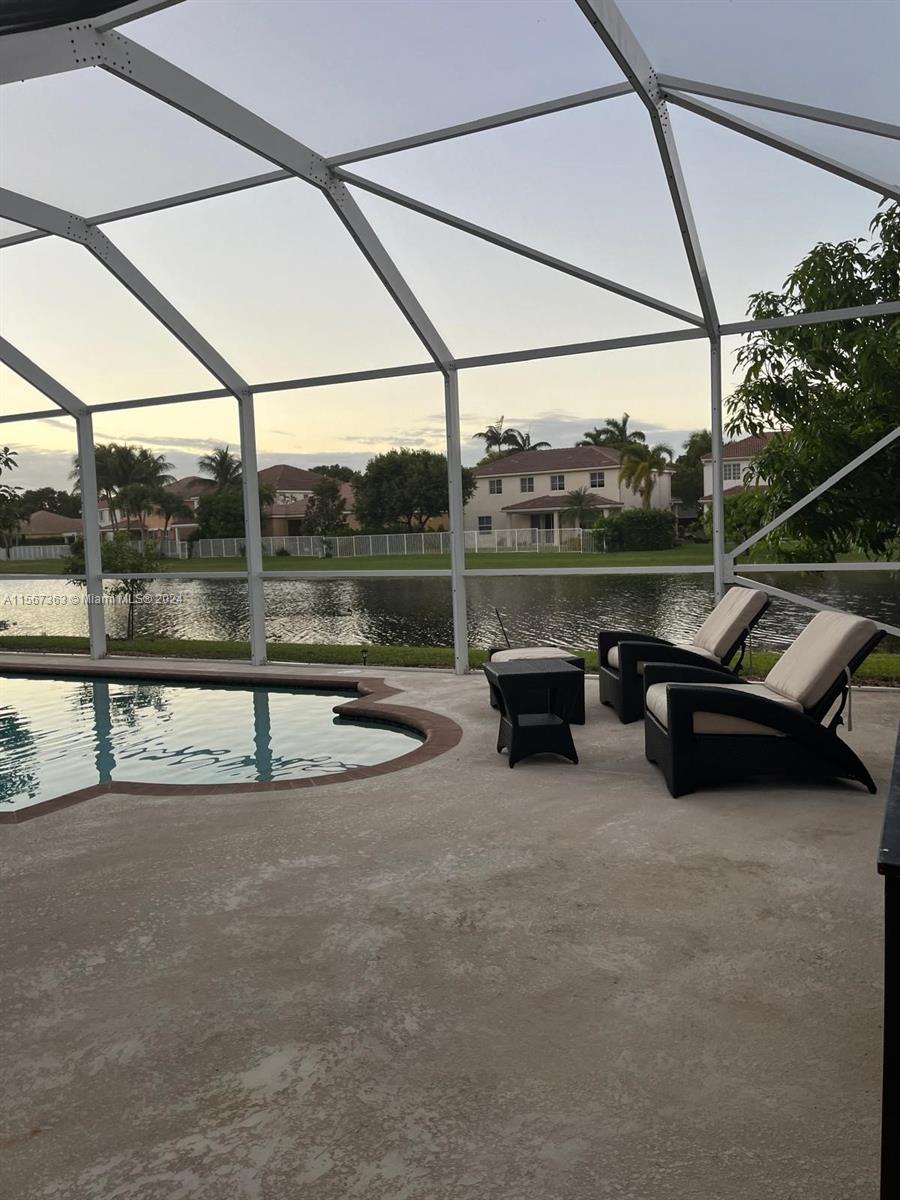 This Gorgeous house with a lake view includes 6 bedrooms, 5 baths, a 3-car garage, and a pool with a steaming Jacuzzi. A large master bedroom, and a comfortable family room. An extraordinary kitchen with granite tops, new appliances, and a shining Jasper Porcelain floor Downstairs. There are accordion shutters. This is a calm and quiet community. This complex has a mini golf club, a Water Park, an Olympic pool, a kids' pool, and great Jacuzzi a clubhouse, a barbecue area, a hockey arena, and a soccer field beautiful resort.