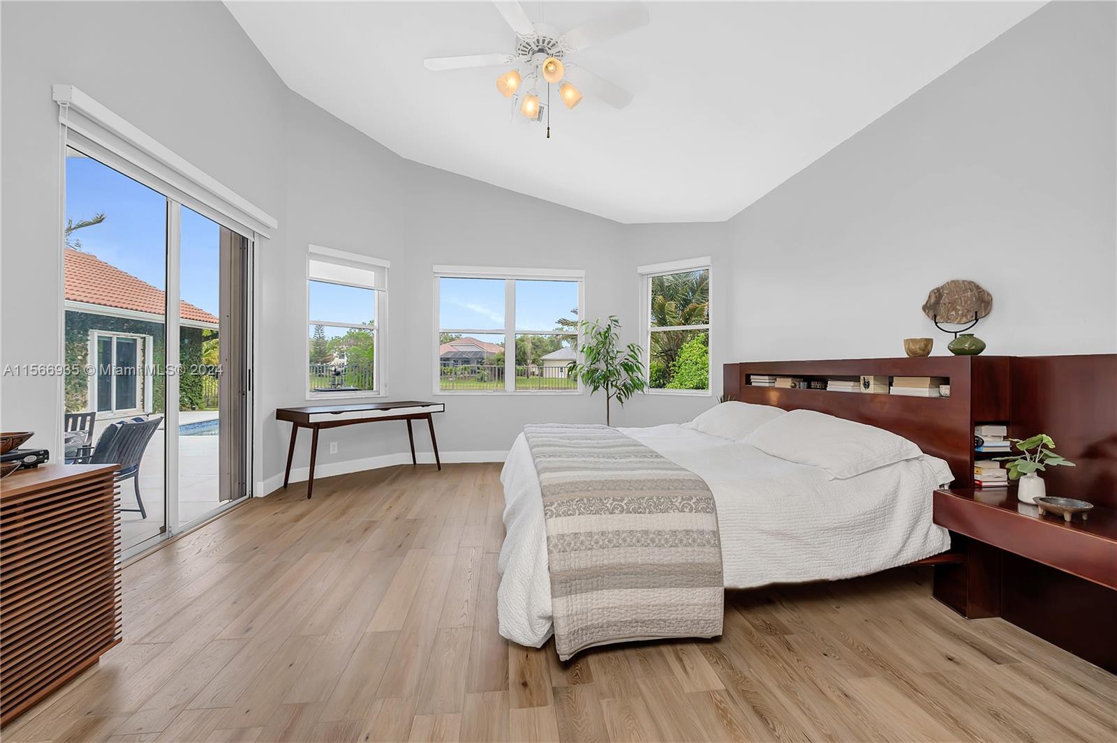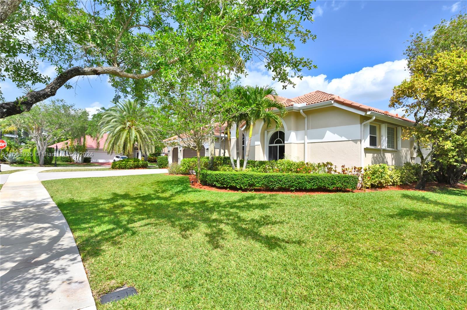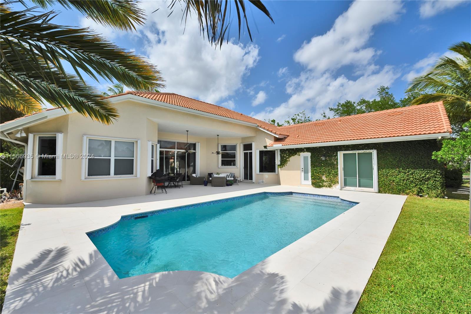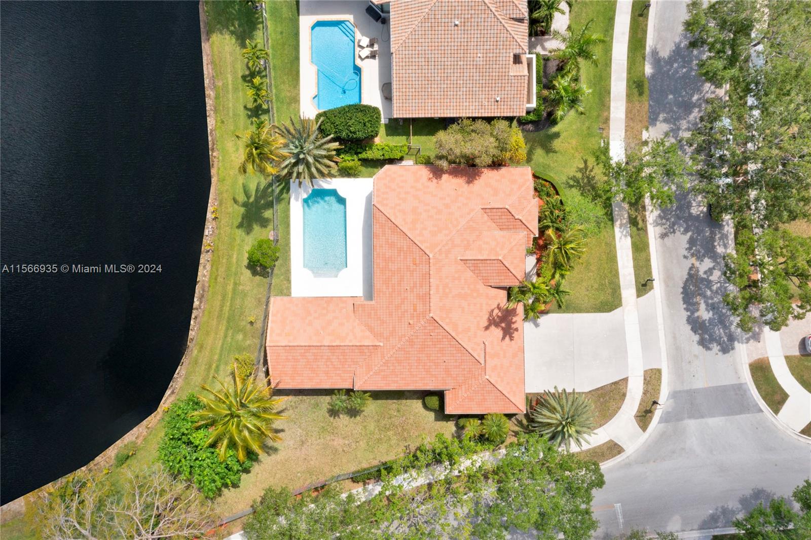 Weston Hills, stunning corner home boasts a single-story layout with 5 bedrooms and 3.5 bathrooms, offering spacious living on an 18,000 sq ft lot. The split bedroom design ensures privacy, complemented by a 3-car garage for ample parking and storage. Upon entry through double doors, you're greeted by an open floor plan that seamlessly integrates indoor and outdoor living. Enjoy picturesque views of the lake, pool, and sunrise from every angle. The pool and deck have been remodeled, featuring a saline system for added luxury. Inside, the kitchen has been updated, while newer roof, accordion shutters, and impact garage doors provide security and peace of mind. Tile flooring graces the living areas, while laminated floors add warmth to the bedrooms. Excellent school system.