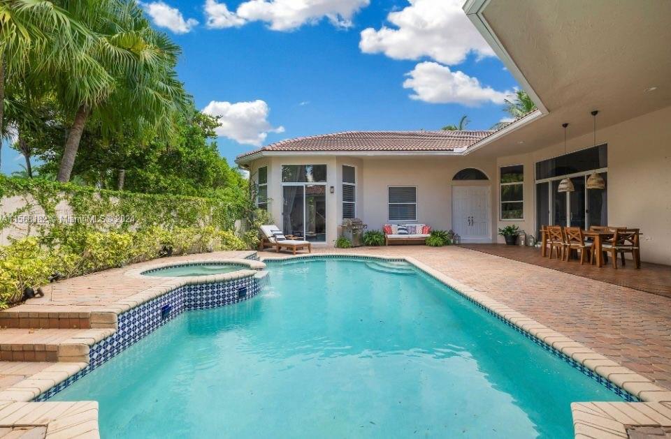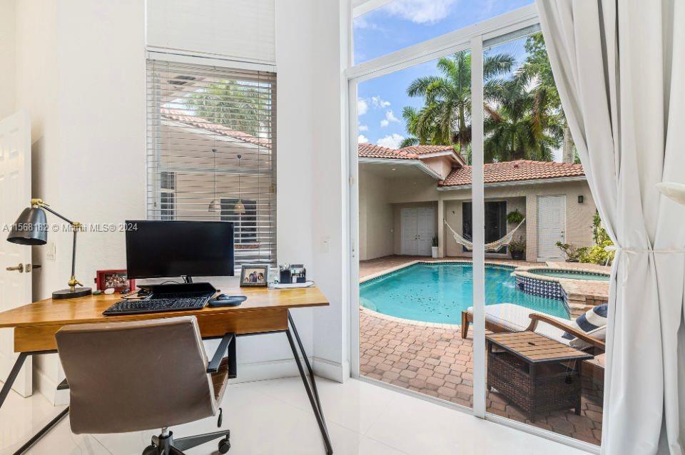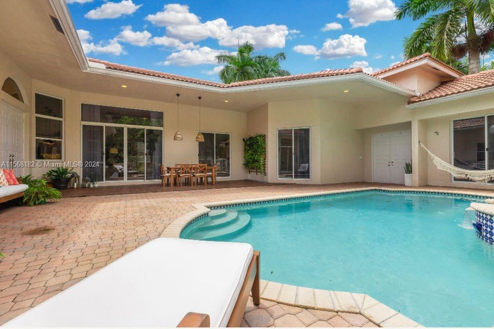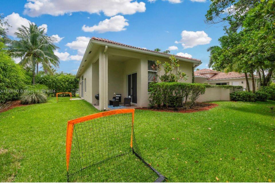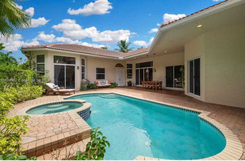 Magnificent courtyard gem on Weston Hills CC. Oversized corner lot, meticulously maintained with high end design touches. Stunning one-story. 4 bedrooms and 4.5 bathrooms. One of the bedrooms is separated from the living areas and can be used for guests or an office. The main suite has indoor/outdoor sitting area, and his/hers walking closets. Gorgeous pool/spa & waterfall views as you enter the property. Soaring ceilings, porcelain floors, bright floor plan completely private. Beautiful kitchen, white quartz countertops. Resort like pool and patio. Living and dinning room with yard view; perfect for pets or kids activities. Steps from School Bus Stop, Park, Playground, Basketball and Pickleball Court. A+ schools. Near North Gate and Highways.