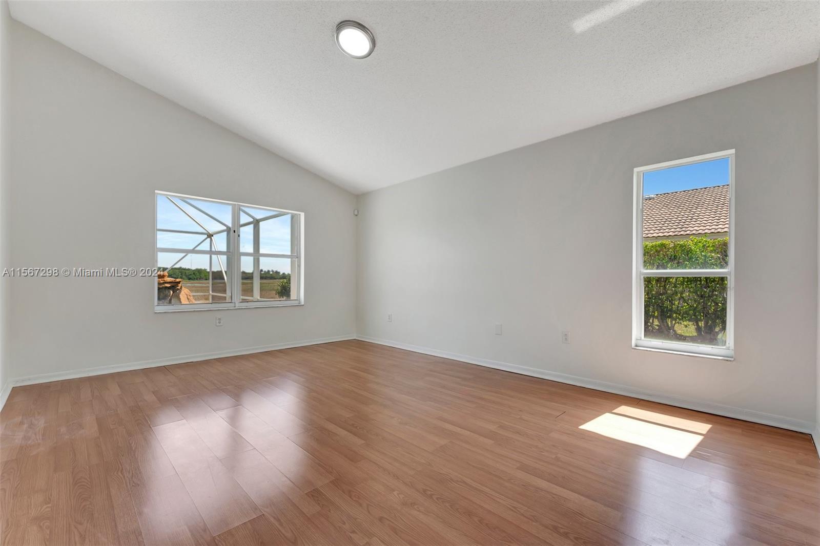YOUR WAIT IS OVER... ***STUNNING LAKEFRONT MALIBU MODEL POOL HOME***PEMBROKE FALLS*** Features an Open Kitchen, Cherry Cabinetry, Stainless Steel Appliances, Spacious 1st Floor Master Suite, Large Walk-In Closet, Spa Style Bath, Contemporary Vanities, Soaking Tub, Neutural Flooring, Vaulted Ceilings, Modern Lighting, Expansive Covered Screened-in Patio ***NEW 2024 ROOF***NEW 2023 A/C***REFRESHING FREEFORM POOL w/DUAL WATERFALL FEATURES***TRANQUIL LAKE & PRESERVE VIEWS*** Resort Style Club House: Heated Pool, Spa, Gym, Tennis/Pickleball, Basketball, Ballroom, Tot-Lots, 4?24hr Manned Secure Entrances, Activities Director & Onsite Management. Natural Gas Equipped Homes. HOA includes Fiber Optic Cable, Internet & Alarm Monitoring. Convenient to Shopping, Dining, Entertainment & Schools.