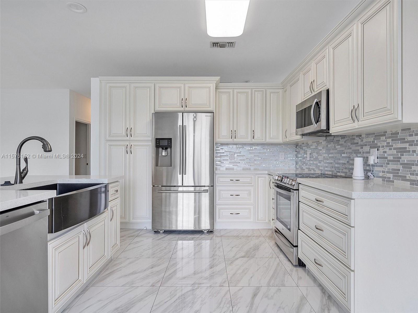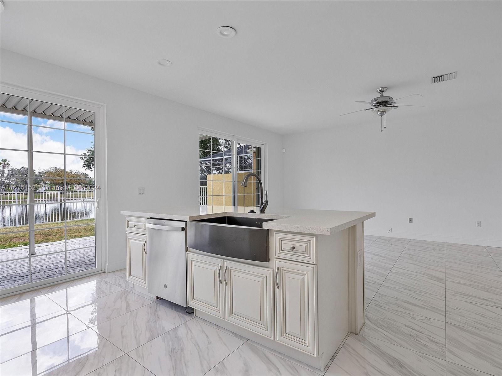 Stylishly upgraded lakefront home in the Mahogany Bay section of Towngate in Pembroke Pines. As you enter you'll notice the high ceilings and freshly painted interior with separate living, dining, and family room. Spacious open kitchen with large island and contemporary cabinetry, quartz countertops, and stainless steel appliances. Recent upgrades include a 2020 roof, newer washer/dryer, and hurricane impact windows/doors for ultimate protection. HUGE primary bedroom w/ office area easily convertible to a 5th bedroom. Plenty of parking and storage in the 3-car garage. HOA includes community pool, tot lot, 24-hour roving security, and cable/internet. Zoned to top-rated schools and close to shopping, dining, and major highways. Move quick on this one!