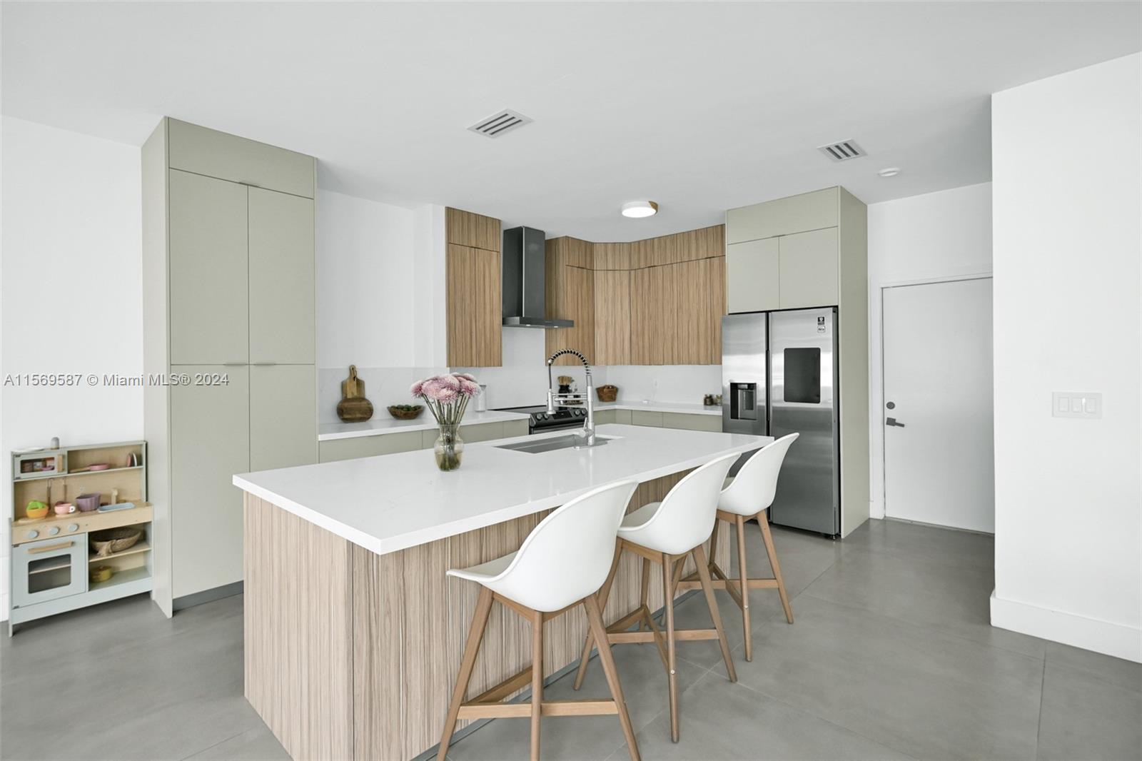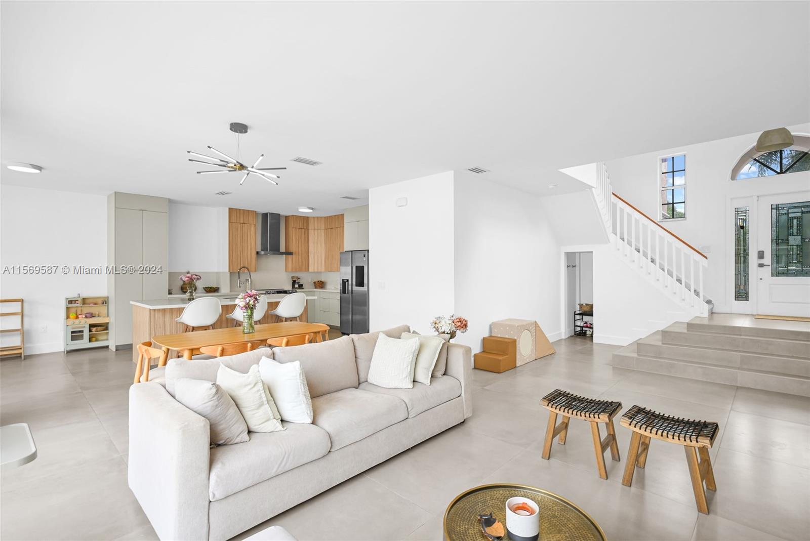 Welcome to this stunning remodeled single-family home boasting exquisite 42x42 tile flooring throughout the first floor, creating a seamless flow from the moment you step inside. The open concept kitchen and living room area offer a modern and inviting space for both daily living and entertaining. Every detail has been meticulously crafted, including the three remodeled bathrooms, designed with a sleek contemporary style that exudes luxury. Step outside to the backyard, perfectly sized for developing a pool, summer kitchen, and more, enhanced by a brand-new fence providing both privacy and security.