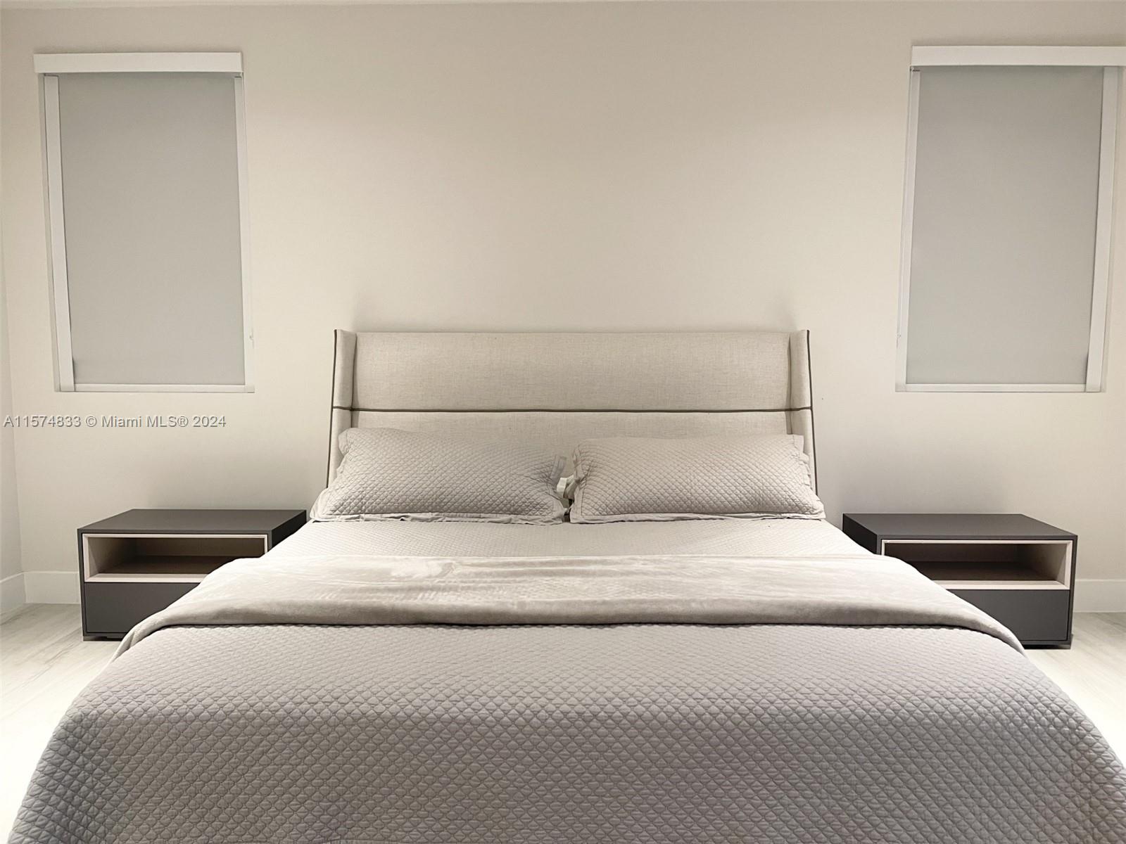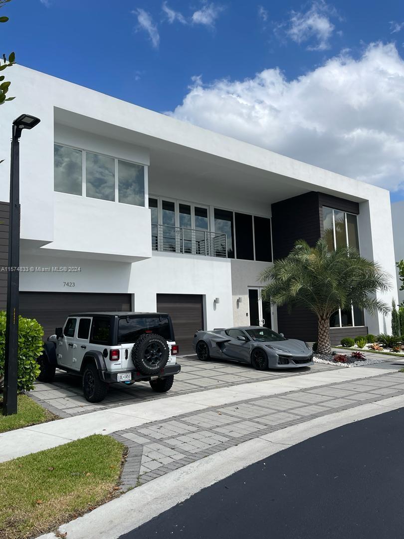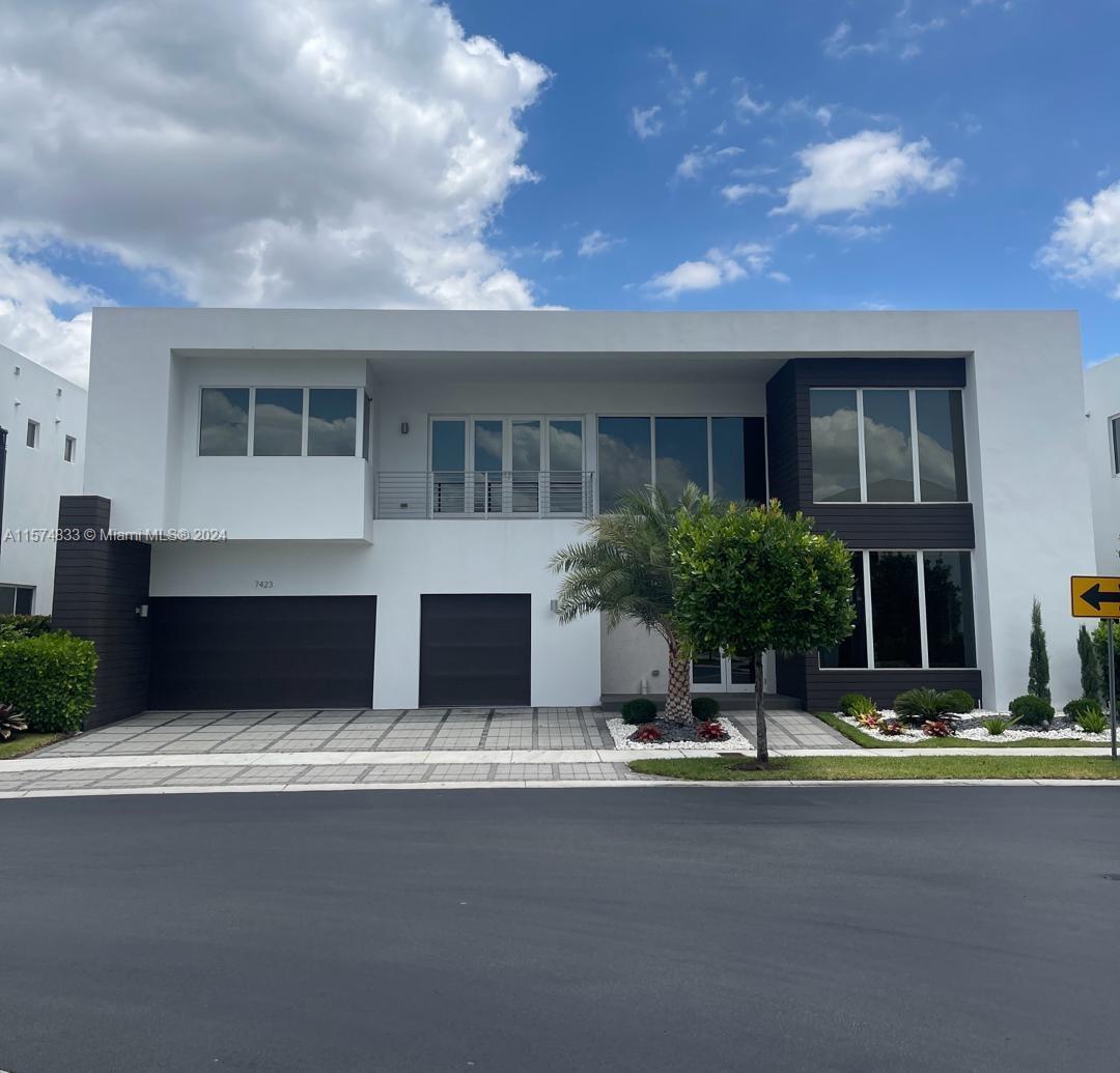 A MUST SEE! Impeccable Single Family in Modern 75 at Doral, an exclusive community with 5 beds and 6 baths, pool, Ready-to-move, Turnkey, Custom lighting throughout the property, and premium six-zone wireless audio system. Double-height wall finished in top-quality carpentry with an integrated TV wall panel and invisible door. Garage space for 3 cars and 7-in-space parking and driveway. Italian fabric curtains in the main living area with a double-height ceiling. Blinds on all house windows. All bedrooms feature wall panels and built-in Smart TVs. TOM Dixon pendant lamps in the dining room. Furniture from renowned Italian and American brands in all areas. Italian porcelain tile flooring throughout the house, Staircase with glass railings.