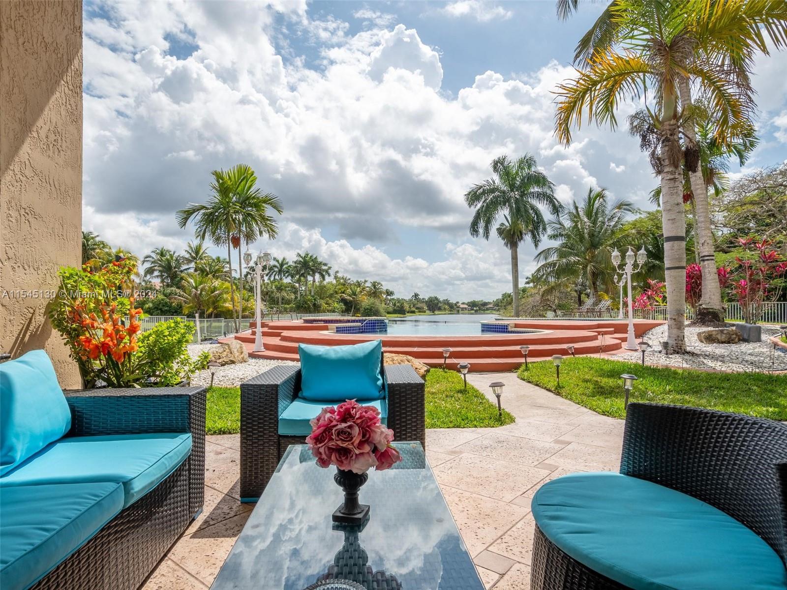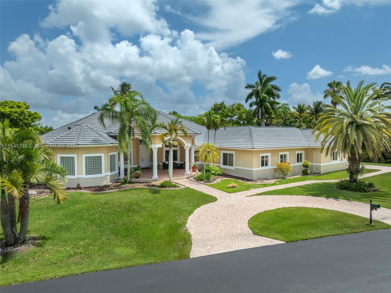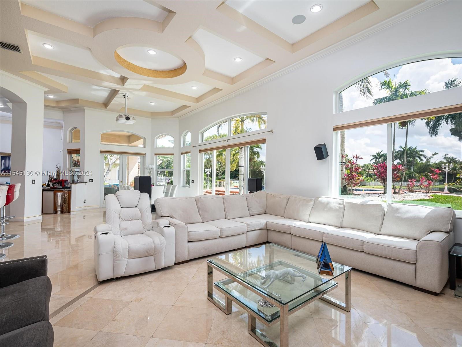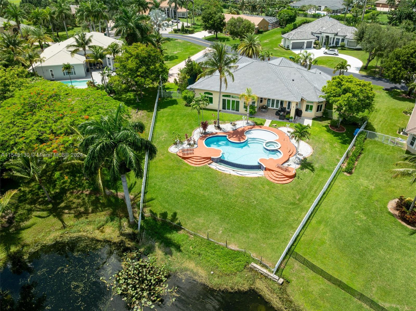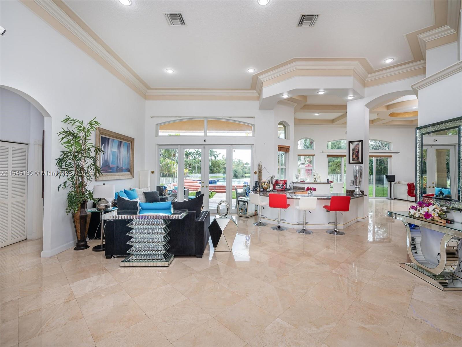 Experience luxury living in this stunning one-story home in the prestigious Emerald Springs gated community (only 74 homes). With 7 bedrooms, 6 bathrooms, a large office & a wet bar, this property offers ample space for large families. Almost 5,000 sq ft of open concept living space on a 35,054 sq ft lot. Infinity pool with a spectacular lake view. 14' ceilings & marble floors. Contemporary wood kitchen, granite countertops and Subzero fridge. Impact doors & windows. Tankless water heater & security system. 3 car garage (w/AC) & space for 15 cars. New roof is being installed. Low HOA dues. 165" IMAX Surround home cinema system negotiable. Gym equipment included. Newer AC units. Automatic sprinkler system. Perfect location near major highways, shopping & entertainment. A delightful living!