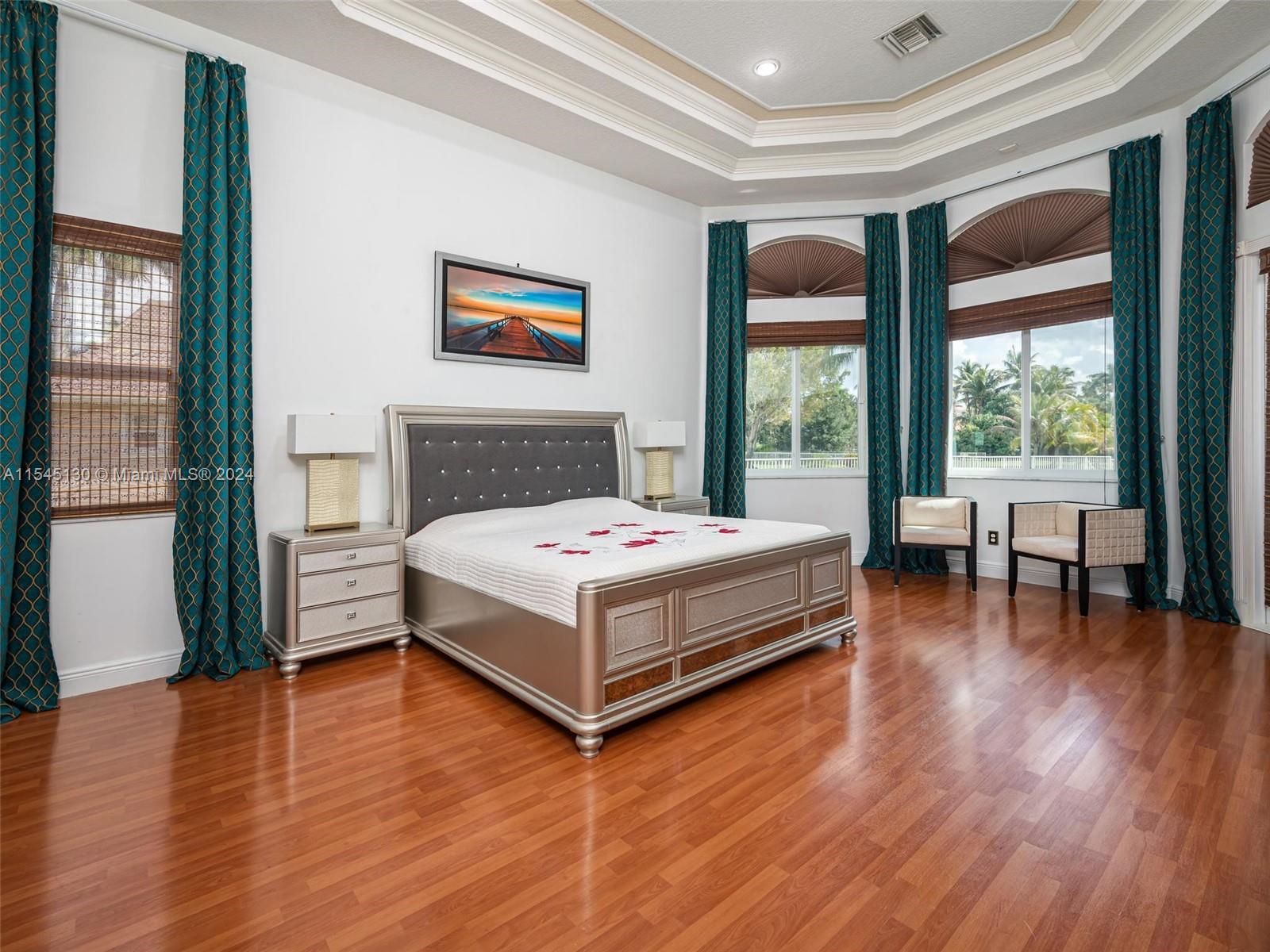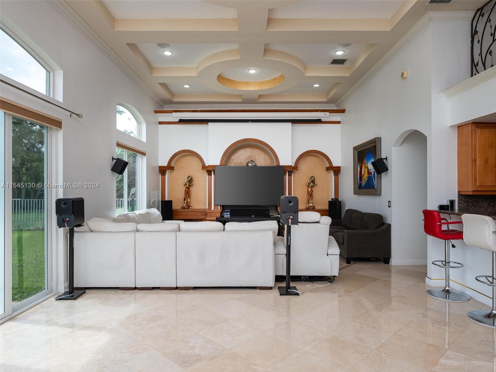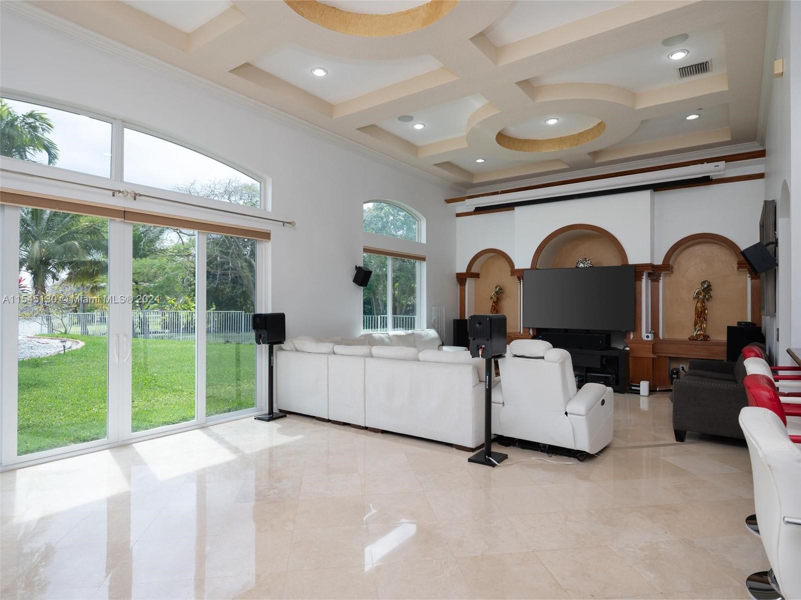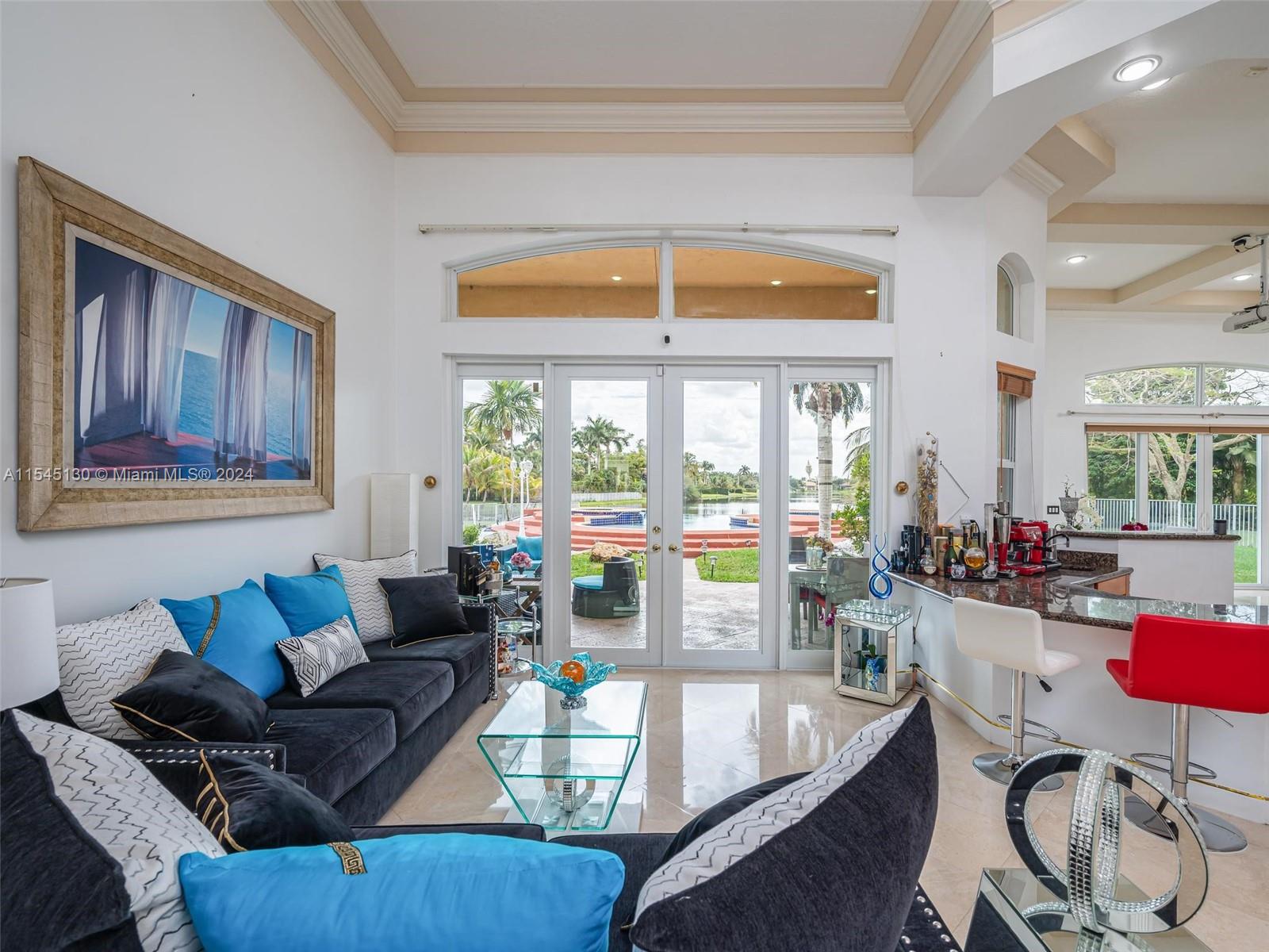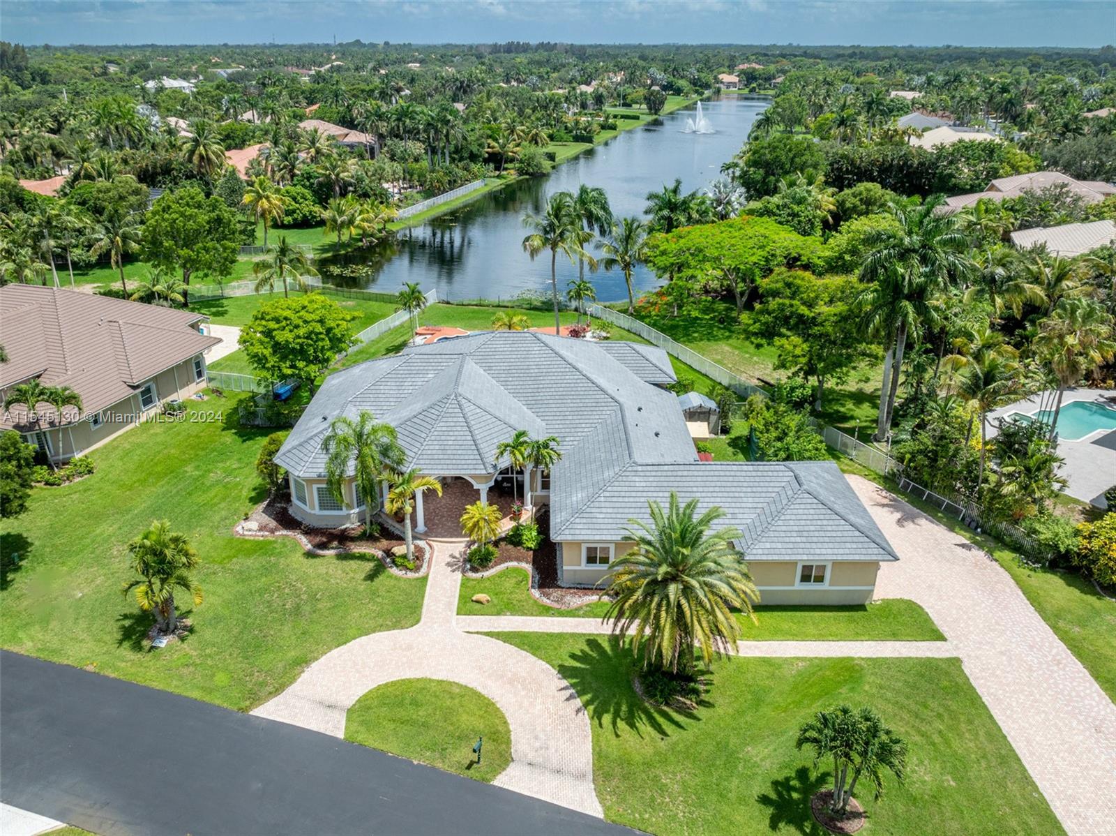 Experience luxury living in this stunning one-story home in the prestigious Emerald Springs gated community (only 74 homes). With 7 bedrooms, 6 bathrooms, a large office & a wet bar, this property offers ample space for large families. Almost 5,000 sq ft of open concept living space on a 35,054 sq ft lot. Infinity pool with a spectacular lake view. 14' ceilings & marble floors. Contemporary wood kitchen, granite countertops and Subzero fridge. Impact doors & windows. Tankless water heater & security system. 3 car garage (w/AC) & space for 15 cars. New roof is being installed. Low HOA dues. 165" IMAX Surround home cinema system negotiable. Gym equipment included. Newer AC units. Automatic sprinkler system. Perfect location near major highways, shopping & entertainment. A delightful living!