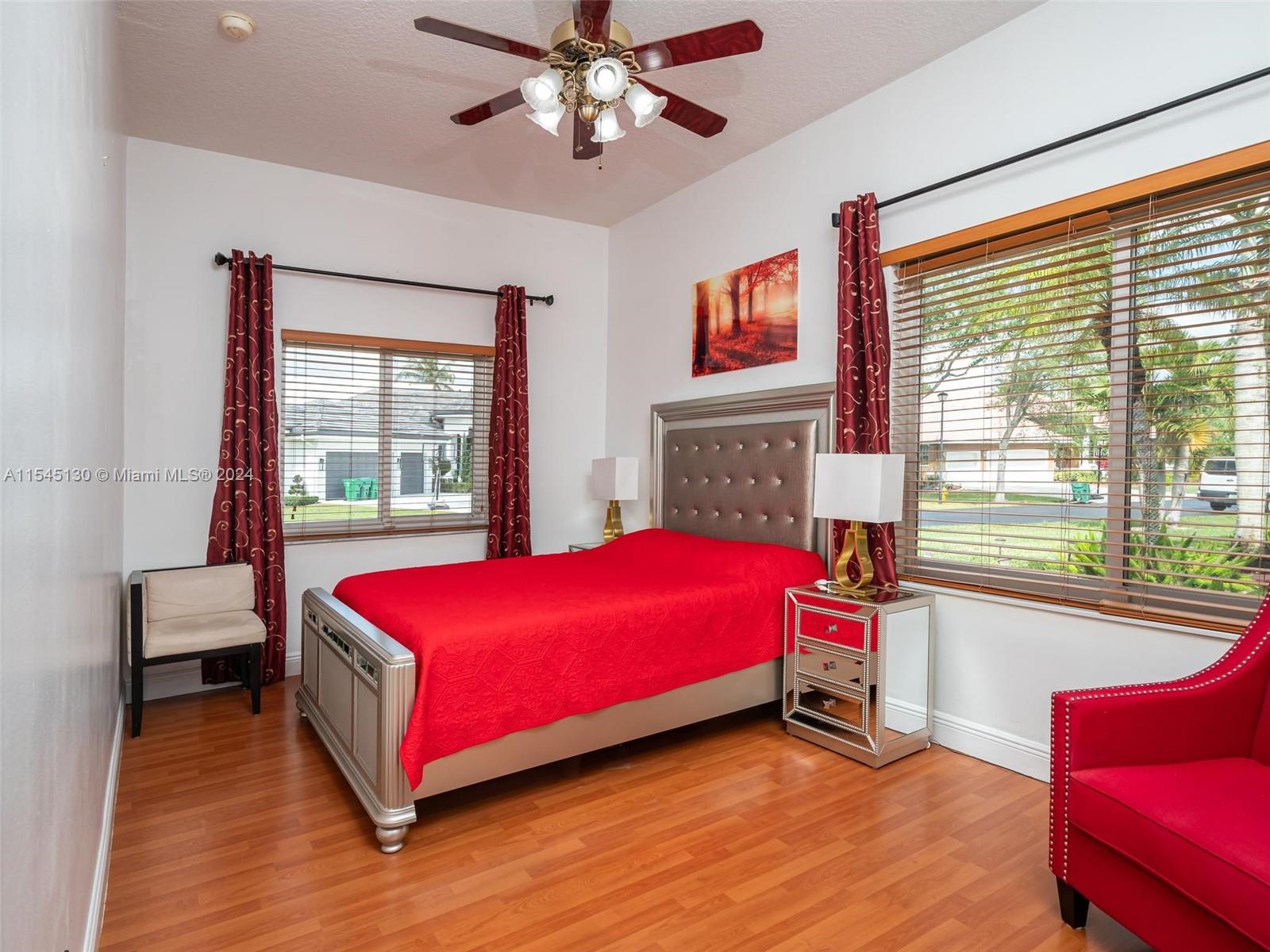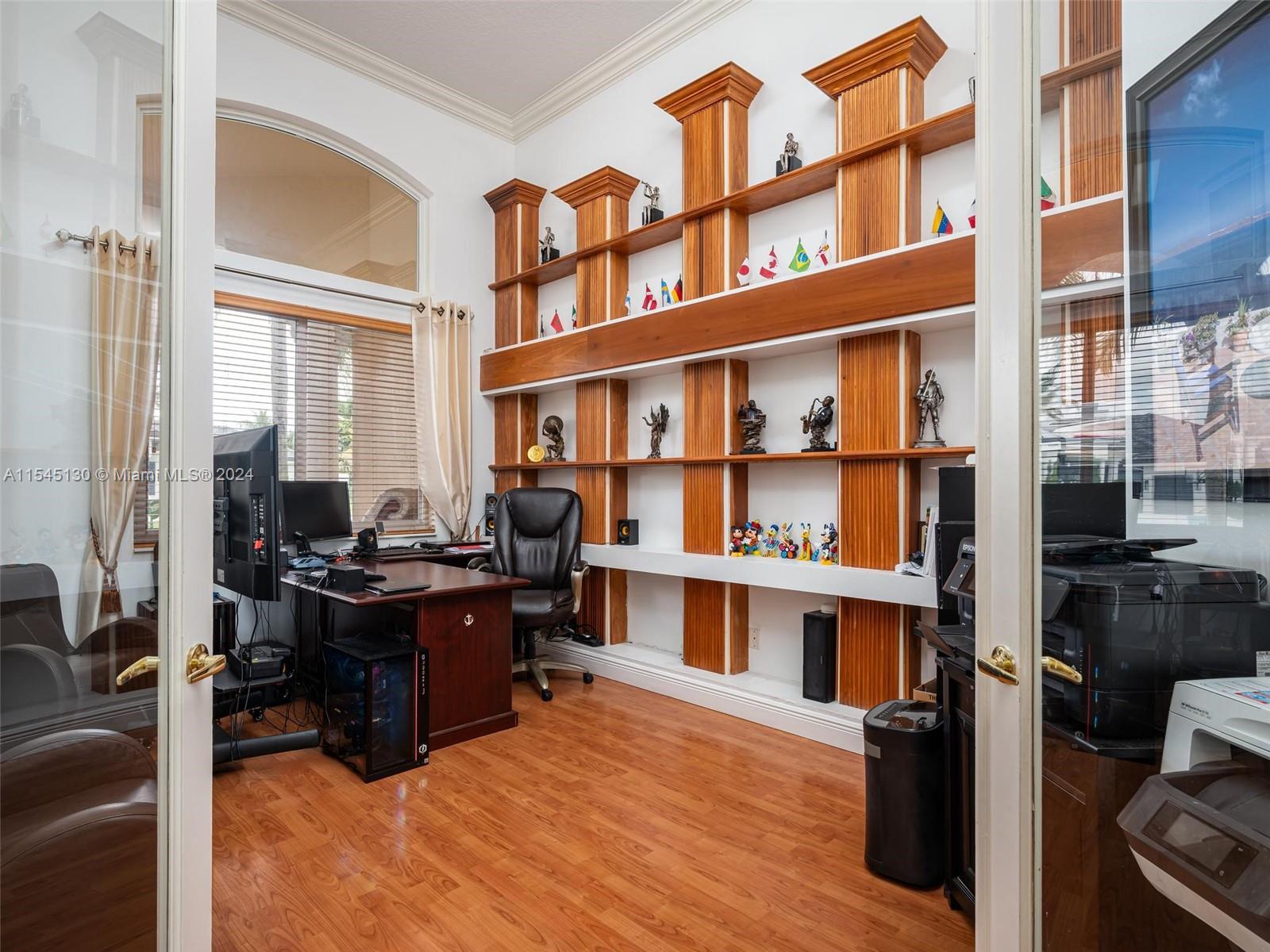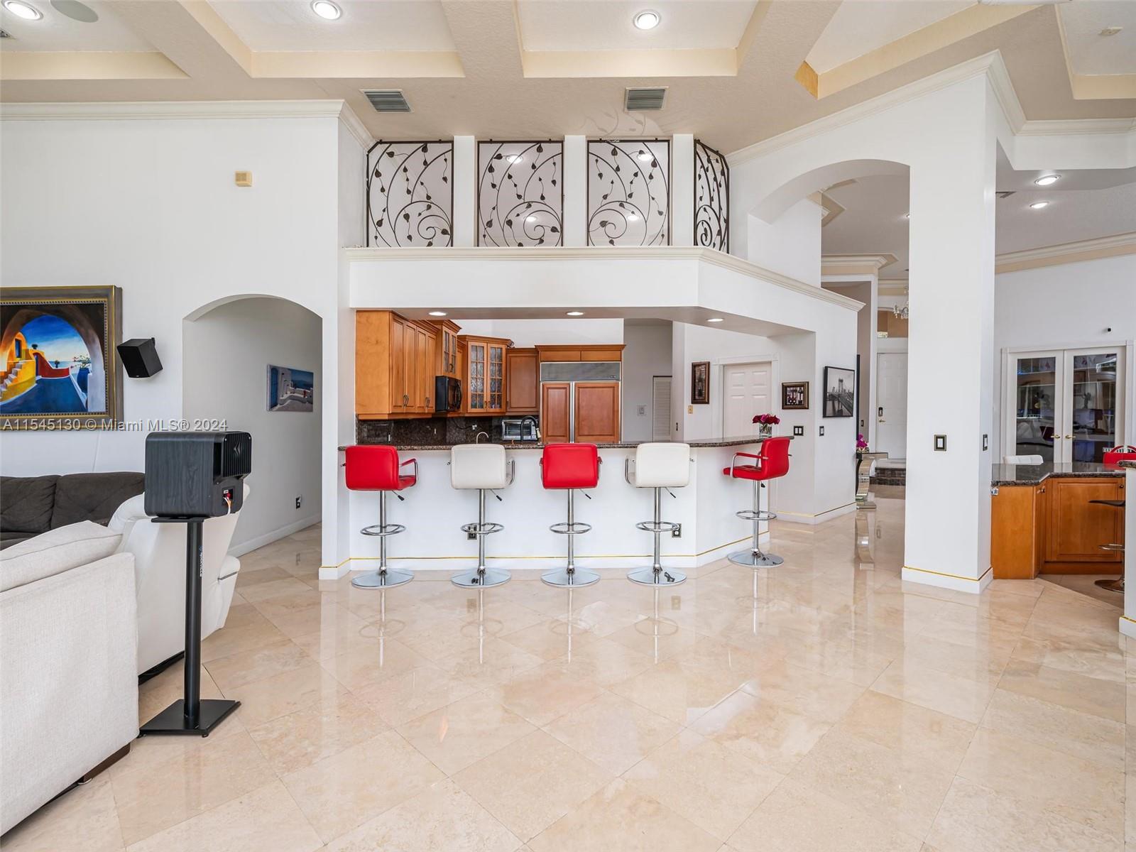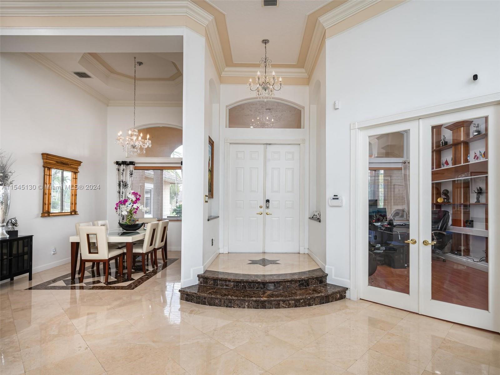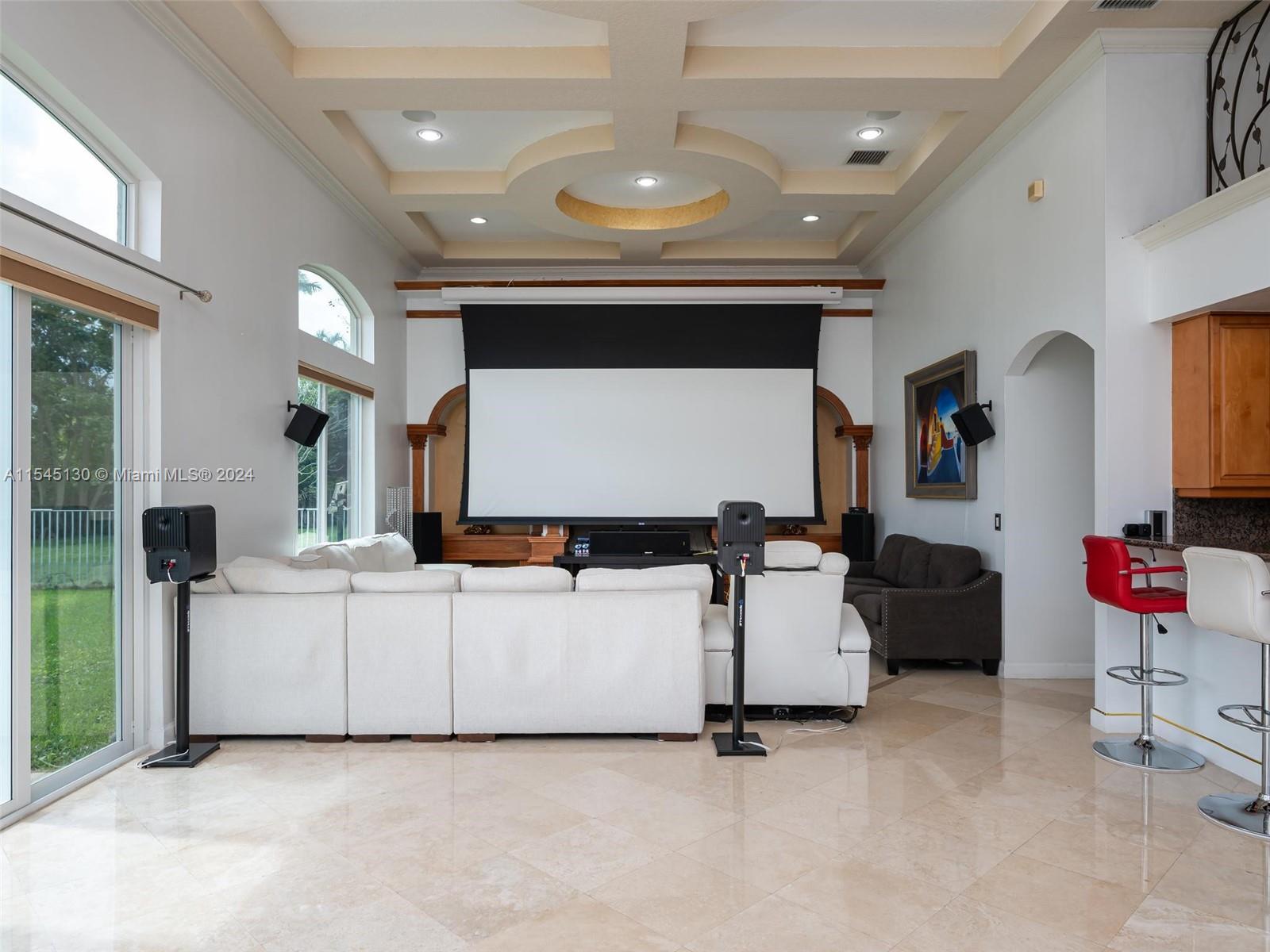Experience luxury living in this stunning one-story home in the prestigious Emerald Springs gated community (only 74 homes). With 7 bedrooms, 6 bathrooms, a large office & a wet bar, this property offers ample space for large families. Almost 5,000 sq ft of open concept living space on a 35,054 sq ft lot. Infinity pool with a spectacular lake view. 14' ceilings & marble floors. Contemporary wood kitchen, granite countertops and Subzero fridge. Impact doors & windows. Tankless water heater & security system. 3 car garage (w/AC) & space for 15 cars. New roof is being installed. Low HOA dues. 165" IMAX Surround home cinema system negotiable. Gym equipment included. Newer AC units. Automatic sprinkler system. Perfect location near major highways, shopping & entertainment. A delightful living!