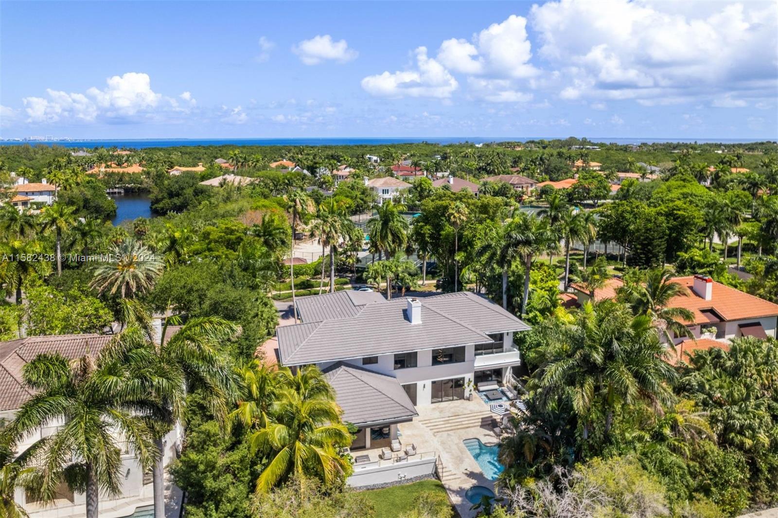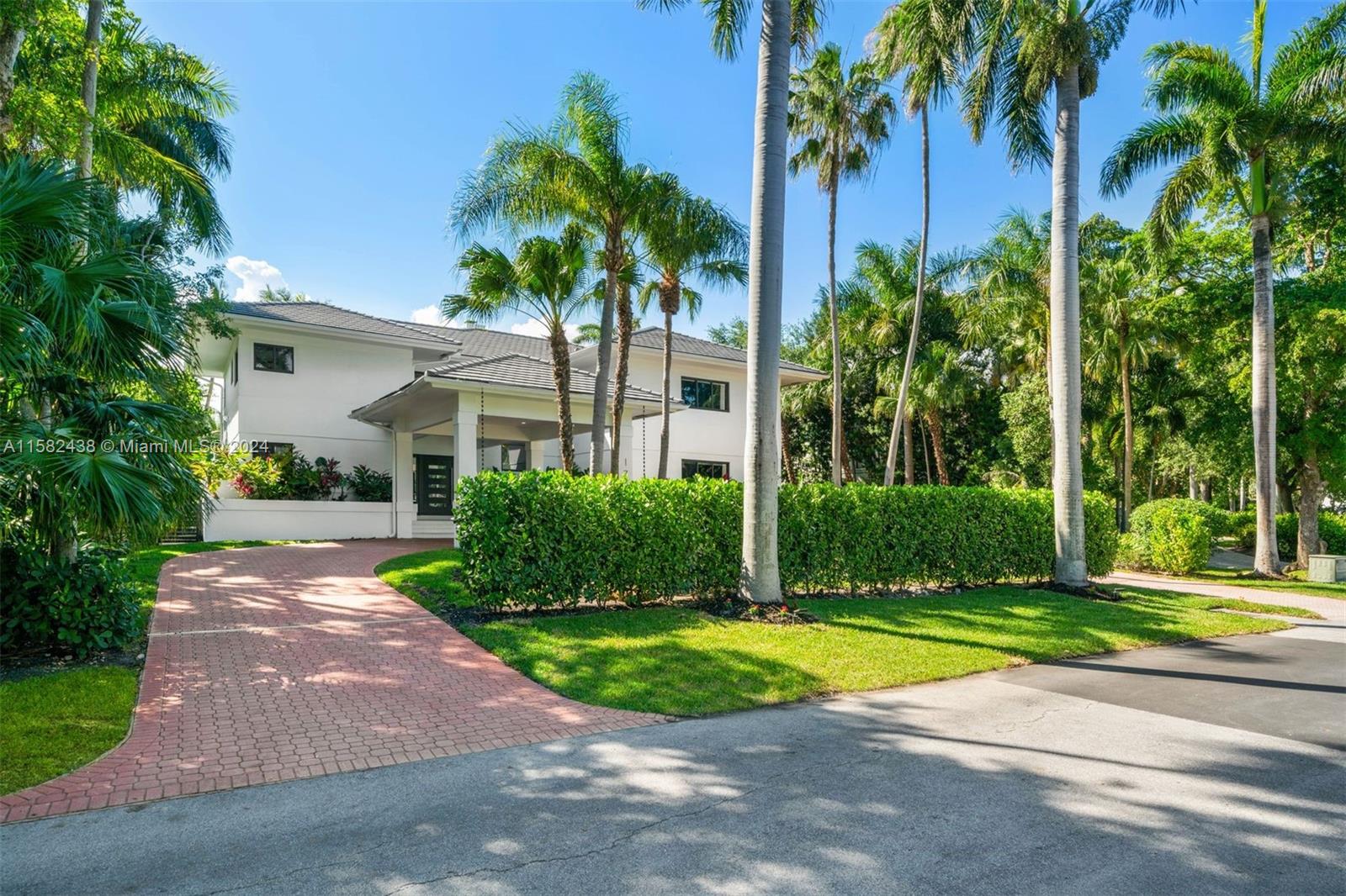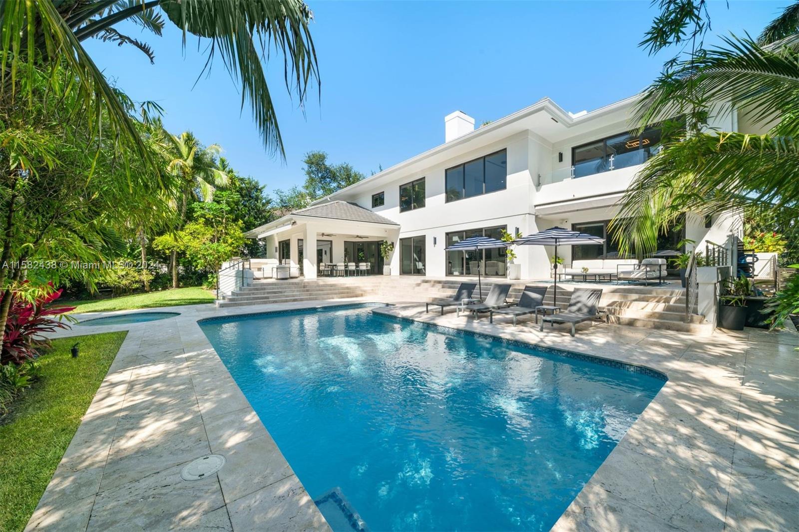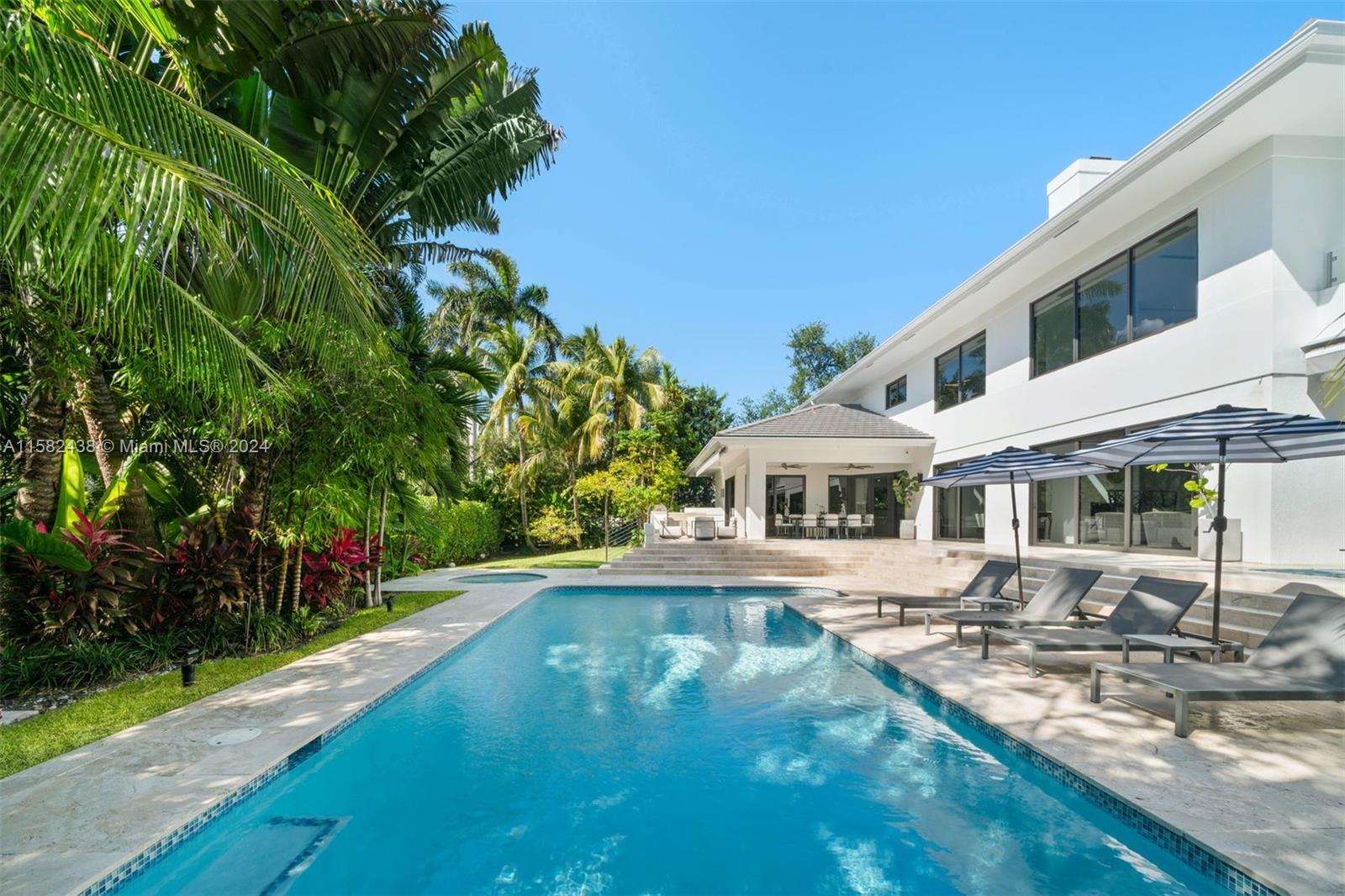 Contemporary 6,760 SF residence with 5 BD and 5.5 BA on a sizable 18,055 SF lot, in the highly sought-after gated community of Cocoplum. Substantially remodeled in 2021, the two-story home showcases voluminous ceilings and an open layout offering plenty of natural light. The gourmet eat-in kitchen features custom floor-to-ceiling cabinetry, ample storage, gas range, high-end appliances, and Grohe carbonated water filter system. The kitchen and family room open seamlessly to outdoor entertainment areas and a beautiful backyard, including a pool with jacuzzi, terraces with retractable awnings, summer kitchen, and stunning tropical landscaping. Additional features include impact windows and doors, office with glass enclosure, media room, and 2-car garage with epoxy flooring.