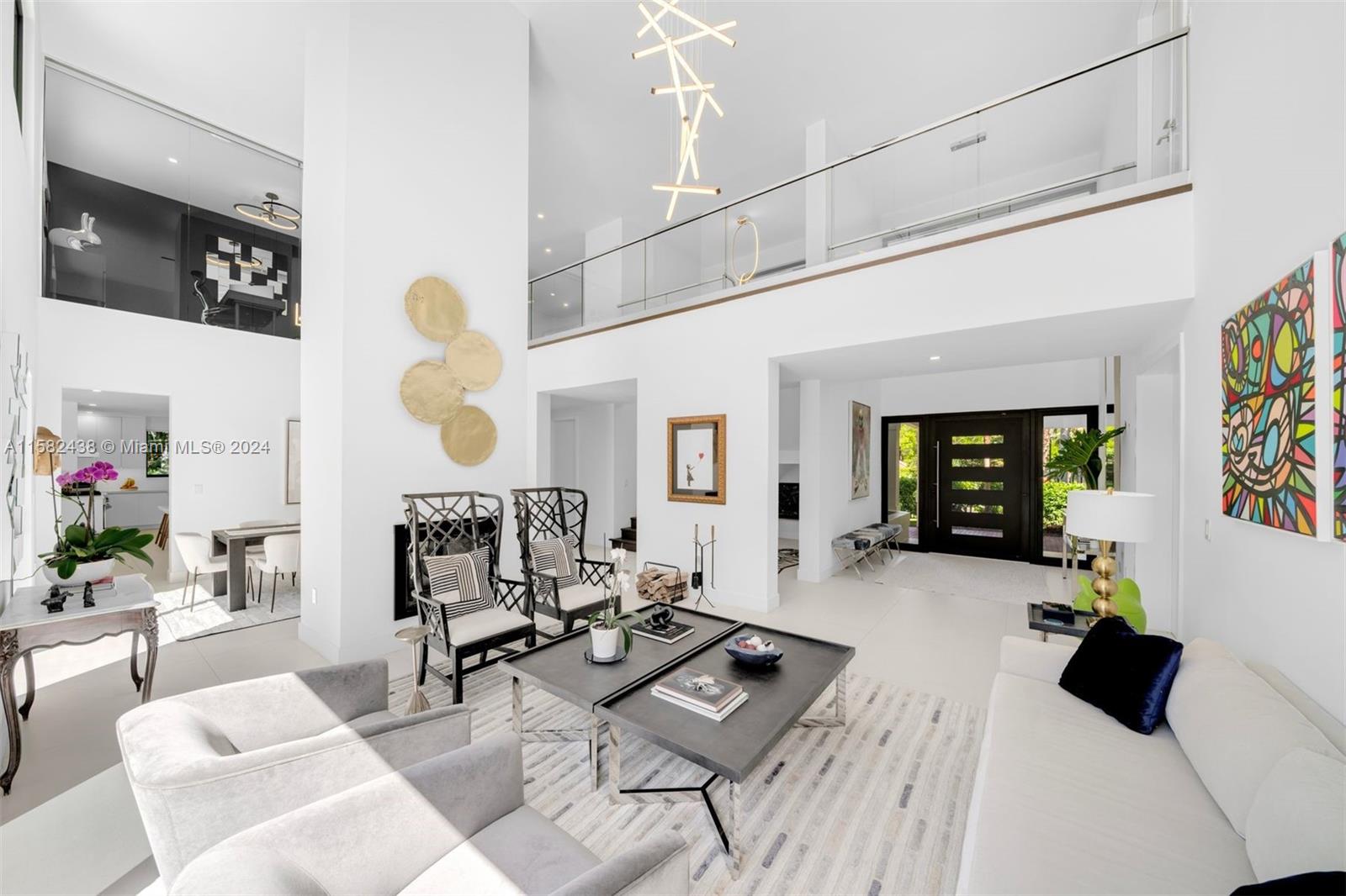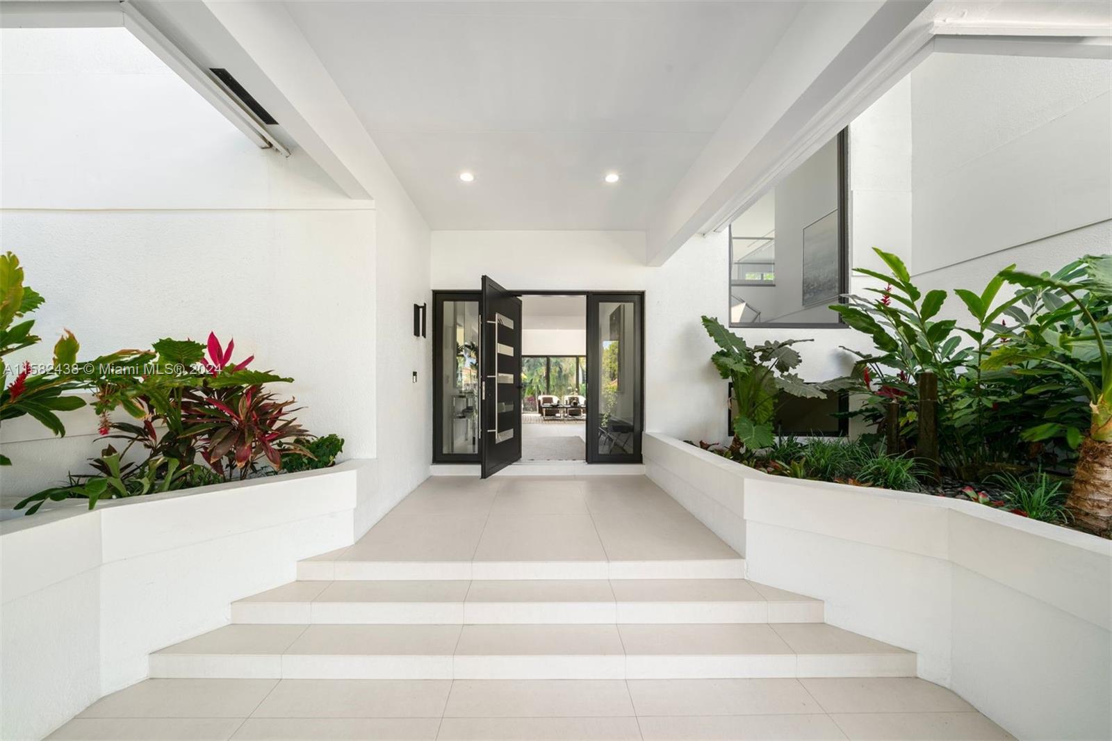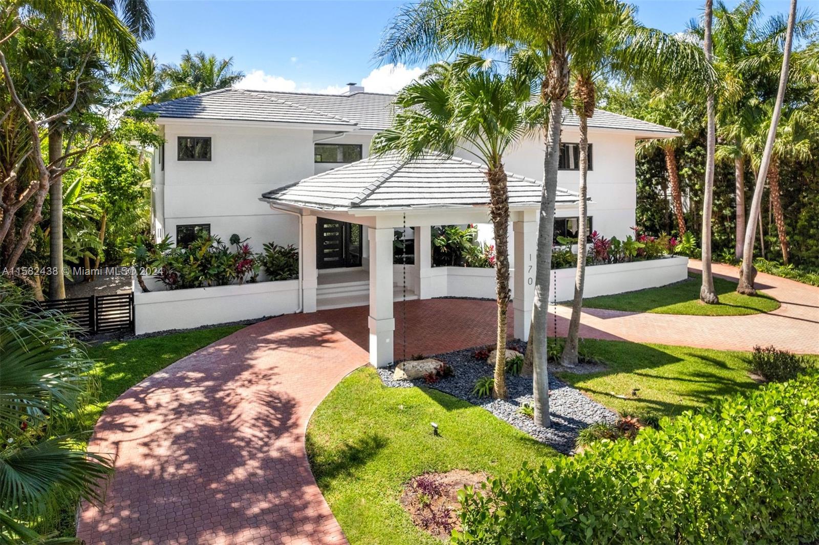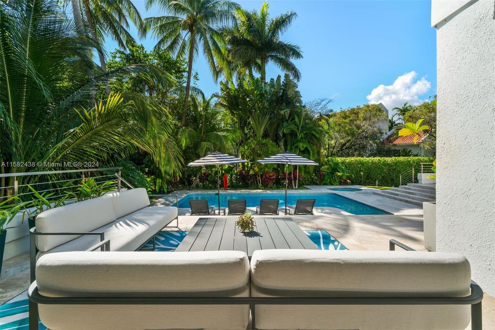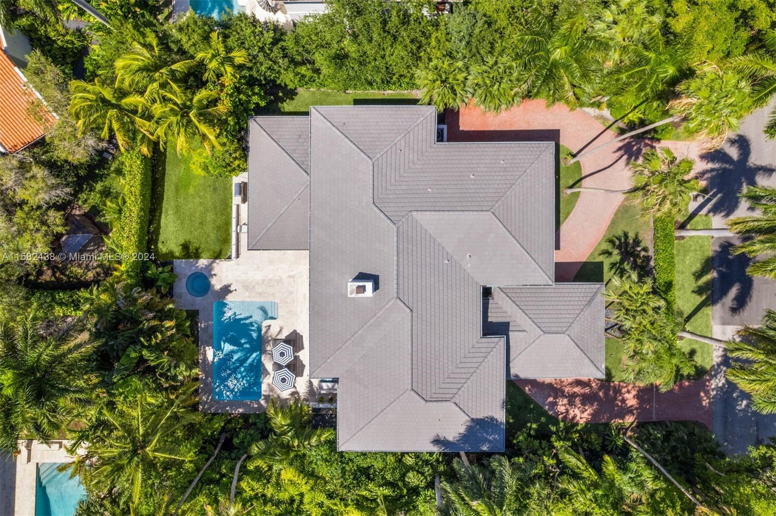 Contemporary 6,760 SF residence with 5 BD and 5.5 BA on a sizable 18,055 SF lot, in the highly sought-after gated community of Cocoplum. Substantially remodeled in 2021, the two-story home showcases voluminous ceilings and an open layout offering plenty of natural light. The gourmet eat-in kitchen features custom floor-to-ceiling cabinetry, ample storage, gas range, high-end appliances, and Grohe carbonated water filter system. The kitchen and family room open seamlessly to outdoor entertainment areas and a beautiful backyard, including a pool with jacuzzi, terraces with retractable awnings, summer kitchen, and stunning tropical landscaping. Additional features include impact windows and doors, office with glass enclosure, media room, and 2-car garage with epoxy flooring.