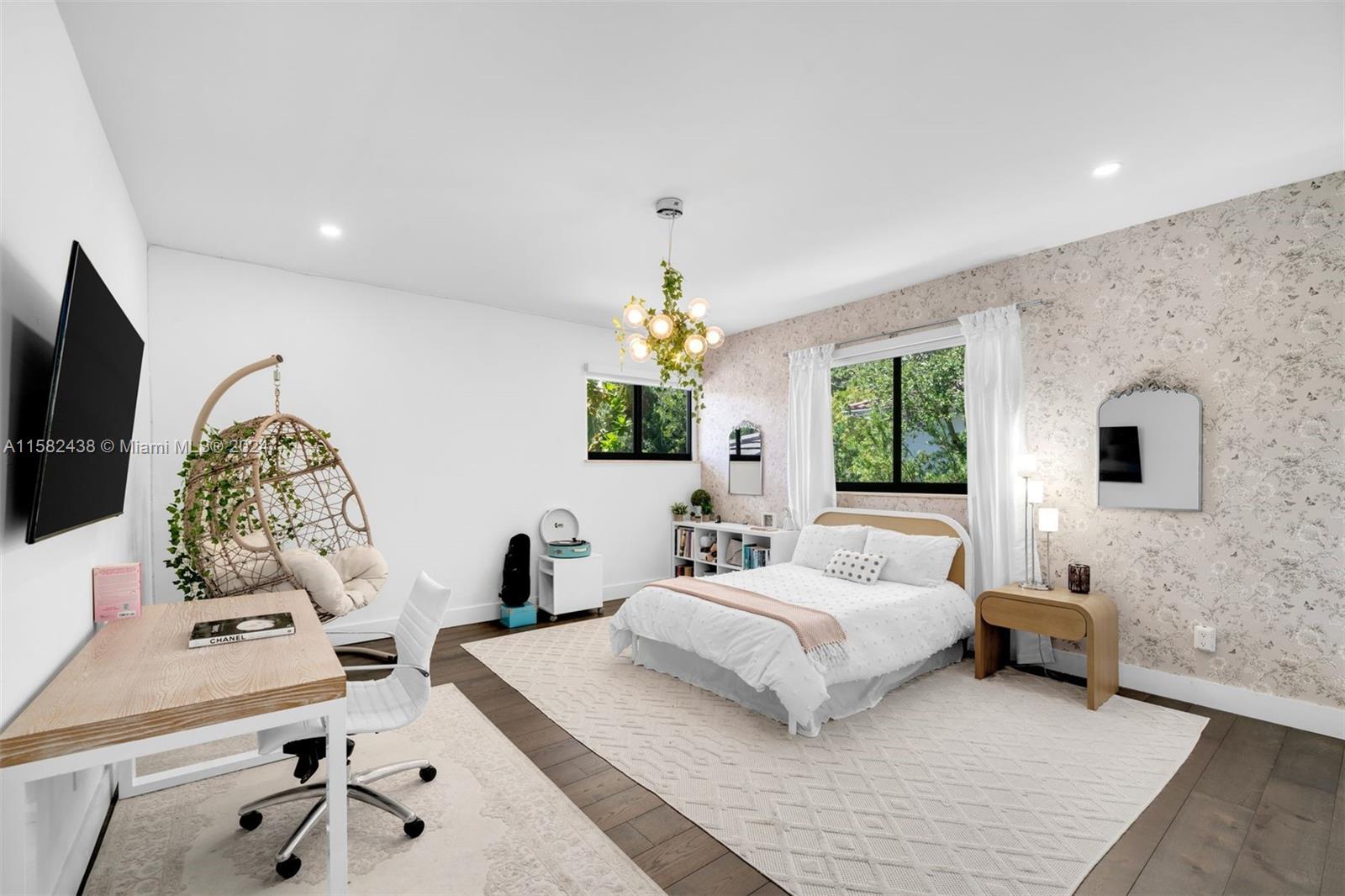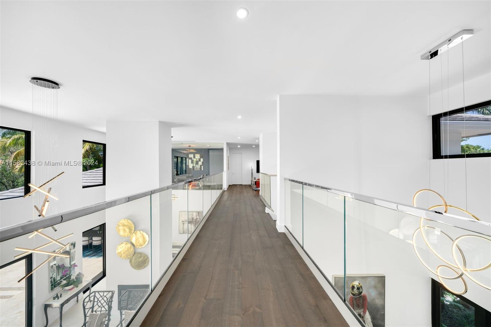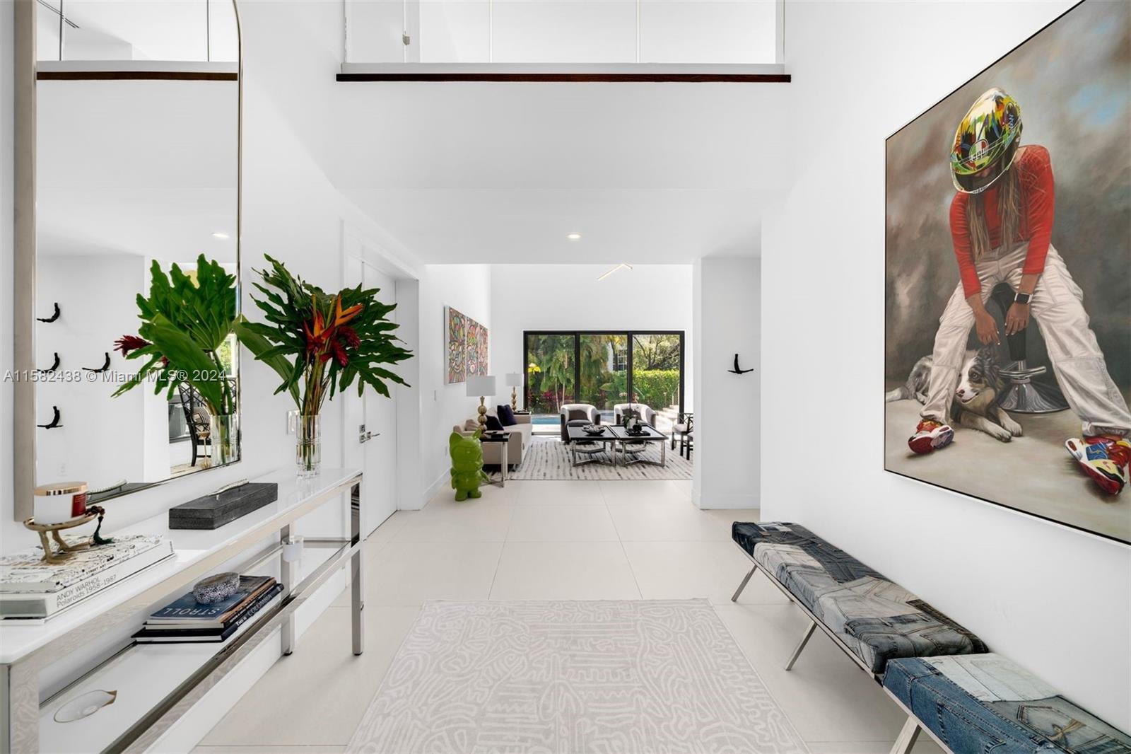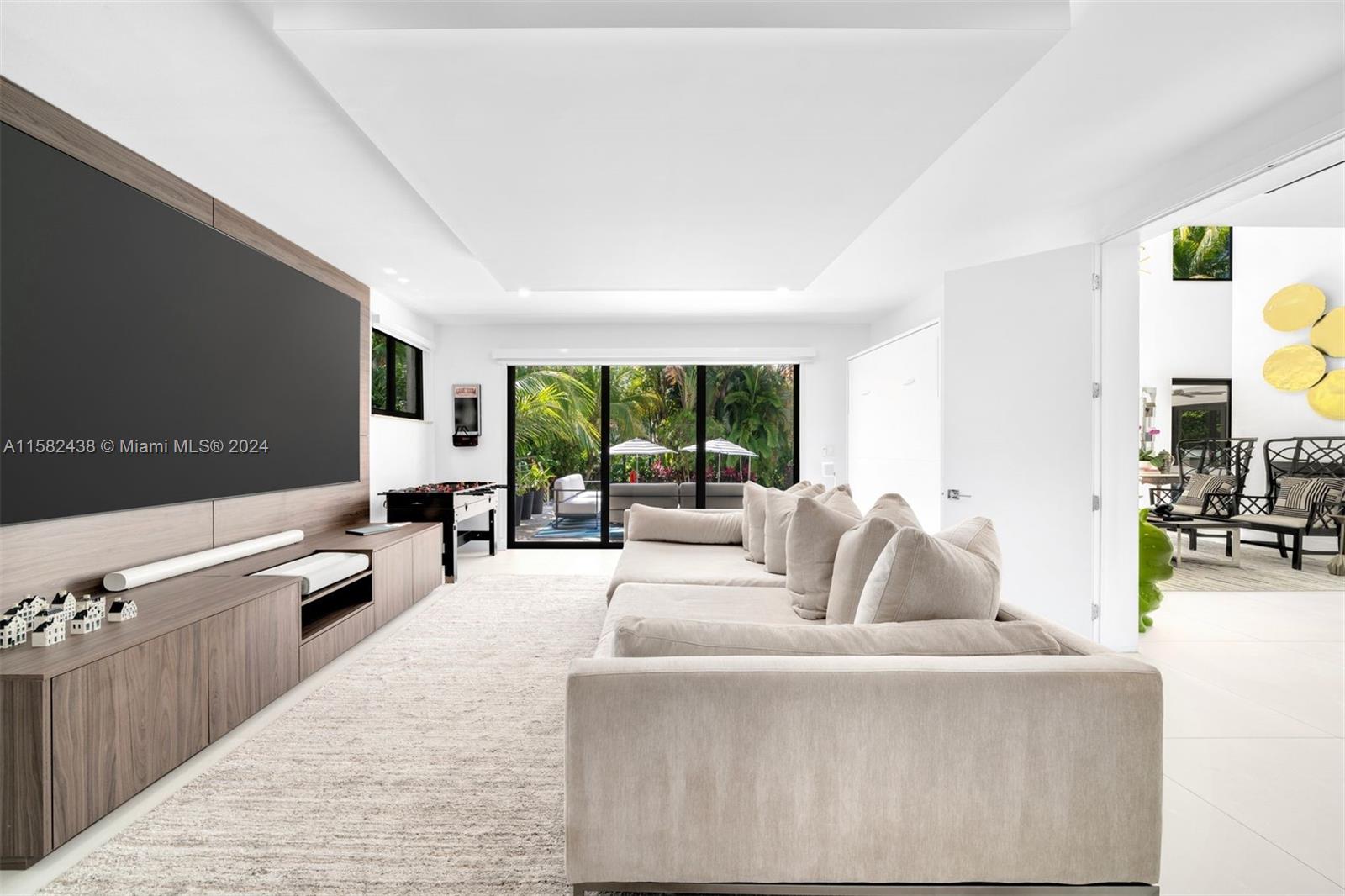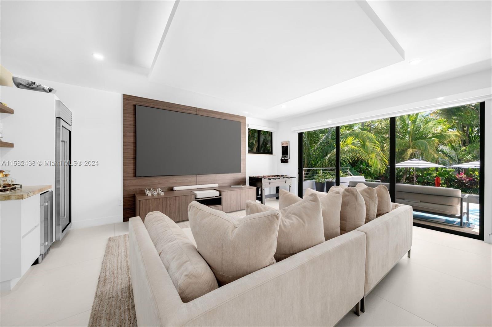 Contemporary 6,760 SF residence with 5 BD and 5.5 BA on a sizable 18,055 SF lot, in the highly sought-after gated community of Cocoplum. Substantially remodeled in 2021, the two-story home showcases voluminous ceilings and an open layout offering plenty of natural light. The gourmet eat-in kitchen features custom floor-to-ceiling cabinetry, ample storage, gas range, high-end appliances, and Grohe carbonated water filter system. The kitchen and family room open seamlessly to outdoor entertainment areas and a beautiful backyard, including a pool with jacuzzi, terraces with retractable awnings, summer kitchen, and stunning tropical landscaping. Additional features include impact windows and doors, office with glass enclosure, media room, and 2-car garage with epoxy flooring.