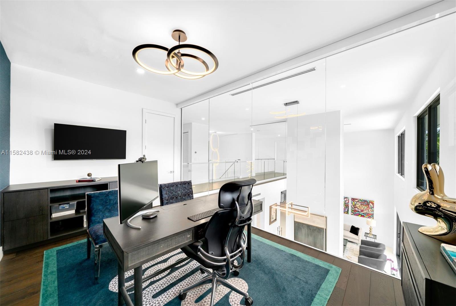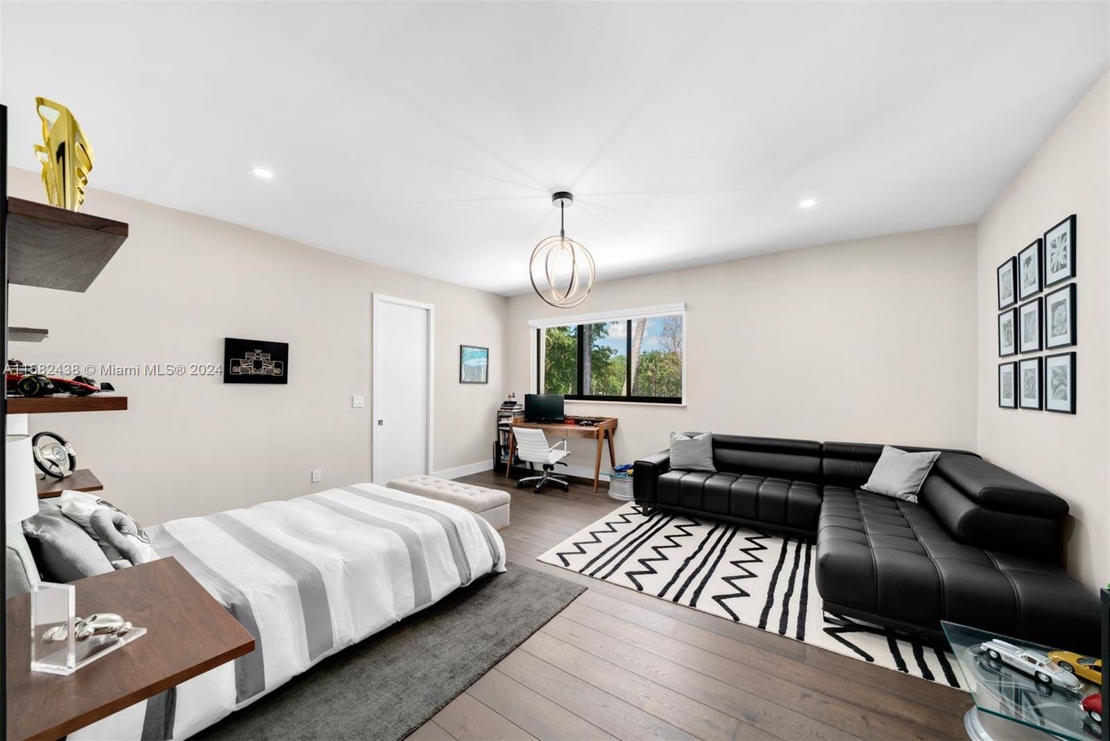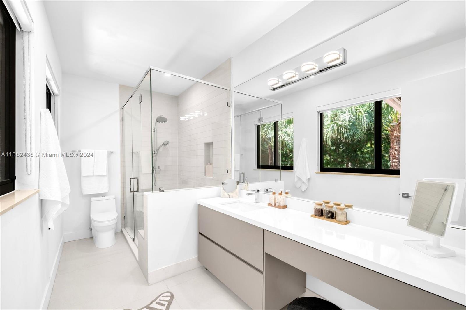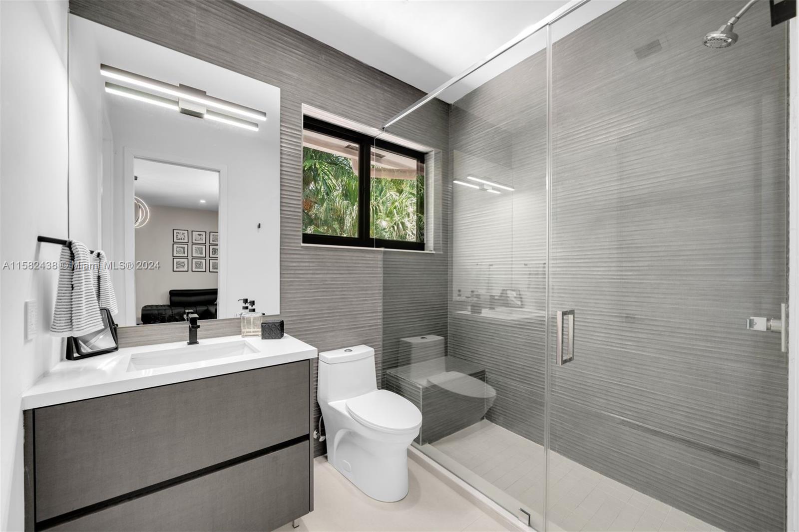 Contemporary 6,760 SF residence with 5 BD and 5.5 BA on a sizable 18,055 SF lot, in the highly sought-after gated community of Cocoplum. Substantially remodeled in 2021, the two-story home showcases voluminous ceilings and an open layout offering plenty of natural light. The gourmet eat-in kitchen features custom floor-to-ceiling cabinetry, ample storage, gas range, high-end appliances, and Grohe carbonated water filter system. The kitchen and family room open seamlessly to outdoor entertainment areas and a beautiful backyard, including a pool with jacuzzi, terraces with retractable awnings, summer kitchen, and stunning tropical landscaping. Additional features include impact windows and doors, office with glass enclosure, media room, and 2-car garage with epoxy flooring.