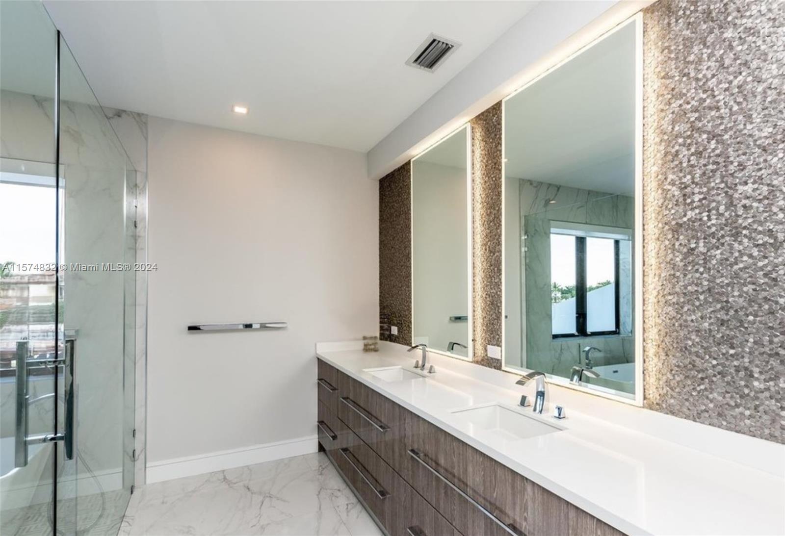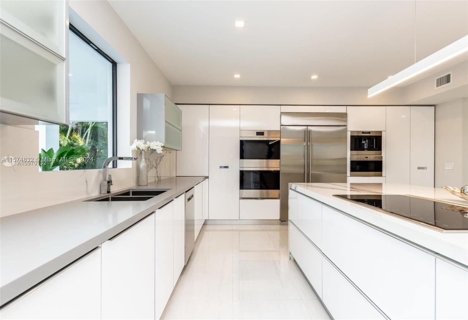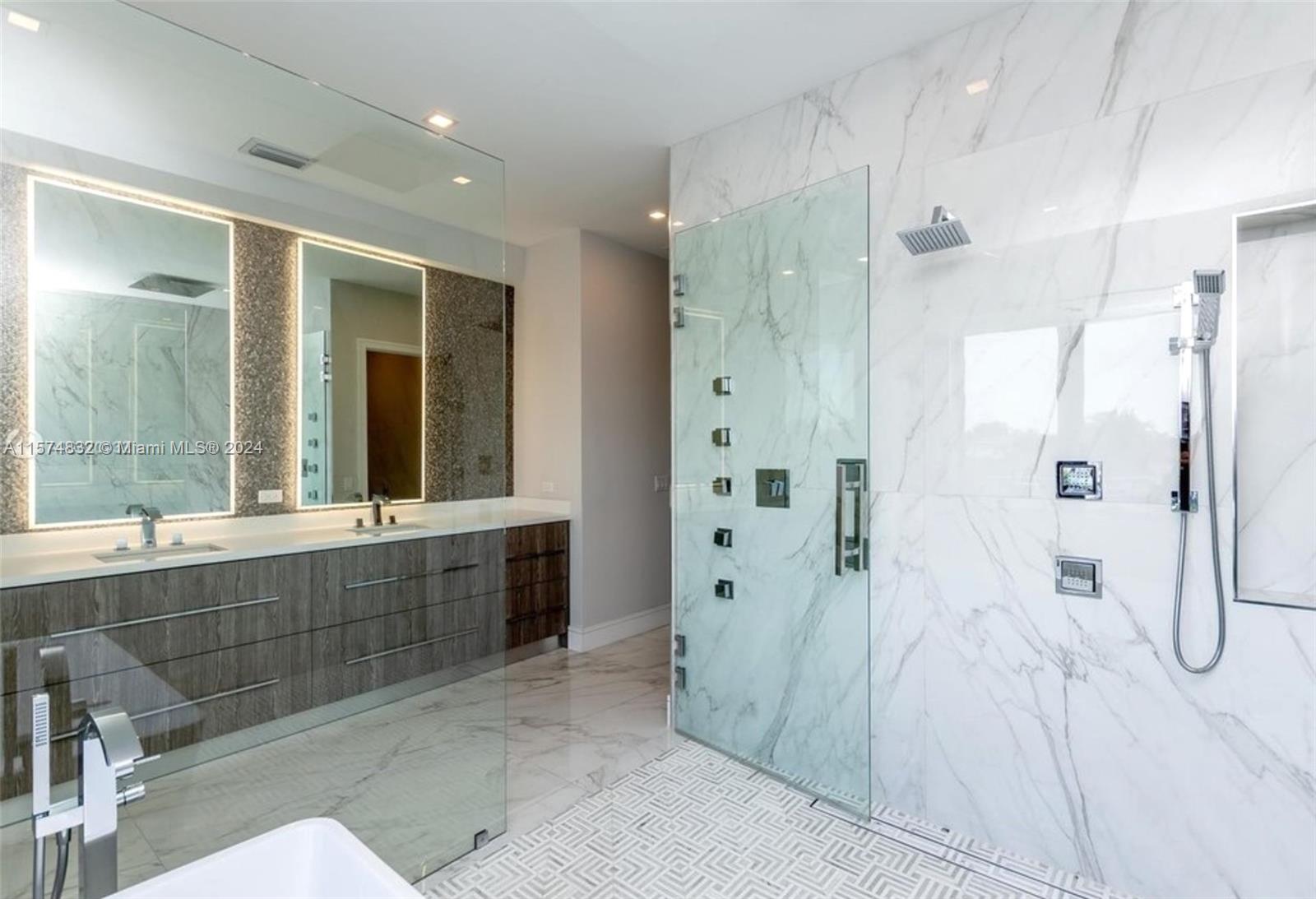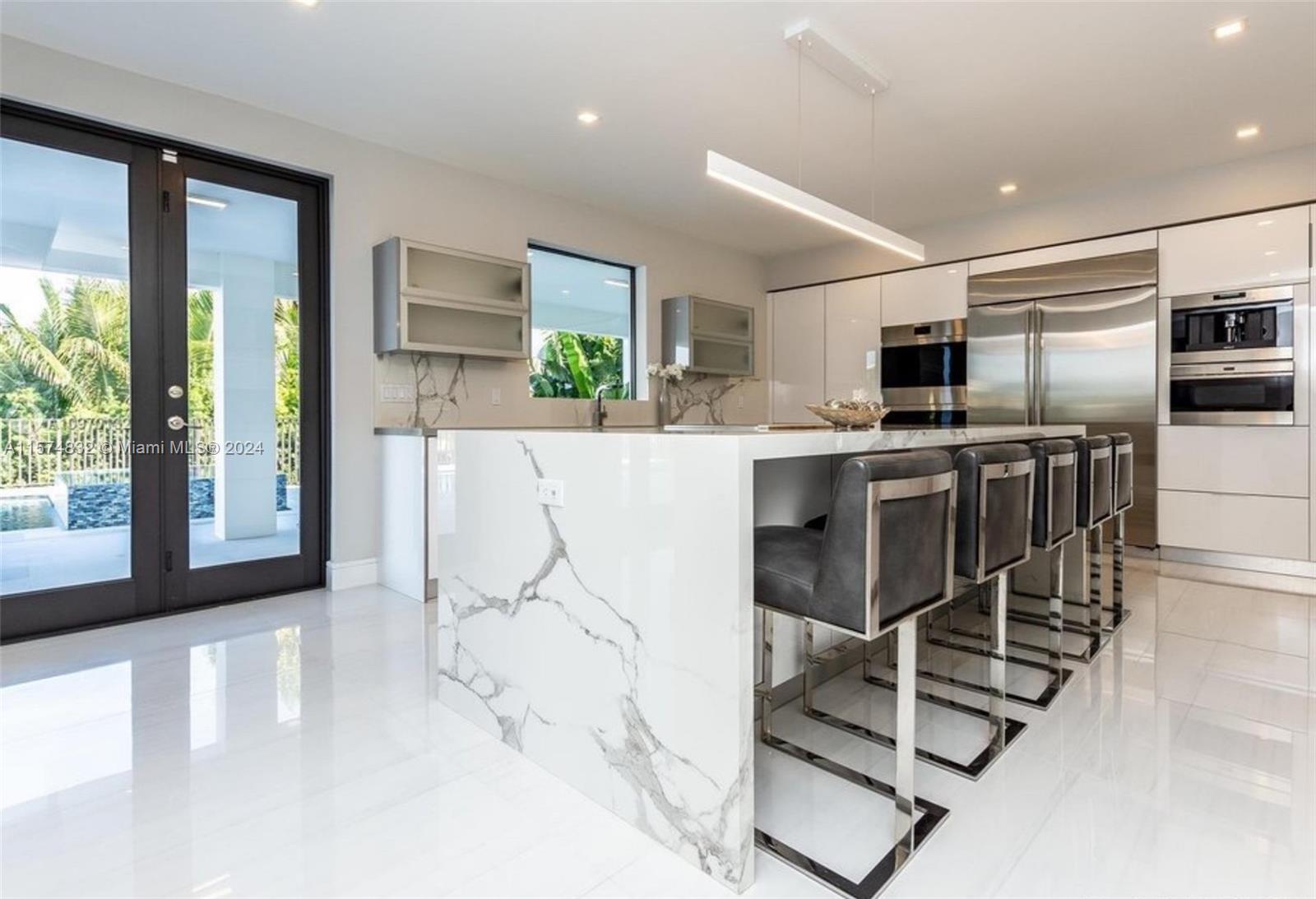 Gables waterfront modern home with 50' dock & direct ocean access in Gables by the Sea. 6 BD, 7.1 BA with office and gym. New dock, beach entry pool, infinity spa, full cabana bath, pool grill station, entertainment areas, 2 car garage, gym, sauna, chef's kitchen w/full quartz island, European appliances. All 2nd floor is a Primary Suite with an office and 4 walk-in closets, sitting room and wet bar, 2 huge terraces with waterway views, and a spa bath with a soaking tub. Highly elevated oversized flood safe .36 acre private corner lot in the walkable, and guard-gated Gables by the Sea with a neighborhood park & A+ schools (Pinecrest Elementary and Gulliver). Available with or without furniture.