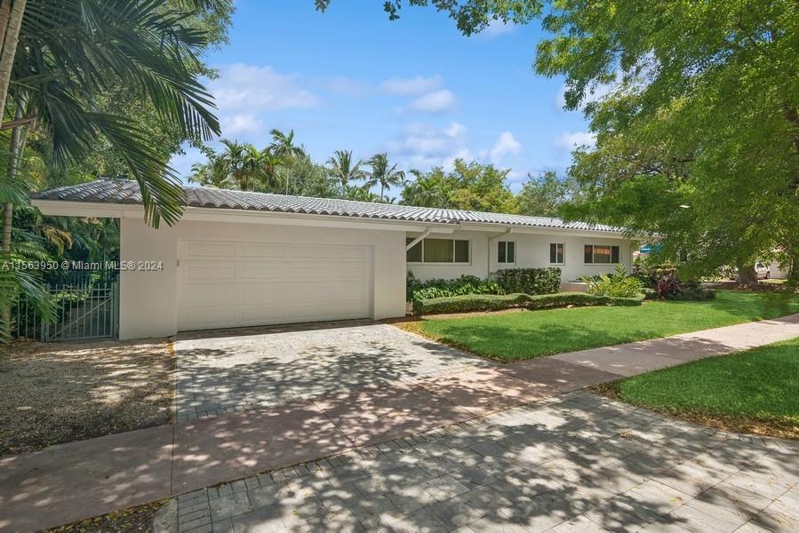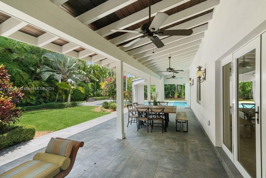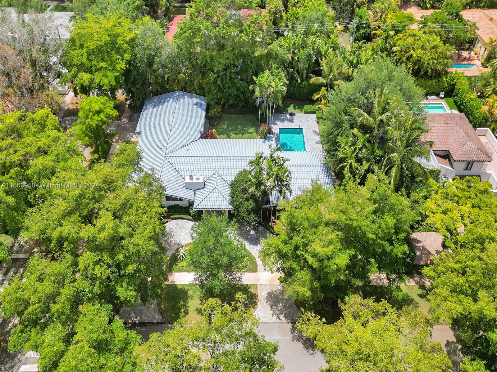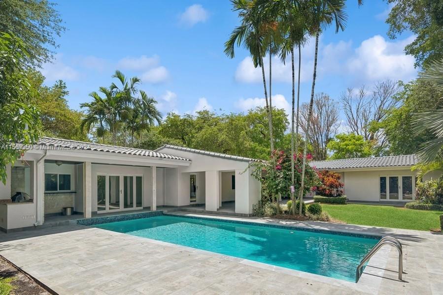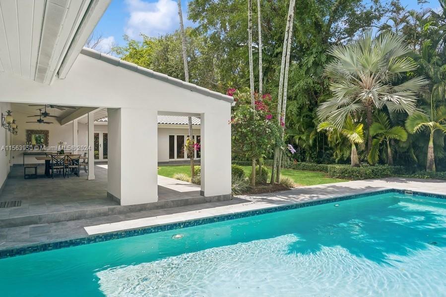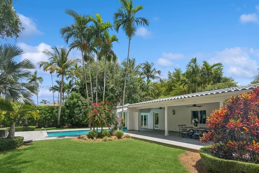 Spectacular North Gables Tropical Oasis! This spacious 3,375 sqft, 1-story 3bd3bths + wood-paneled study, offers a perfect blend of classical elegance and modern updates. Nestled on a 16,800 sqft corner lot, the covered entry leads into a lg formal living formal dining, which opens to an extra-lg covered terrace, exuding breathtaking views of the exquisite, lush backyard, open pool area summer kitchen! Ideal for alfresco dining and entertaining! The serene primary suite, boasts double walk-in closets, a bathroom wseparate sinks, makeup vanity and lg shower. The gourmet kitchen is a chefs dream, featuring all wood granite finishes. A spacious family rm wwet bar,also opens to the pool area. Steps away from Country Club Prado excellent Schools! Truly Florida living at its finest!