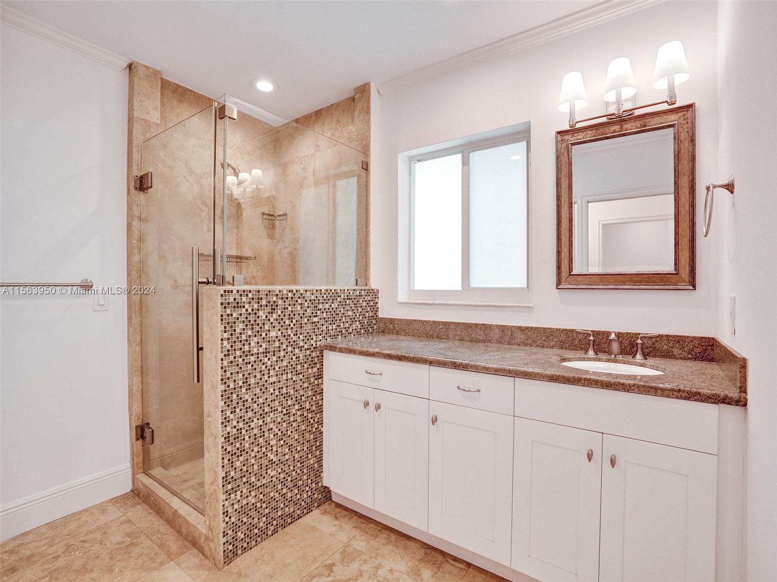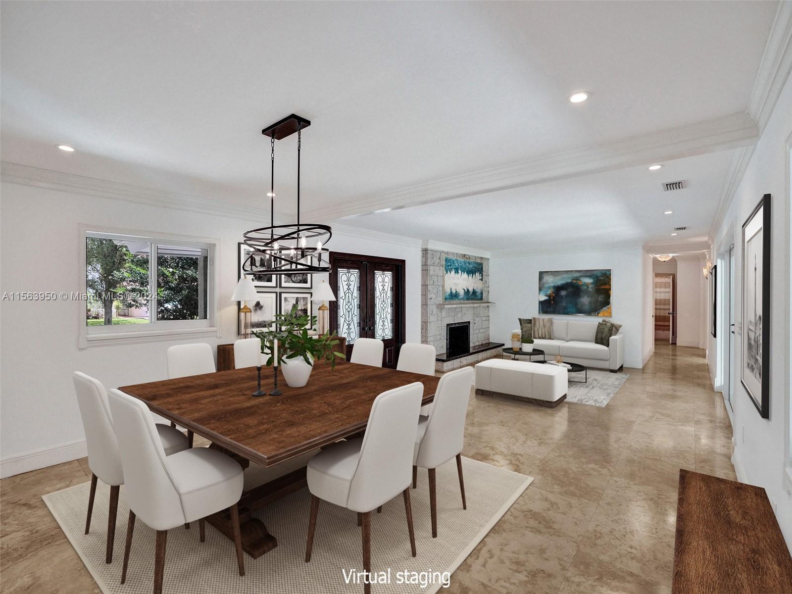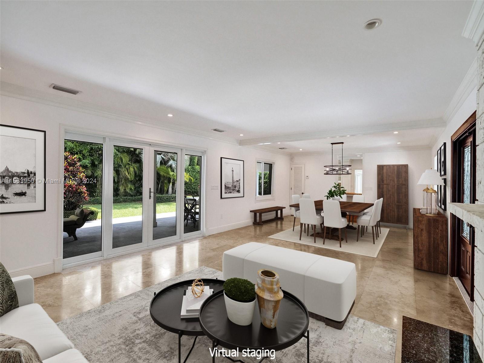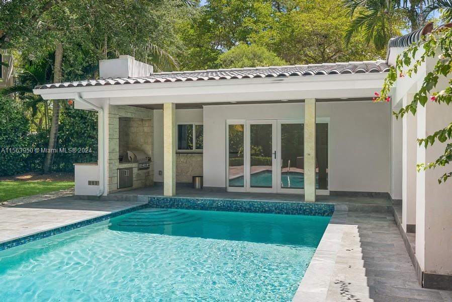 Spectacular North Gables Tropical Oasis! This spacious 3,375 sqft, 1-story 3bd3bths + wood-paneled study, offers a perfect blend of classical elegance and modern updates. Nestled on a 16,800 sqft corner lot, the covered entry leads into a lg formal living formal dining, which opens to an extra-lg covered terrace, exuding breathtaking views of the exquisite, lush backyard, open pool area summer kitchen! Ideal for alfresco dining and entertaining! The serene primary suite, boasts double walk-in closets, a bathroom wseparate sinks, makeup vanity and lg shower. The gourmet kitchen is a chefs dream, featuring all wood granite finishes. A spacious family rm wwet bar,also opens to the pool area. Steps away from Country Club Prado excellent Schools! Truly Florida living at its finest!
