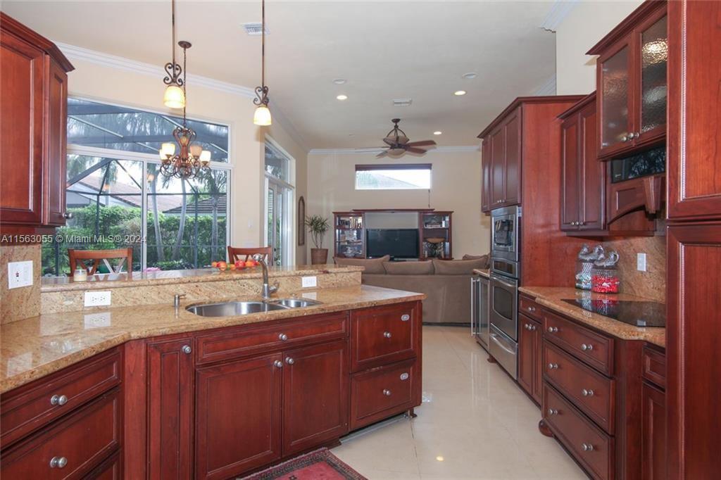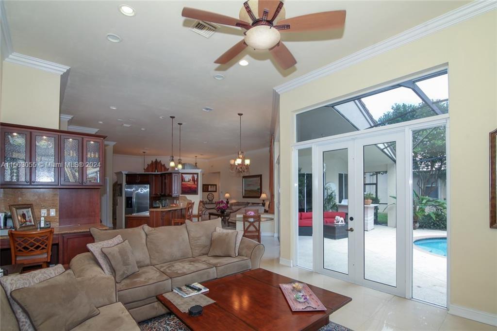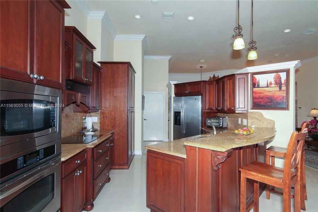 Discover the allure of gated living in Weston Hills with this stunning property. Step into an expanded master bedroom featuring a generously sized walk-in closet. The triple split floor plan ensures both brightness and spaciousness throughout the home, complemented by the elegance of porcelain and wood flooring, crown molding, and vaulted ceilings. New roof 2023, new air conditioning and water heater 2022. Entertain effortlessly in the upgraded kitchen equipped with stainless steel appliances, solid wood cabinetry, granite countertops, and a stylish backsplash. The double door entry welcomes you into a space adorned with new paint and smooth ceilings, with upgraded baths adding a touch of luxury.