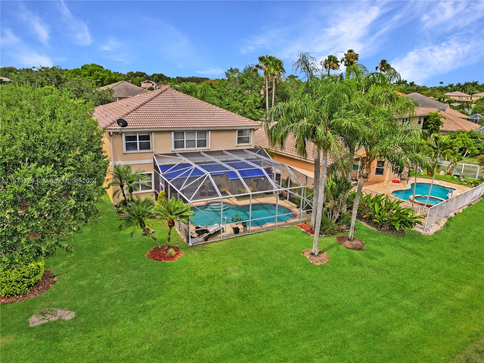 Welcome to the Guard-gated community of Emerald Estates! Step into this stunning 2-story residence boasting spacious bedrooms, a loft & updated bathrooms. Entertain in the expansive living areas with volume ceilings, perfect for gatherings of all sizes. A Chefs Kitchen featuring granite countertops, custom wood cabinets, and sleek stainless-steel appliances. HOA amenities include security, lawn maintenance, gym, cable/internet, burglar alarm... Enjoy your private oasis with a screened-in saltwater pool with picturesque water views, adding tranquility to your life. Experience outdoor dining at its finest with an Argentinian grill, ideal for unforgettable BBQs. Centrally located to A-rated schools, highways, shops & restaurants. Don't miss the chance to make this exquisite property your own.