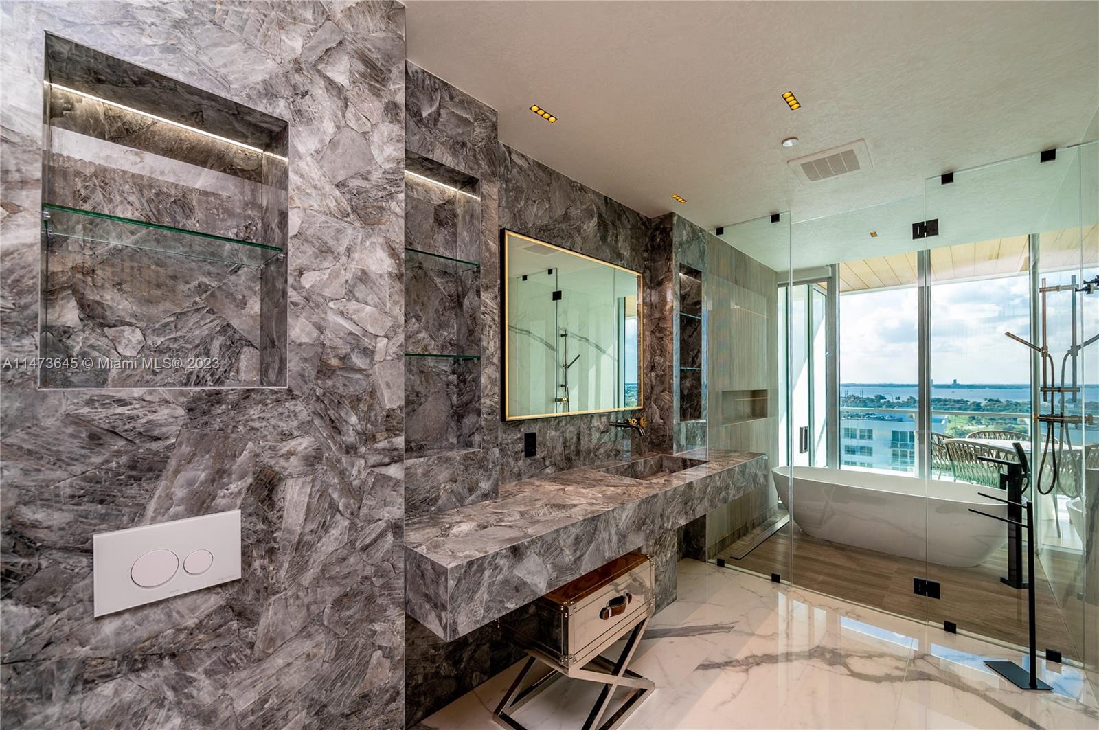 Welcome to 57 Ocean Sky Residence #1603, a flow through residence spanning the entire NE corner. This spectacular high floor unit features stunning ocean to intracoastal views. The owner spared no expense transforming the space including a brand new Poliform kitchen with Neolith countertops, Floss lighting, Lutron smart home lighting system, Pail Porte Italian doors, booked matched porcelain floors, & Bongio bathroom hardware. Furniture is all custom from luxury brands such as Dedon, Volpi, Poltrona Fraua, Visionnaire Home, & Oasis Luxury Bath Collection. Ocean front primary bedroom w/spacious built-in closet, 3 guest beds with en-suite baths, large pantry/nanny bedroom, 4 valet spaces, & 1,600+ sq ft of deep terrace space. Experience Miami Beach's finest oceanfront living.