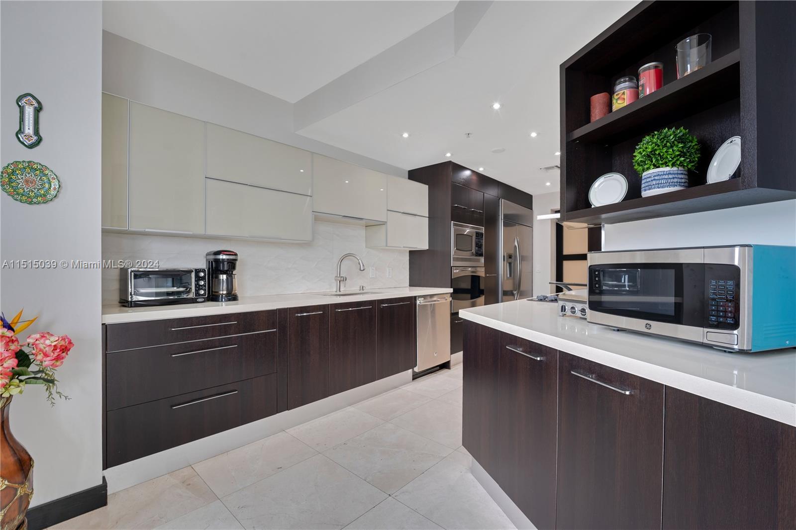 Amazing Corner Unit with spectacular views of the bay and Miami skyline. 3 bedrooms/3.5 baths, 2293 sqft, each bedroom have a private bathroom. Elegant tile floors in the living areas, wood floors in the bedrooms, spacious and updated closets and bathrooms, remodeled kitchen with top of the line appliances and breakfast area. Unit have 2 balconies, front balcony with amazing North views that will allow you to enjoy Miami best fireworks, and South balcony to enjoy Miami amazing sunsets. 2 parking spaces included and 1 storage. Three Tequesta being one of the most amazing buildings in the exclusive Brickell Key, with top amenities. Must See!!