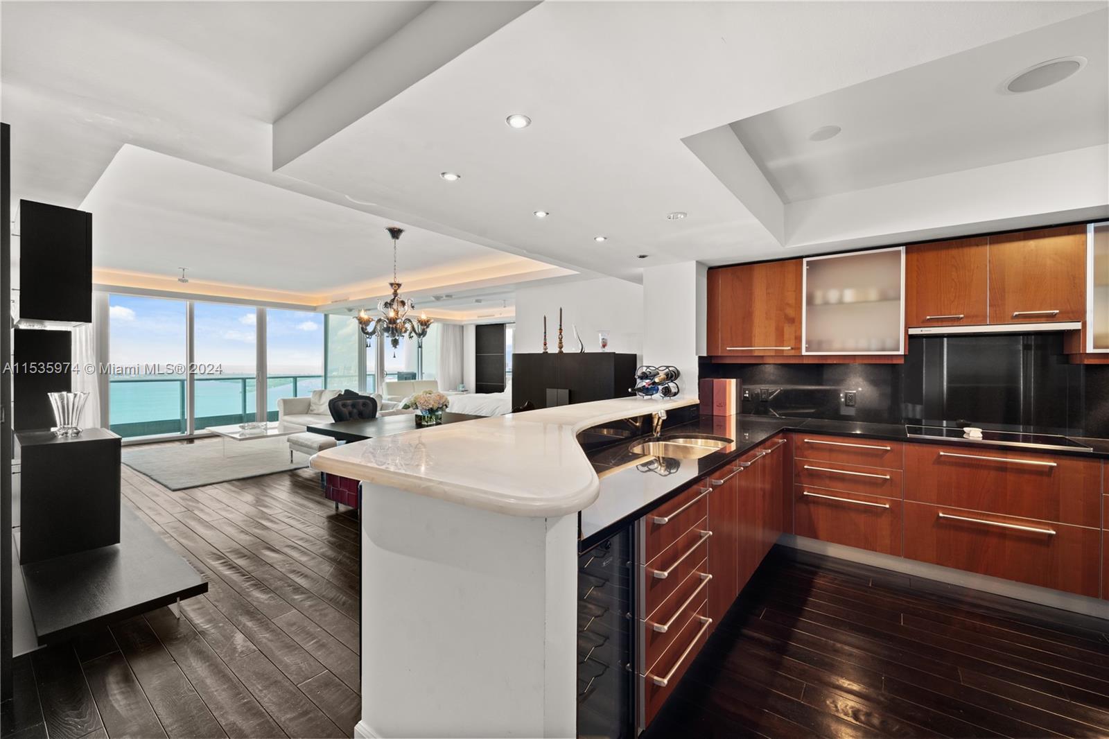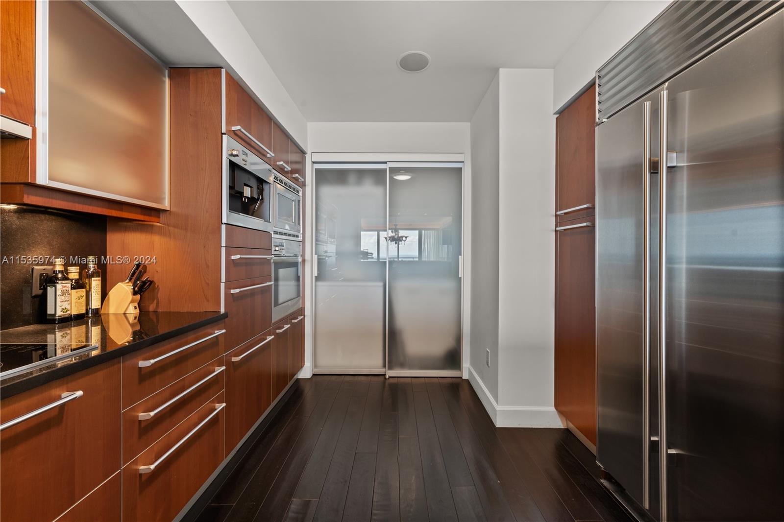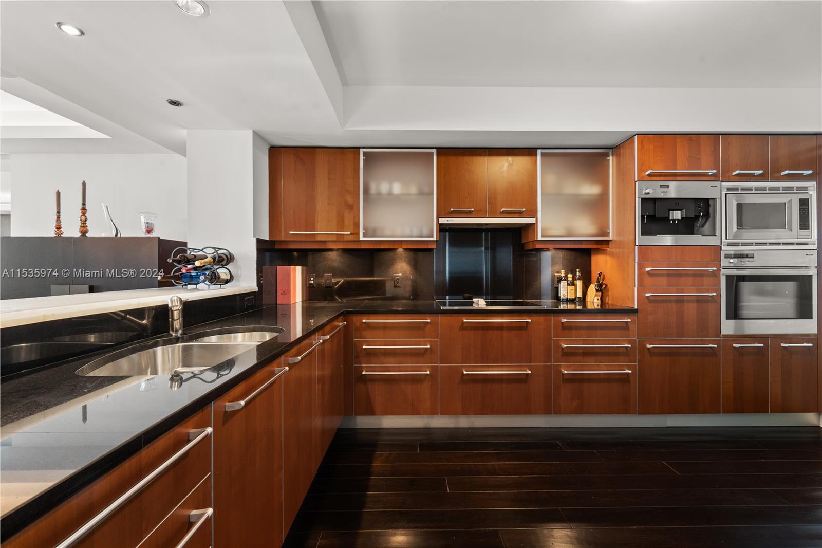 Priced to sell! Tessi Garcia designed turnkey 2Bed+Den 3Bath with breathtaking water views located right on the bay in the heart of Brickell. This unit features dark wood floors throughout, floor-to-ceiling high impact-resistant windows, 10 foot ceilings, master bedroom with illuminated king size bed and sliding glass door system to keep the bedroom exposed or private, built in closets, glass-enclosed shower in master bath and jacuzzi with marble floors. Kitchen with high-end appliances by Sub-Zero Miele, Italian wood cabinetry and cappuccino maker, WD. Lutron lighting system, remote control Hunter Douglas shades and more. 1 assigned parking space right off the lobby, 1 valet space and 1 storage cage. Full service amenity style building.