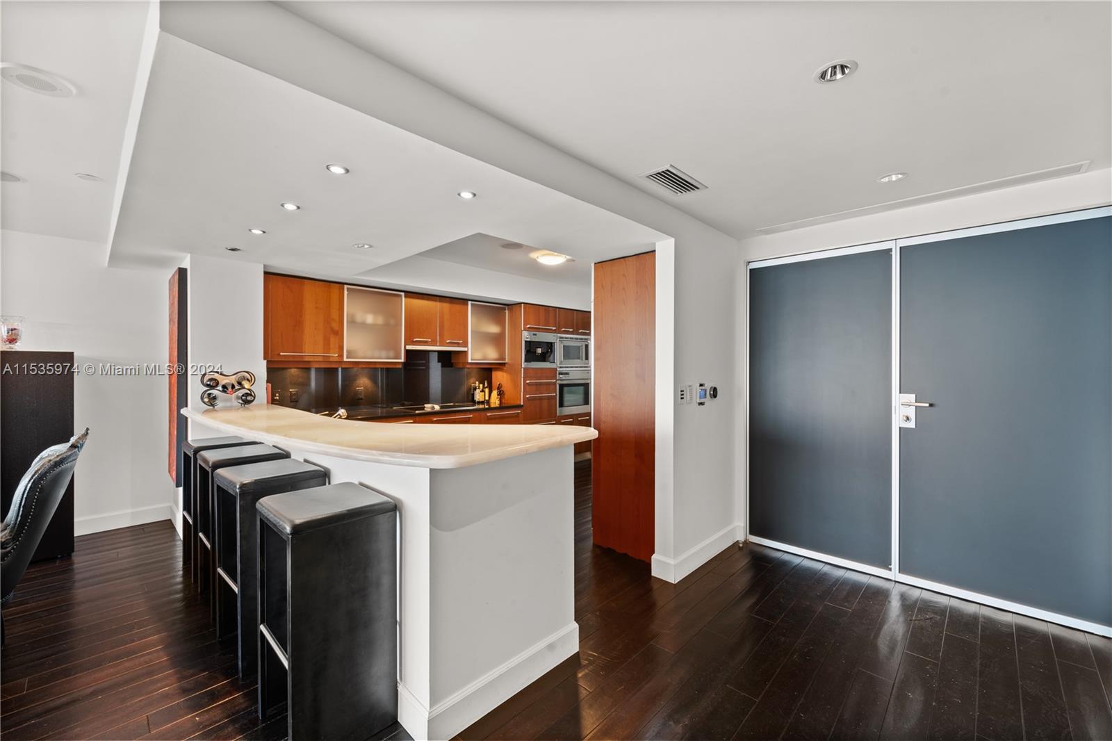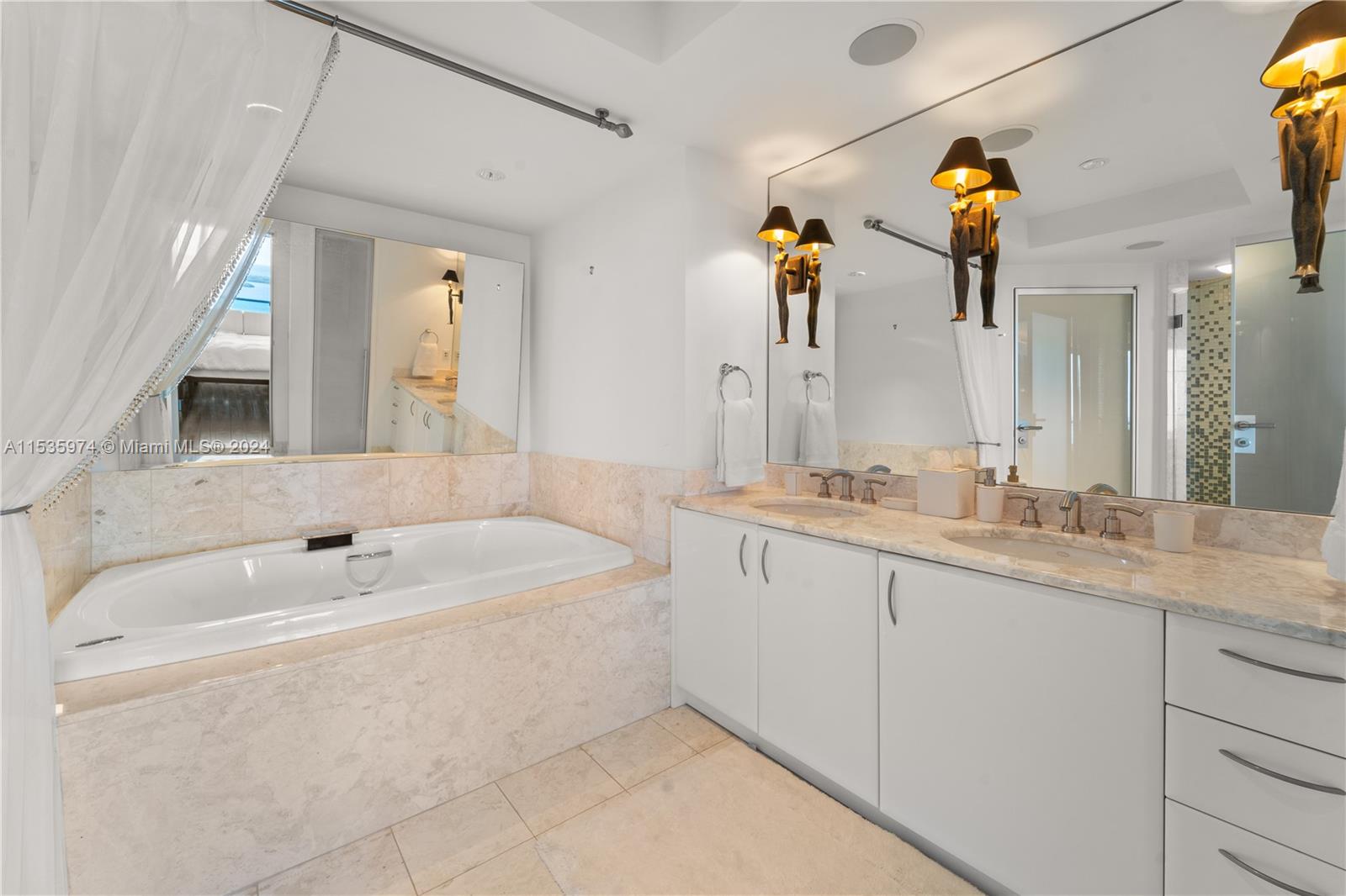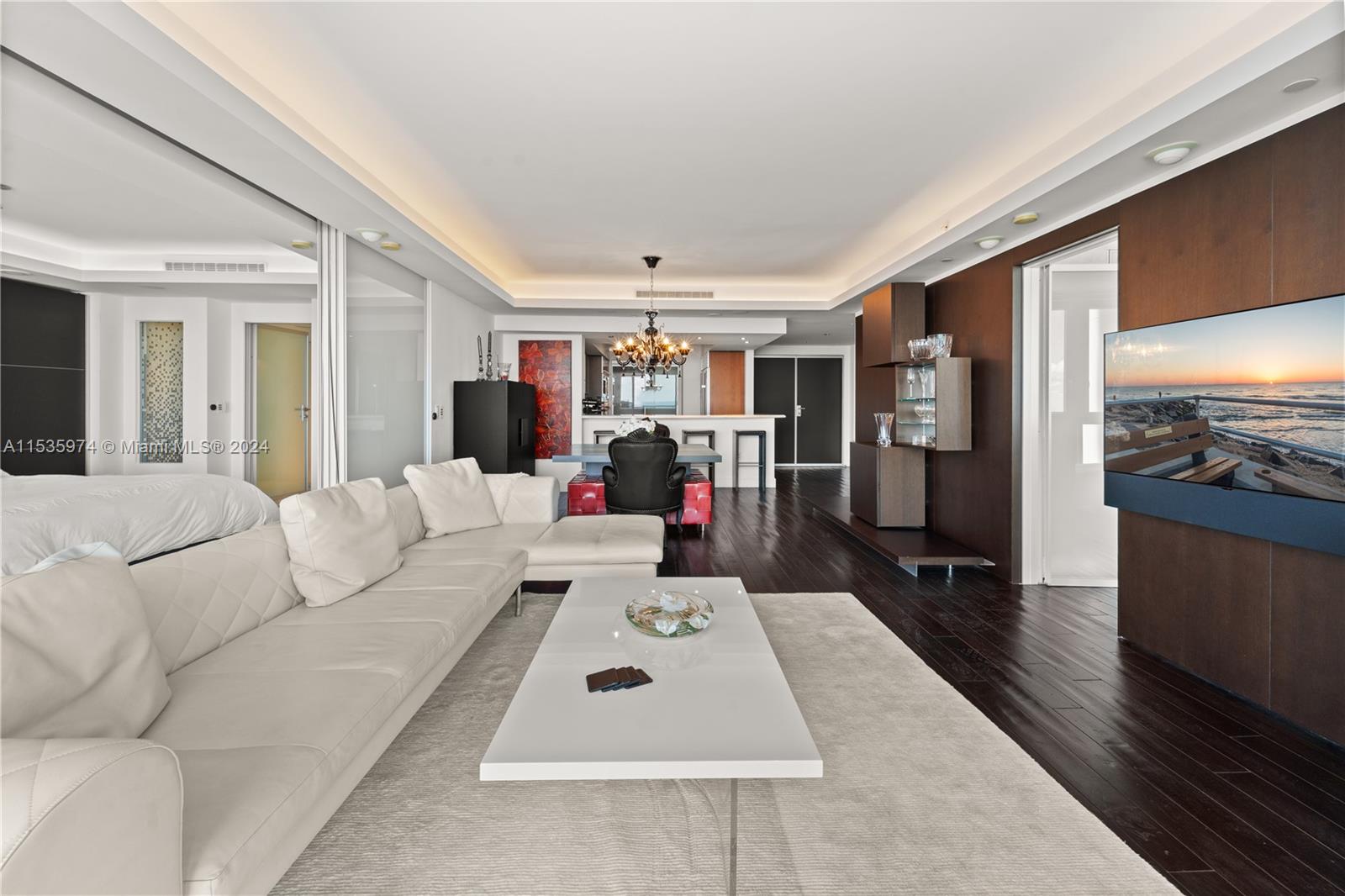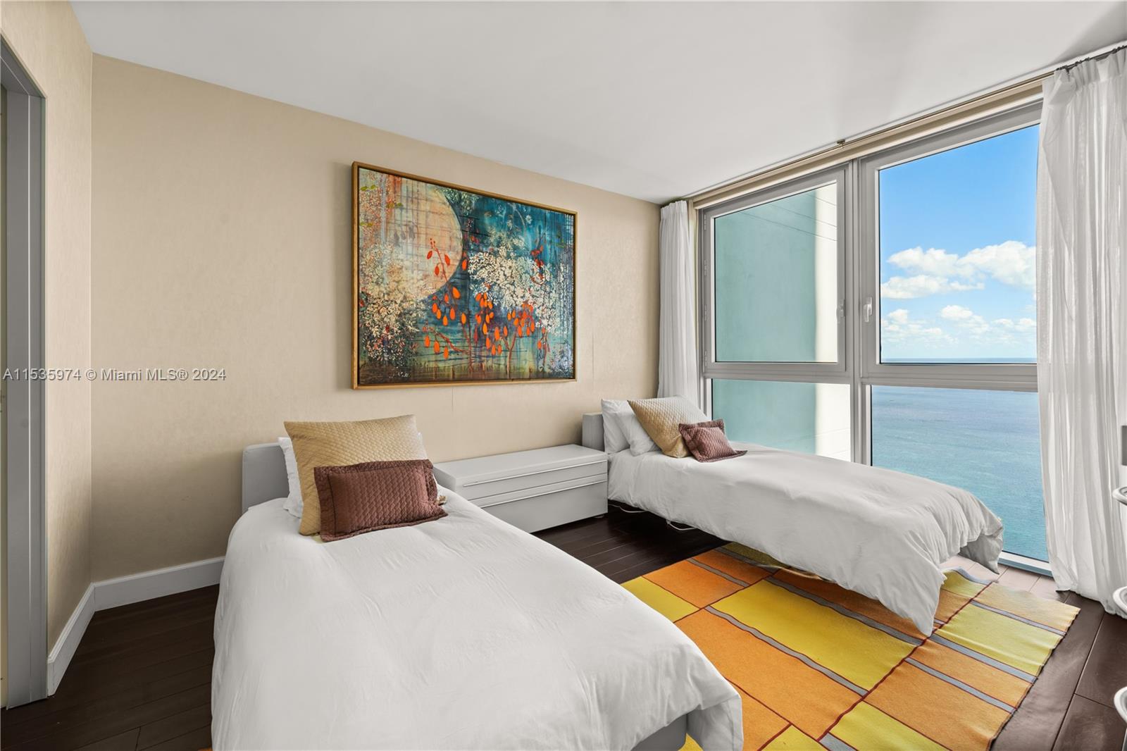 Priced to sell! Tessi Garcia designed turnkey 2Bed+Den 3Bath with breathtaking water views located right on the bay in the heart of Brickell. This unit features dark wood floors throughout, floor-to-ceiling high impact-resistant windows, 10 foot ceilings, master bedroom with illuminated king size bed and sliding glass door system to keep the bedroom exposed or private, built in closets, glass-enclosed shower in master bath and jacuzzi with marble floors. Kitchen with high-end appliances by Sub-Zero Miele, Italian wood cabinetry and cappuccino maker, WD. Lutron lighting system, remote control Hunter Douglas shades and more. 1 assigned parking space right off the lobby, 1 valet space and 1 storage cage. Full service amenity style building.