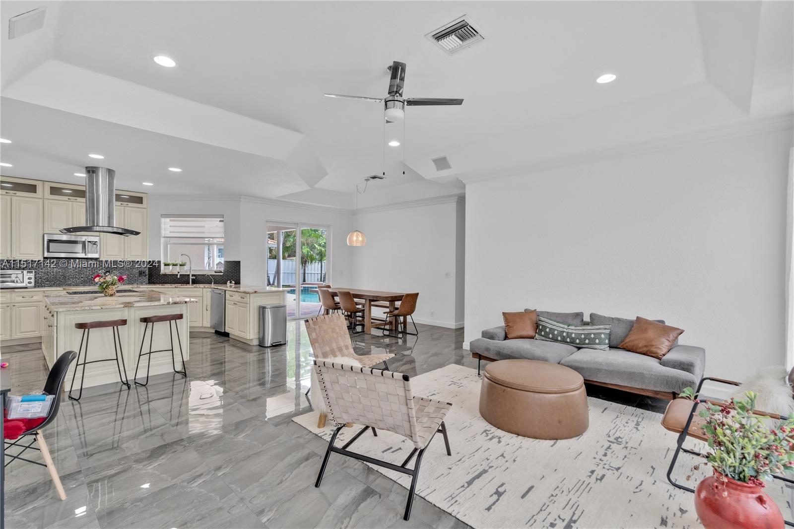 Beautiful 4 Bedroom, 2.5 Bath home in the prestigious gated community of Country Glen. This residence features a spacious layout with high ceilings, a 3-car garage, and a refreshing swimming pool. Upgraded with impact windows and doors for safety and efficiency. The roof was replaced in 2020, ensuring modern reliability. Situated on a generous 10,200 sq ft lot, offering a perfect blend of luxury and comfort that perfect for entertaining. Experience elevated living in this meticulously maintained home, where every detail reflects elegance and style.