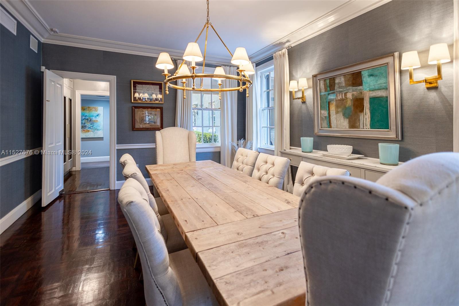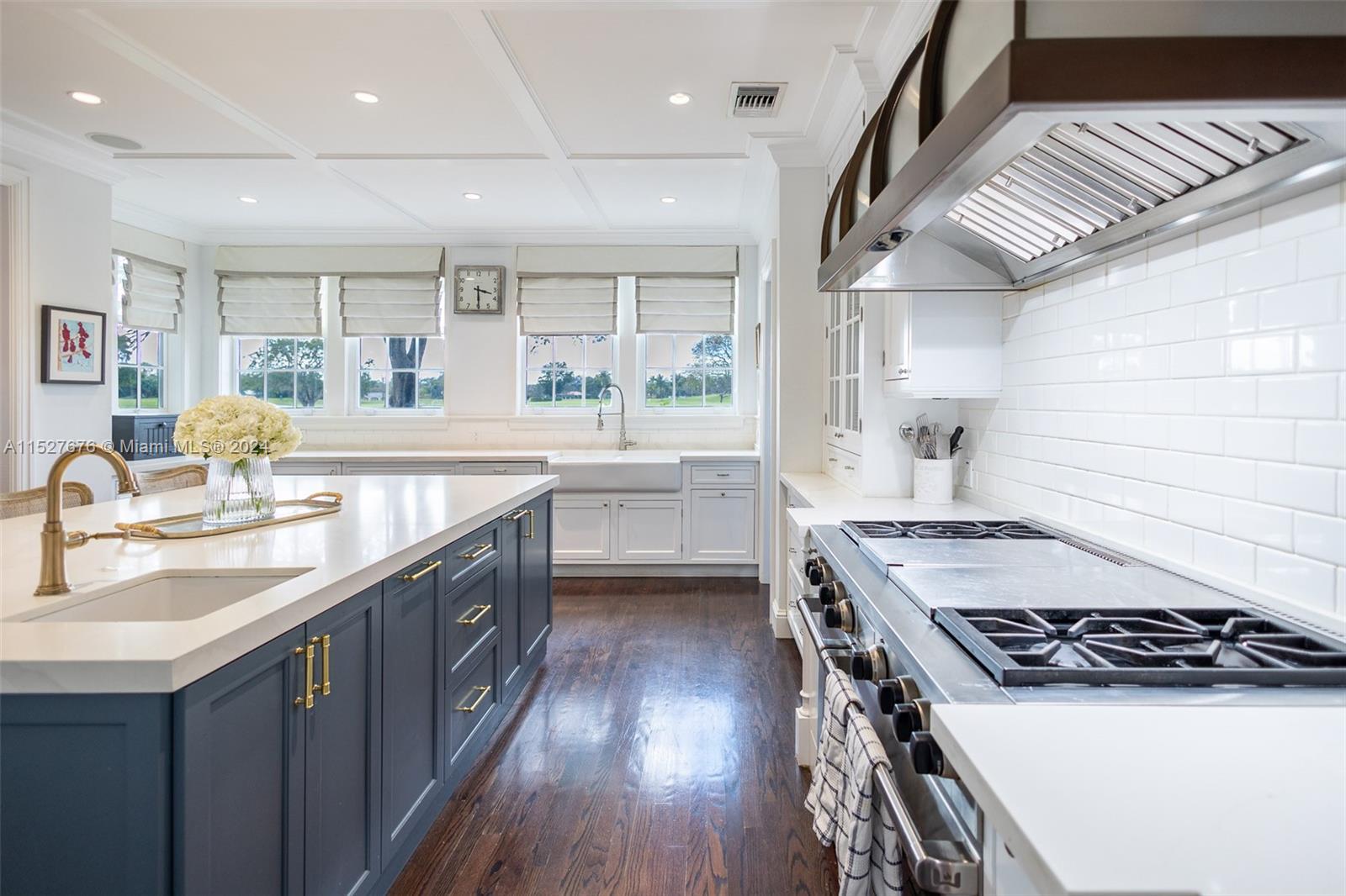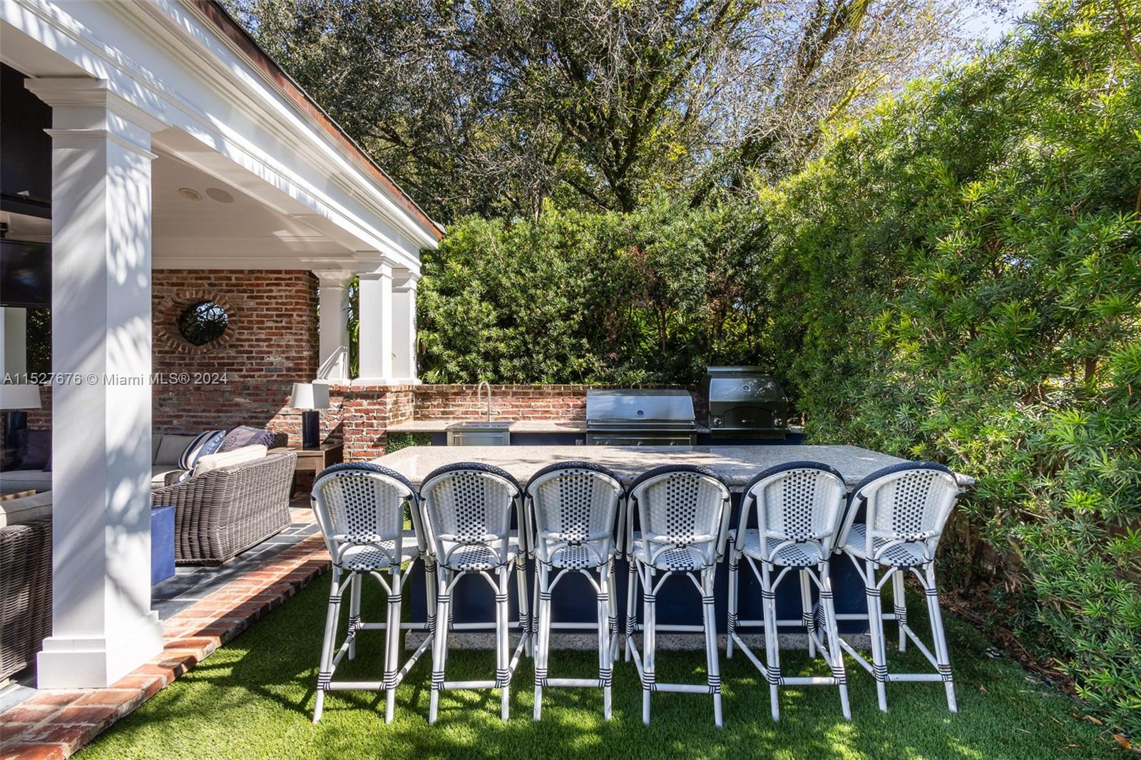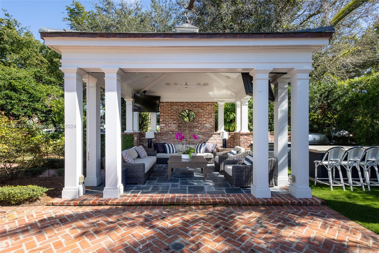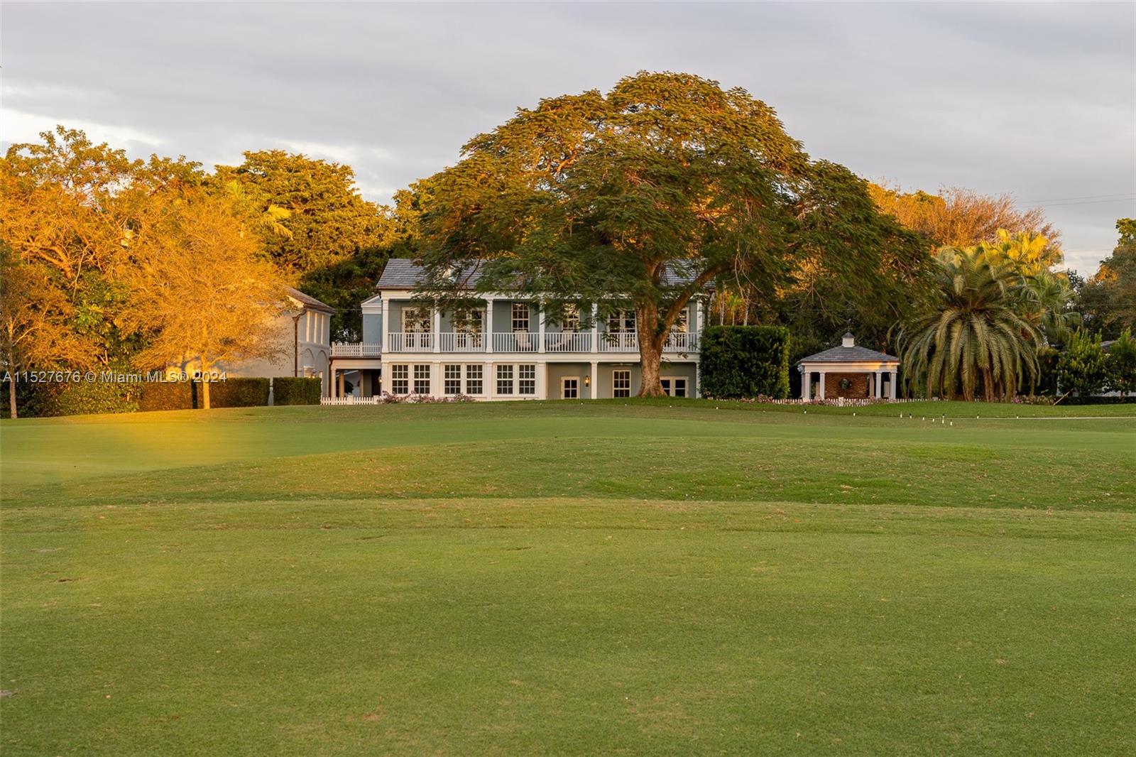 One of five original Coral Gables pioneer village homes, this impeccable 1938 8,711 SF estate on picturesque Santa Maria Street overlooks the 15th hole of the Riviera Golf Course. The 5-bedroom, 4-bathroom and 2 half-bath home has large living spaces, wraparound balconies, and great views from every room. A renovated gourmet eat-in kitchen has an impressive center island with seating, quartz countertops, luxury appliances, gas stove, and butler's pantry. Magnificent outdoor entertaining areas have a pool, manicured gardens, large gazebo with plenty of seating, and full summer kitchen with built-in grill and pizza oven. Includes a guesthouse, whole-house generator connected to the city gas line, new hurricane shuttering, 2-car garage, and new slate roof.