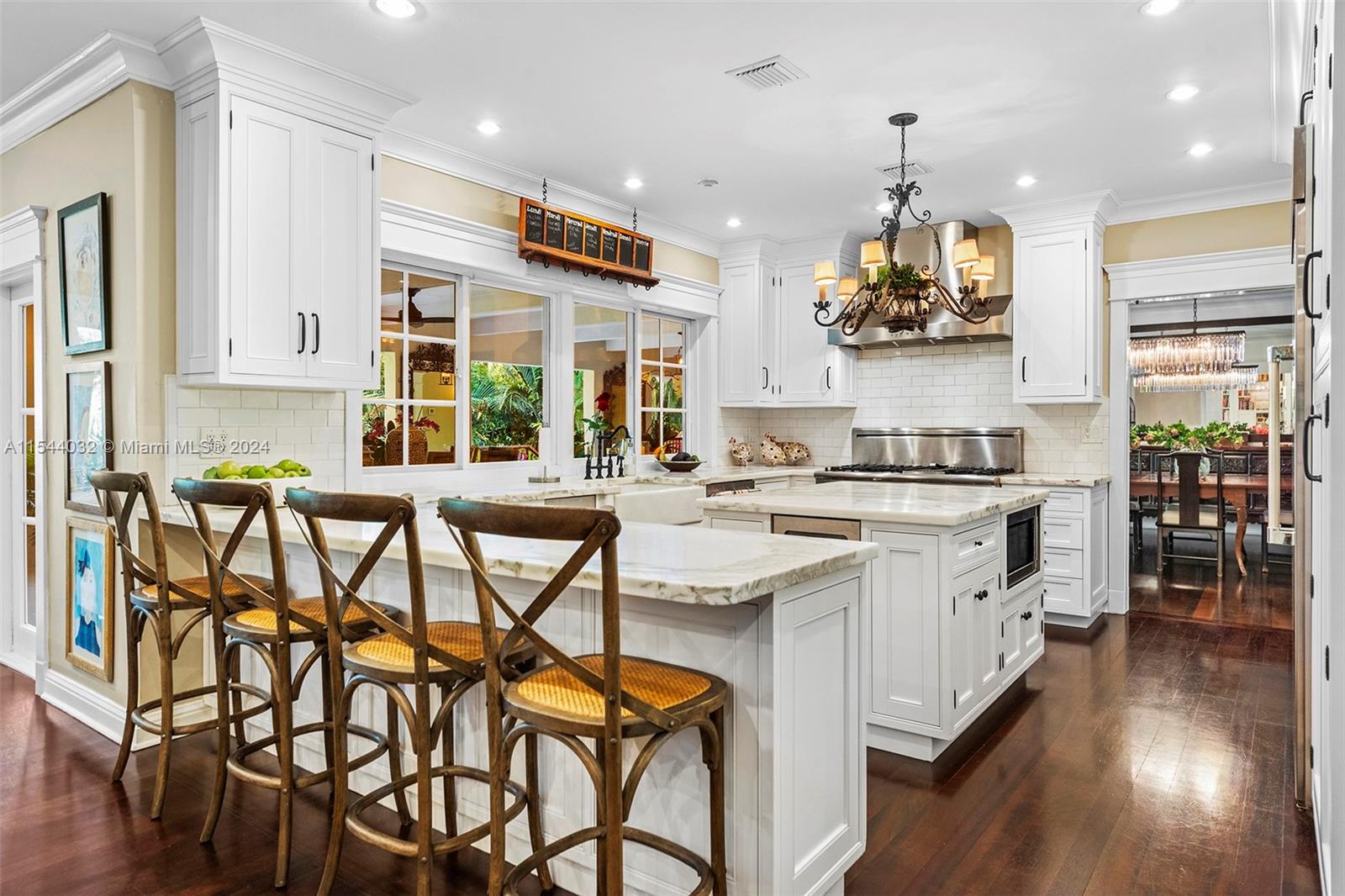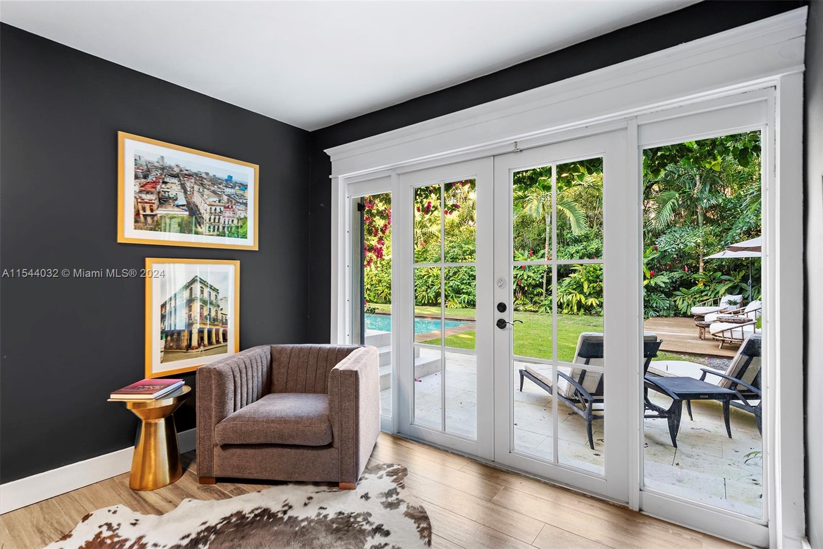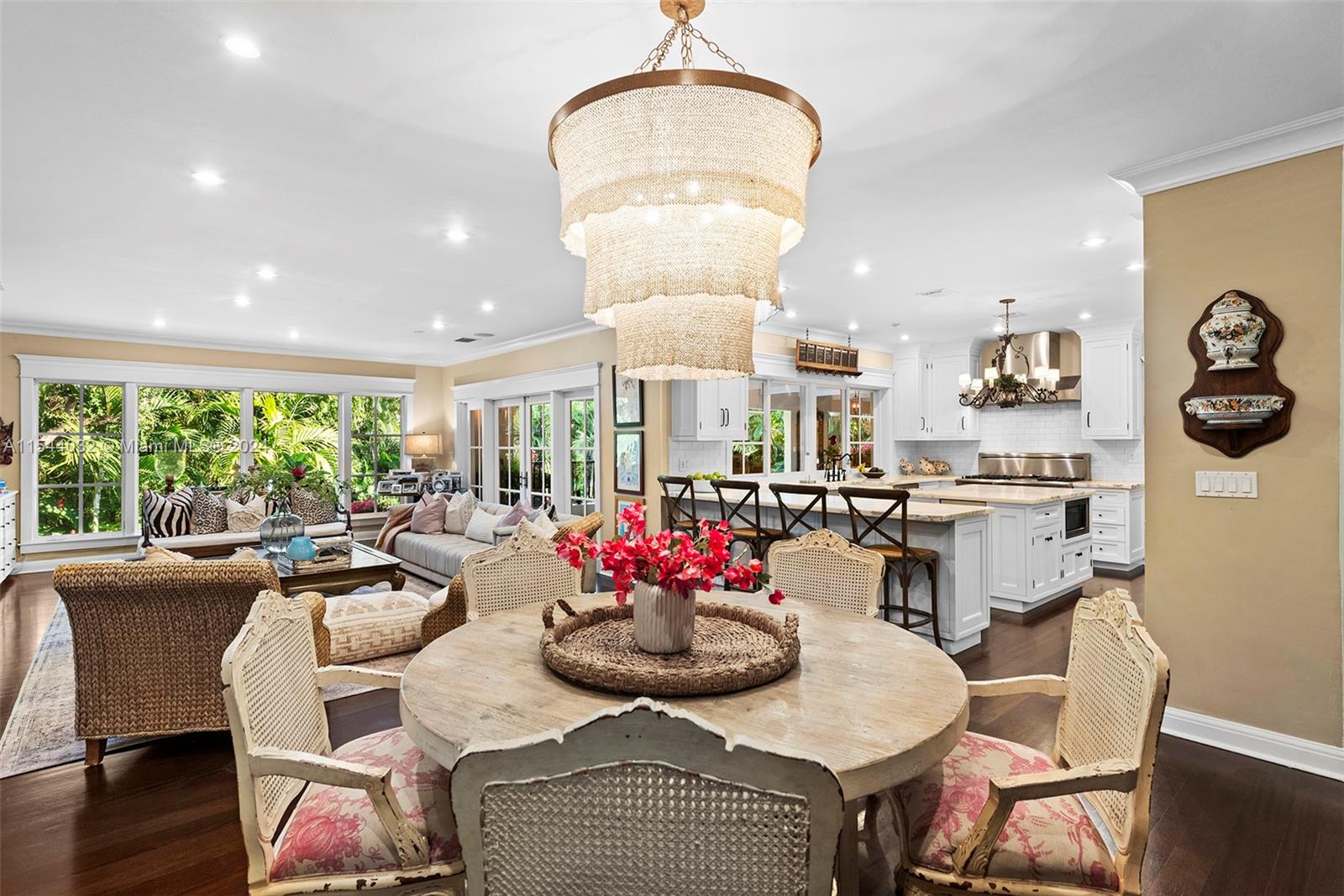 Centrally located in guard-gated Cocoplum this spectacular 6 BR, 6 BA, 6,153 SF home feels like a serene retreat. The inviting floorplan calls for indooroutdoor entertaining includes a spacious formal living rm, dining rm, generous family rm chefs kitchen all surround a deep covered porch w its own liv din spaces. Bougainvillea-draped stairs lead to the pool area that feels like a private oasis! Adjacent to the pool is a guest suite featuring a BR w BA, game rm, private office w wine cellar. Located on the homes main level, the primary suite includes BA w tub, shower, dual vanities, 2 closets spacious BR w verdant view. 3 more BRs sit adjacent to the primary there is an addl BR on the opposite side. 2 car gar, laundry rm, impact glass, wood flrs, 20,019 SF lot!