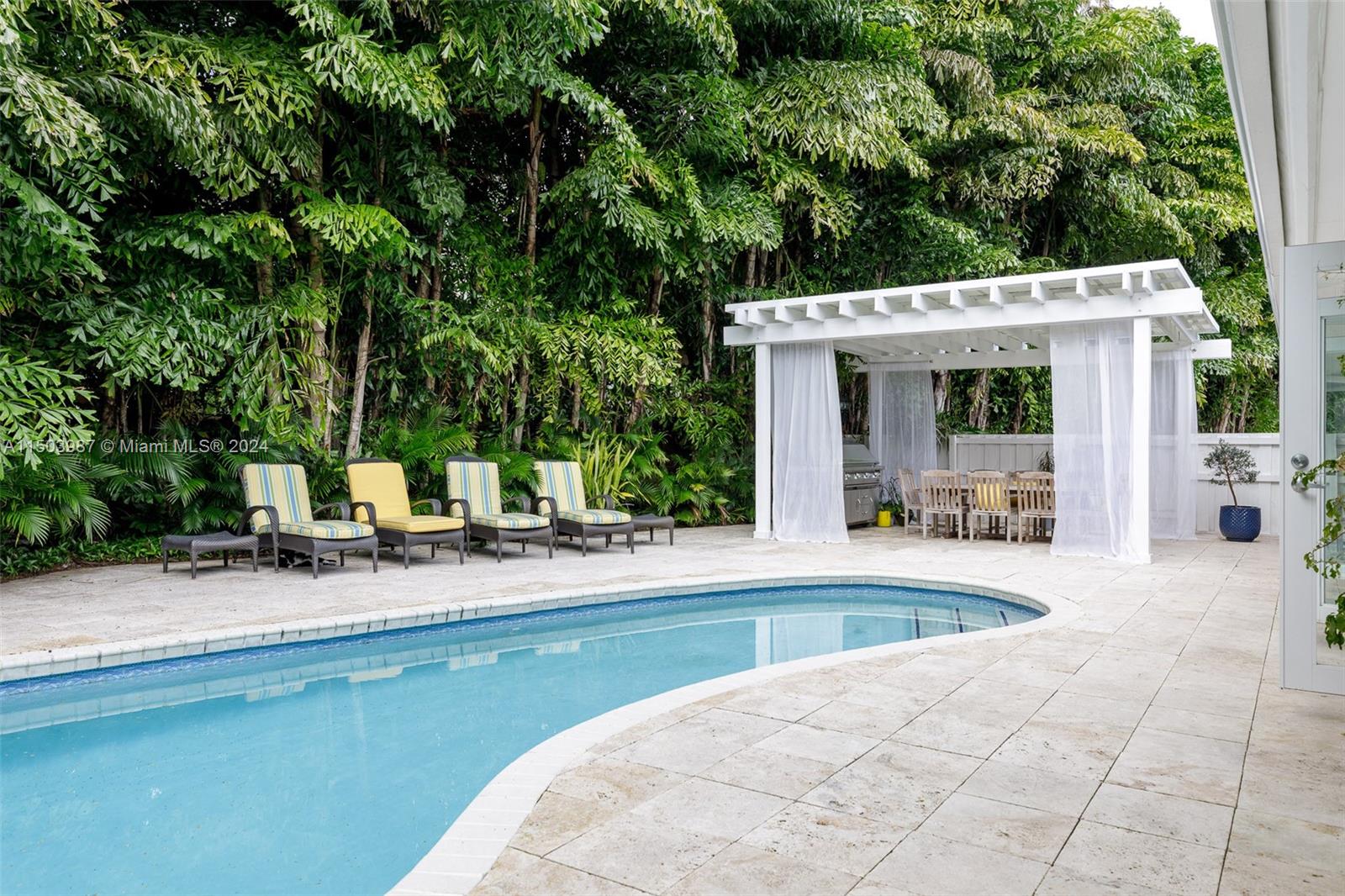 Meticulously remodeled 4,481 SF residence, sits on a 40,075 SF lot in the heart of Coral Gables. Features 4 bedrooms, 3.5-bathrooms, and the serenity of oak and banyan trees. The exceptional split floor plan showcases thoughtfully located and spacious bedrooms, two primary suites, and 3.5 bathrooms. A gourmet eat-in kitchen offers ample counter space and an oversized walk-in pantry. The beautiful backyard features a pool, covered dining and BBQ space, and lush landscaping providing optimal privacy. Additional features include impact windows and doors and stunning porcelain floors throughout. Close to the best schools, restaurants, parks, and shopping. Also available for rent.