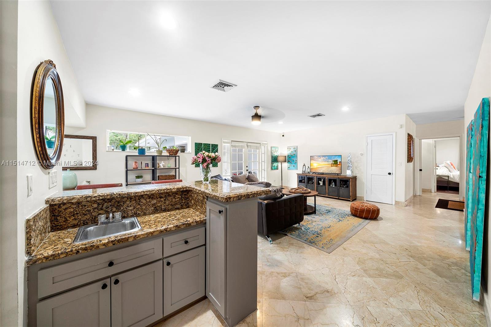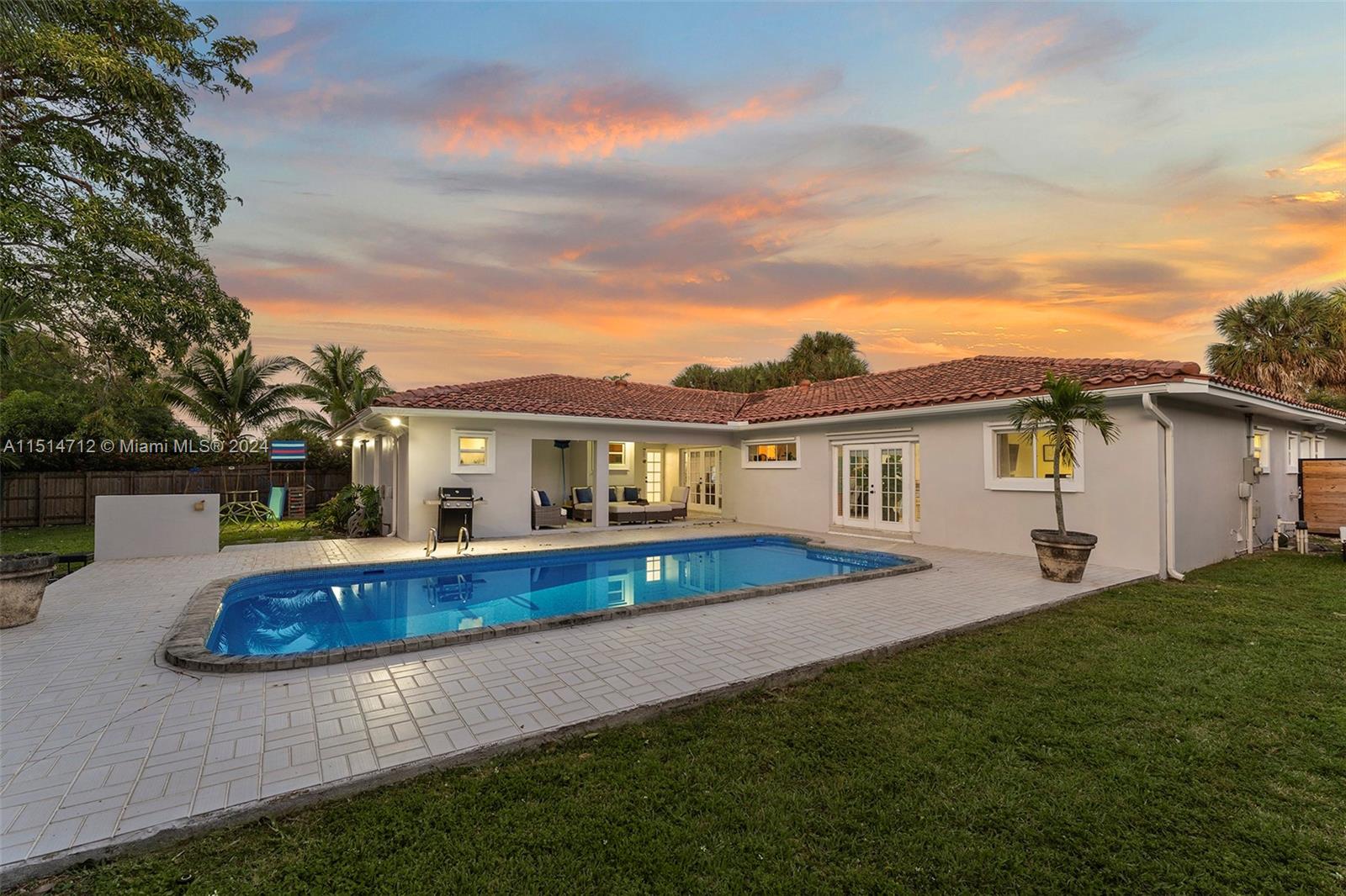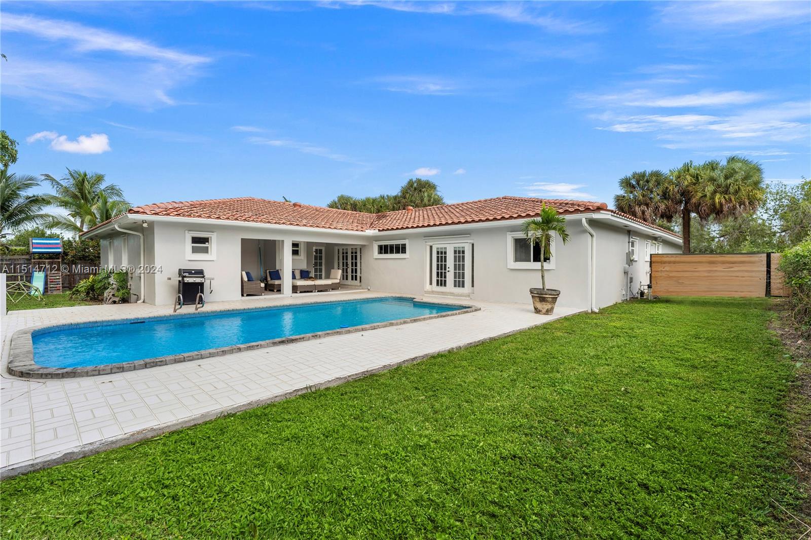 Rare gem available in the coveted guard gated S. Gables Kings Bay community. This warm and inviting home offers 5 bedrooms, 4.5 baths plus large office/den.Its features include formal living and dining rooms, fabulous eat-in kitchen, and family room overlooking a gorgeous pool and covered outdoor entertainment area. The home boasts 2 primary bedrooms, ensuite bathrooms with large walk in closets.The 5th bedroom has a separate entrance, perfect for guest/service quarters. This exceptional property sits on a generous 15,200 SF lot with children's playground set and a 2 car garage with AC. Enjoy the FL lifestyle in a community that offers a resident-only park and access to Deering Bay marina with communal boat slips. Close proximity to nationally ranked schools, fine shopping and dining.