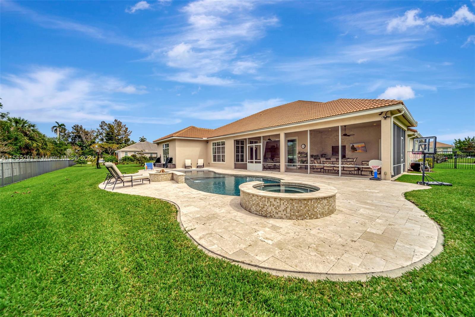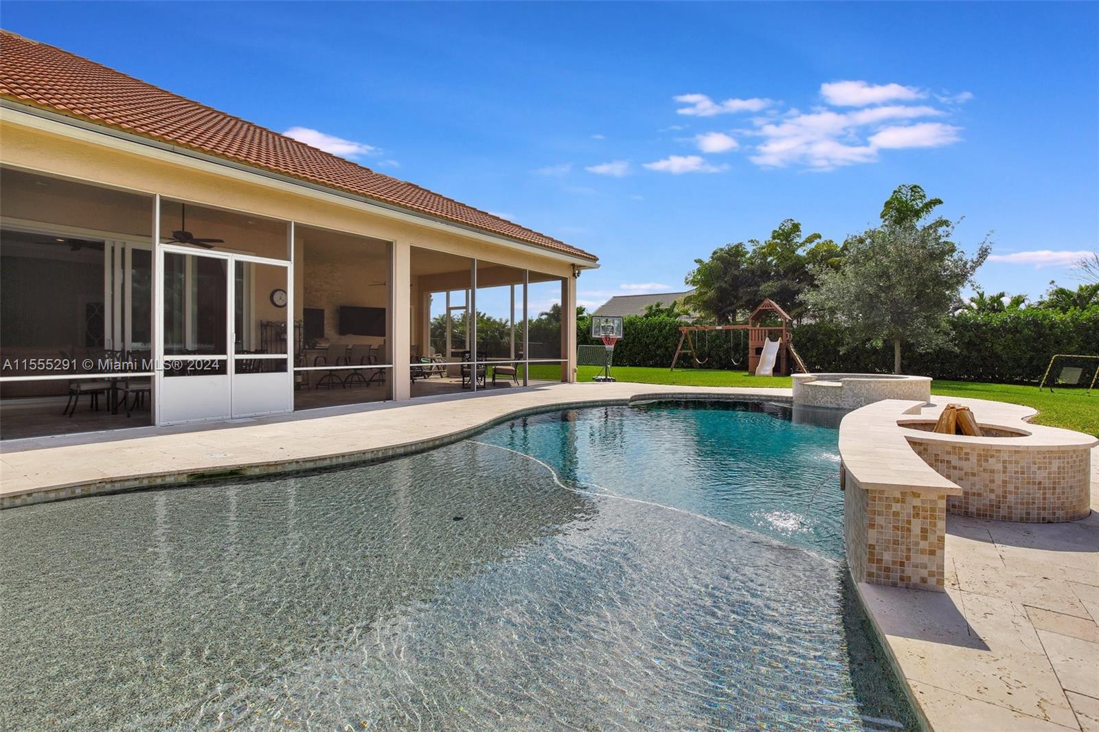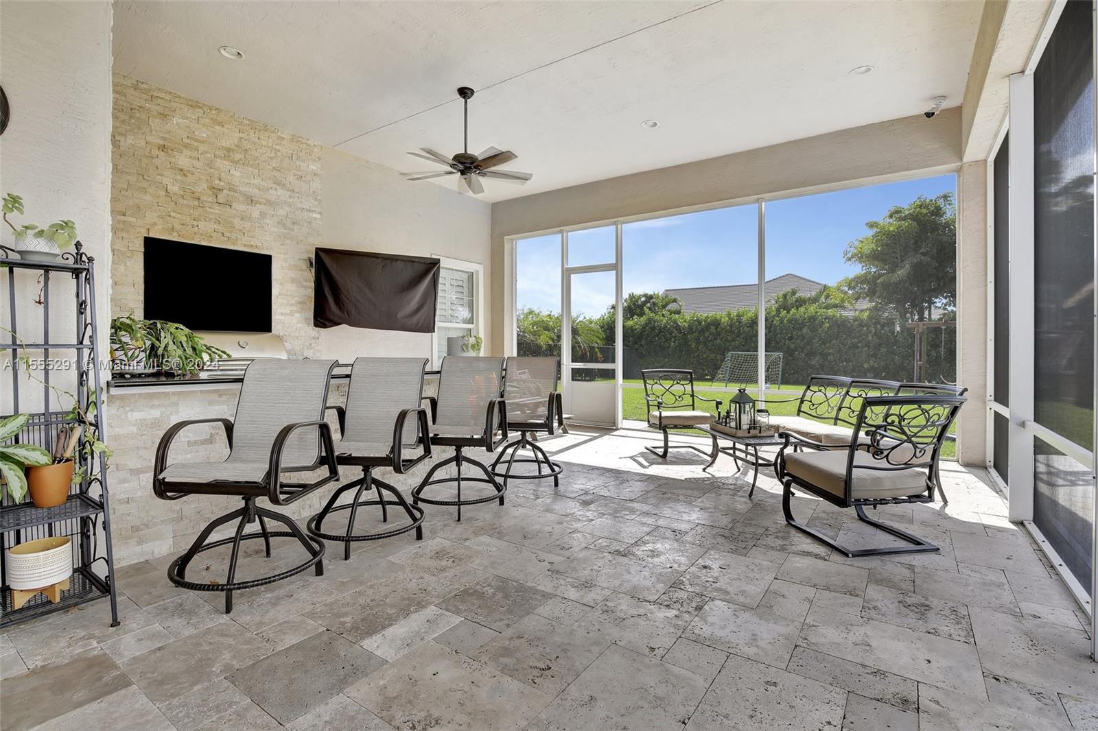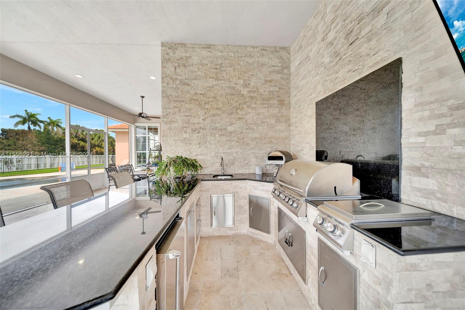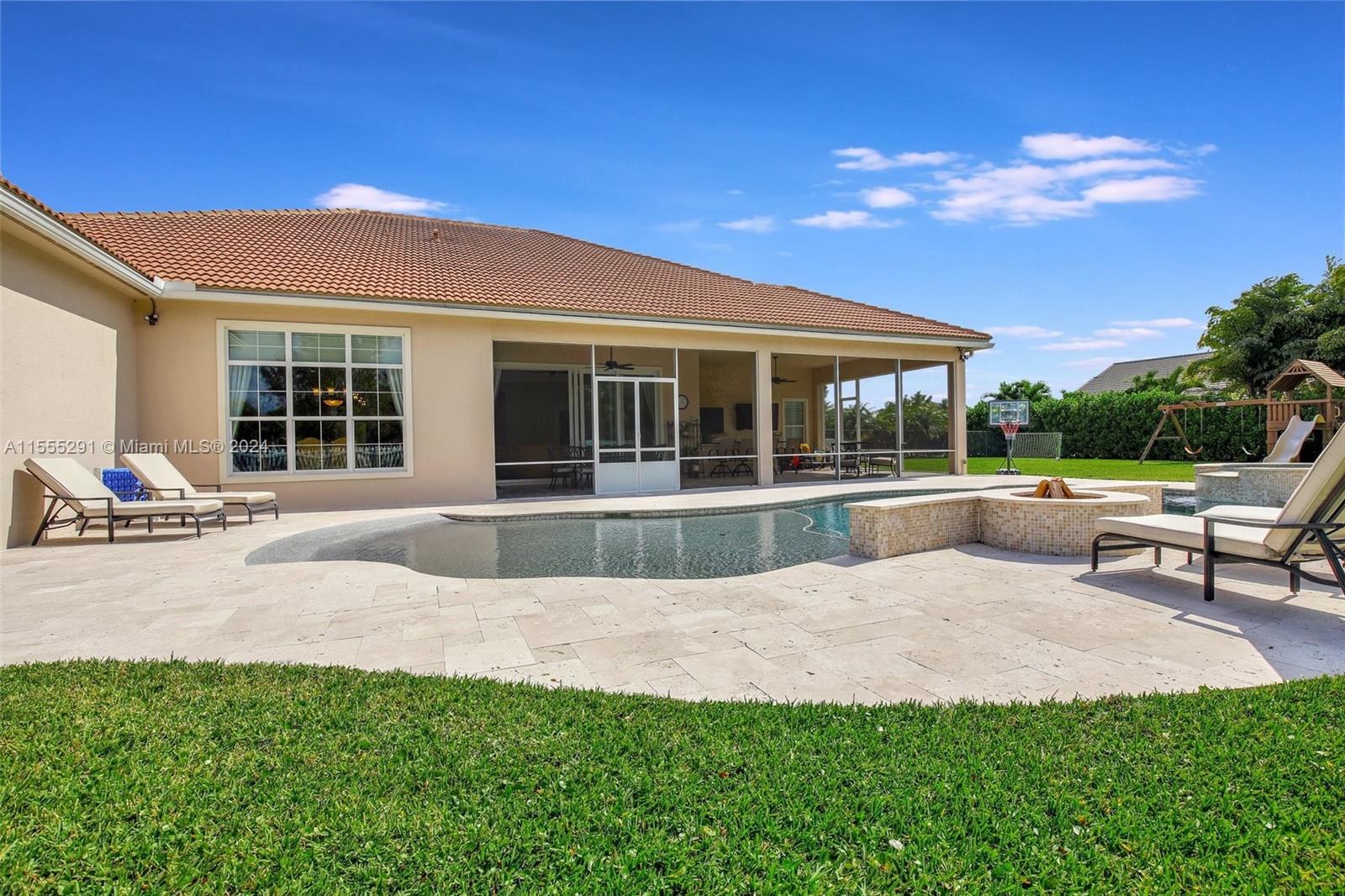 Hawthorne model on .80 acre has 4 bedrooms, office, and flex space is spacious and versatile. Those 4.5 baths definitely make mornings a breeze. Chef's kitchen with granite tops, GE Monogram appliances are a dream for anyone who loves cooking. Ample storage, keeping everything organized. Outdoors is a true oasis with beach entry saltwater heated pool, raised spa surrounded by travertine. Screened patio with an outdoor kitchen is perfect for enjoying year-round. Hurricane impact windows; dedicated power outlet for a generator provides peace of mind during storm season. HOA fee covers amenities of alarm system and lawn care. Living in Sterling Ranch is luxurious and convenient. Fantastic location near major highways and attractions. Home is an incredible opportunity for luxury living.