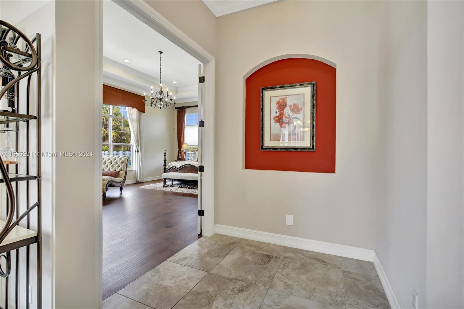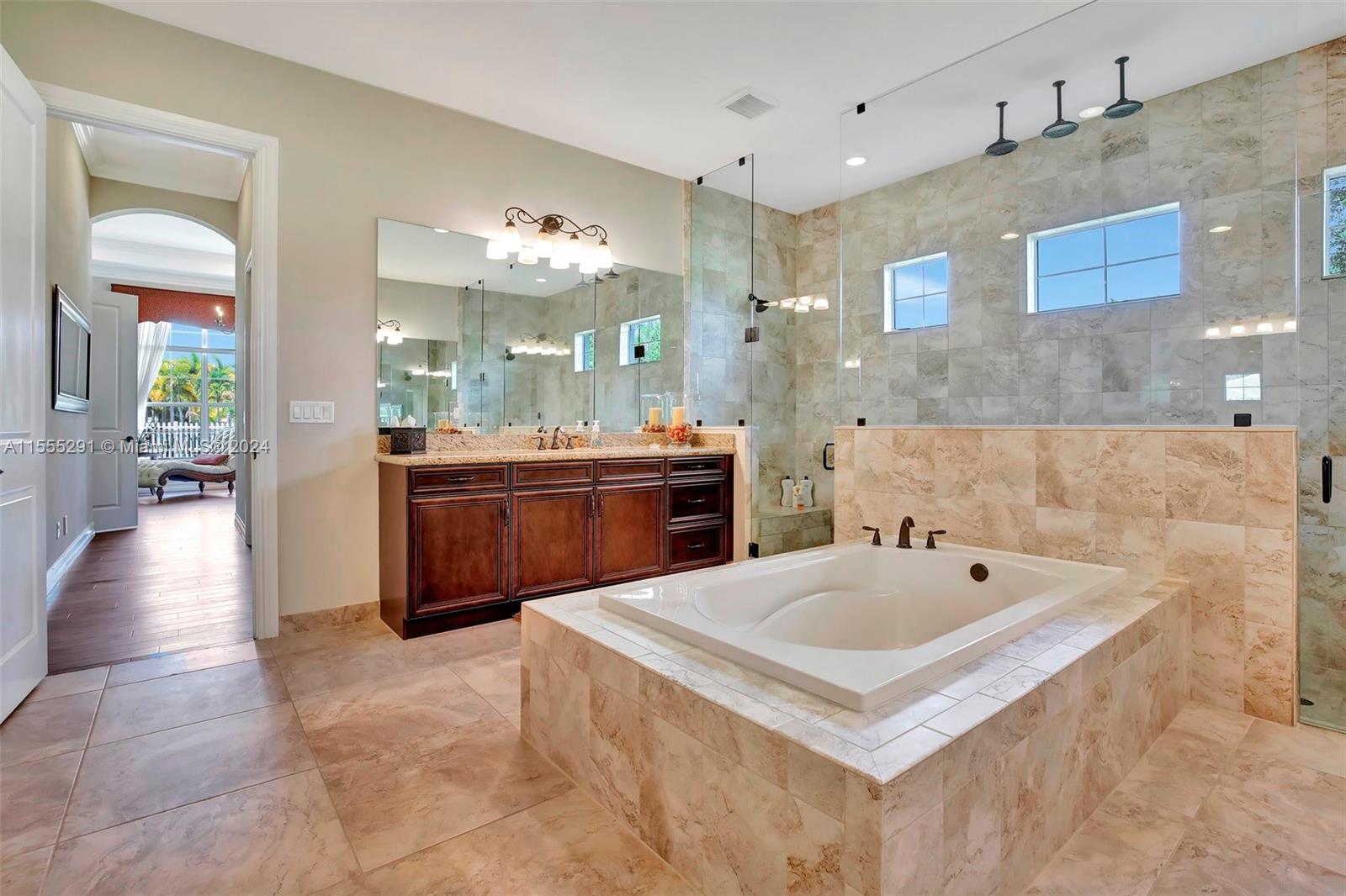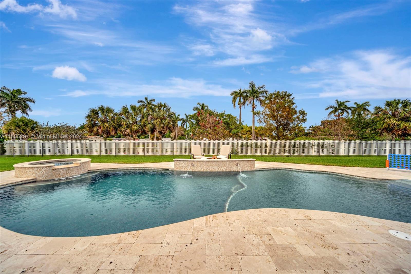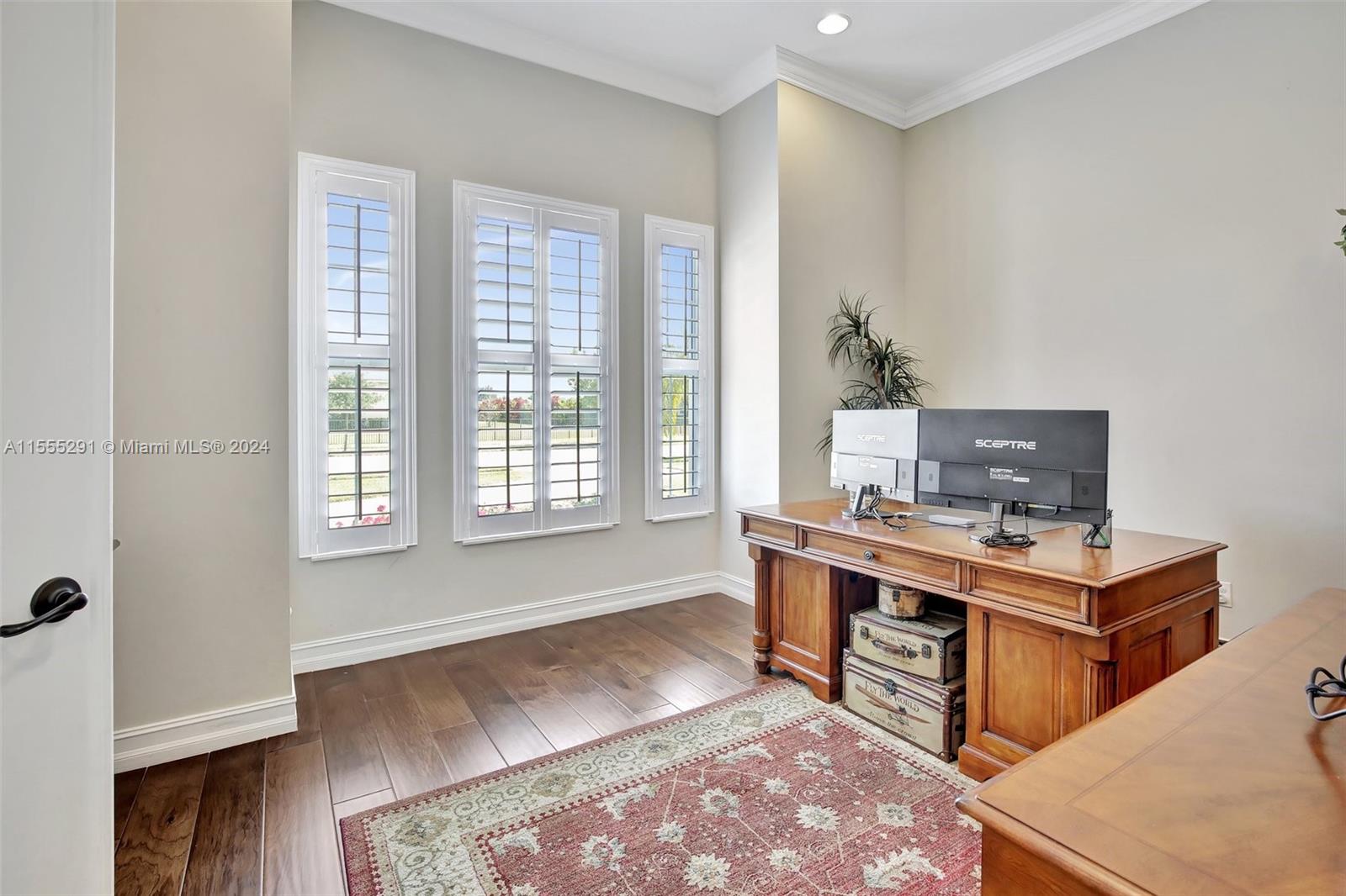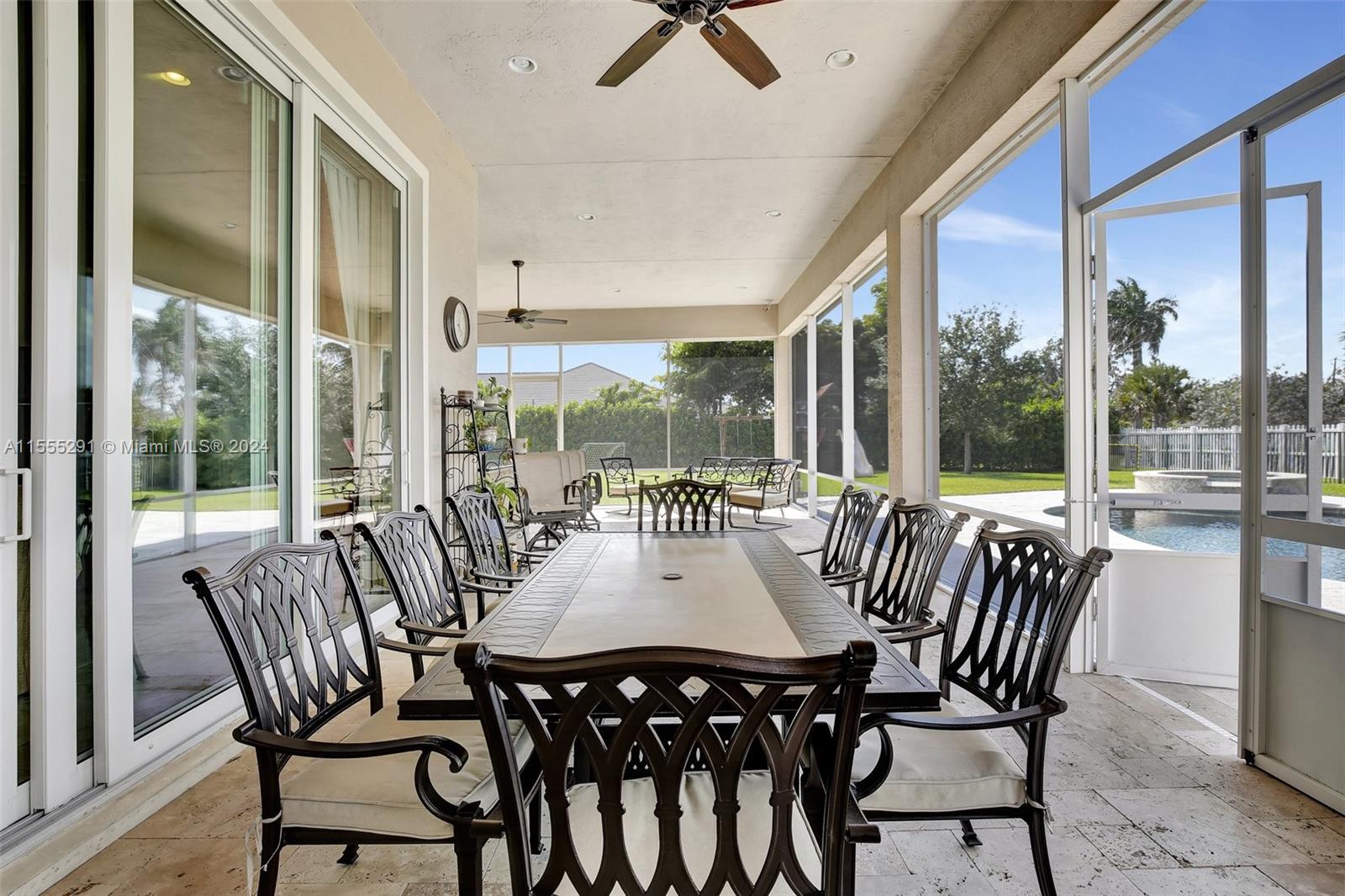 Hawthorne model on .80 acre has 4 bedrooms, office, and flex space is spacious and versatile. Those 4.5 baths definitely make mornings a breeze. Chef's kitchen with granite tops, GE Monogram appliances are a dream for anyone who loves cooking. Ample storage, keeping everything organized. Outdoors is a true oasis with beach entry saltwater heated pool, raised spa surrounded by travertine. Screened patio with an outdoor kitchen is perfect for enjoying year-round. Hurricane impact windows; dedicated power outlet for a generator provides peace of mind during storm season. HOA fee covers amenities of alarm system and lawn care. Living in Sterling Ranch is luxurious and convenient. Fantastic location near major highways and attractions. Home is an incredible opportunity for luxury living.