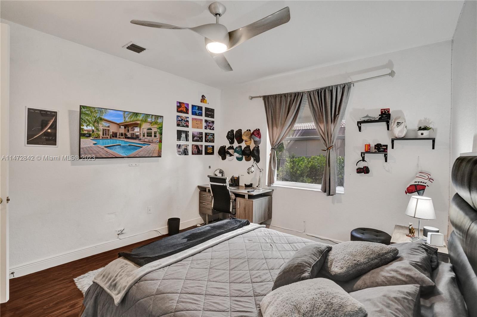 Exquisite lake home situated in the prestigious gated community of Long Lake Estates. Breathtaking views of the lake where you can enjoy waterskiing, this 5 bedroom 4.5 bath plus a dedicated office space complete with stylish built-in furniture, showcases soaring tray ceilings throughout the living spaces, elegant marble floors, situated in an oversized lot. This beautiful turnkey home offers a host of luxury elements including a grand entrance, a newly renovated kitchen with white quartz countertops and high-end stainless-steel appliances, a luxurious main bedroom, impact-resistant windows and doors, and a three-car garage. Outdoor Florida living with a resort style heated pool. The community features a tennis court and basketball court. ONLY NAVIGABLE LAKE/CANAL IN TOWN.