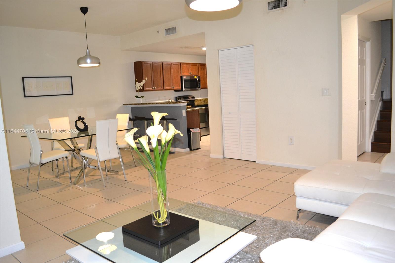 Gorgeous 2 story apartment, 2 bedrooms, 2 1/2 bath. Spacious living and dining room with eat-in kitchen, S.S appliances, granite countertop, tiled in the first floor and laminate wood floor in the second floor, washer and dryer in unit.One Assigned. Uncovered Parking Space assigned and plenty visitor spaces. Community pool and clubhouse which include: Gym,pool,barbecue and much more. Centrally located. Close to A+ schools.