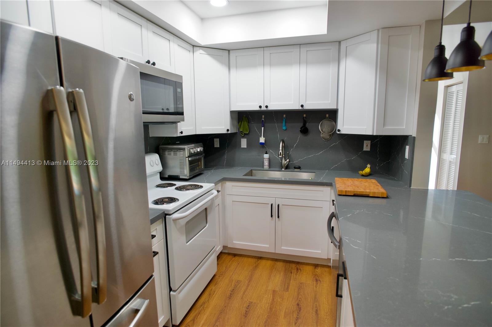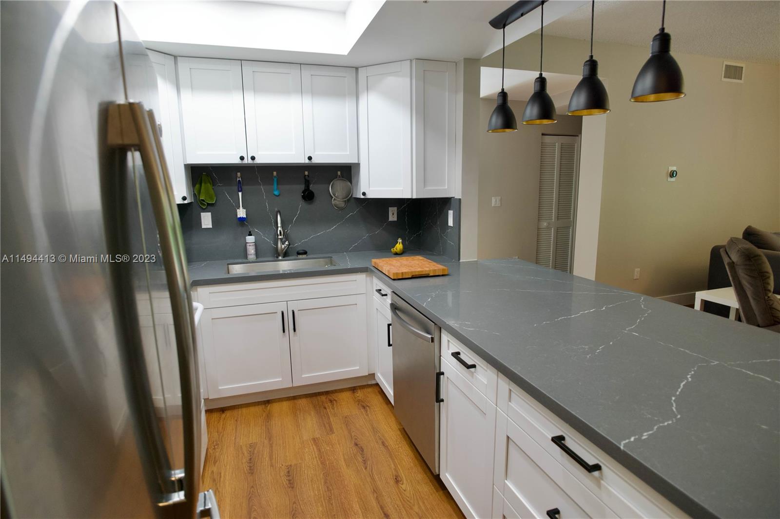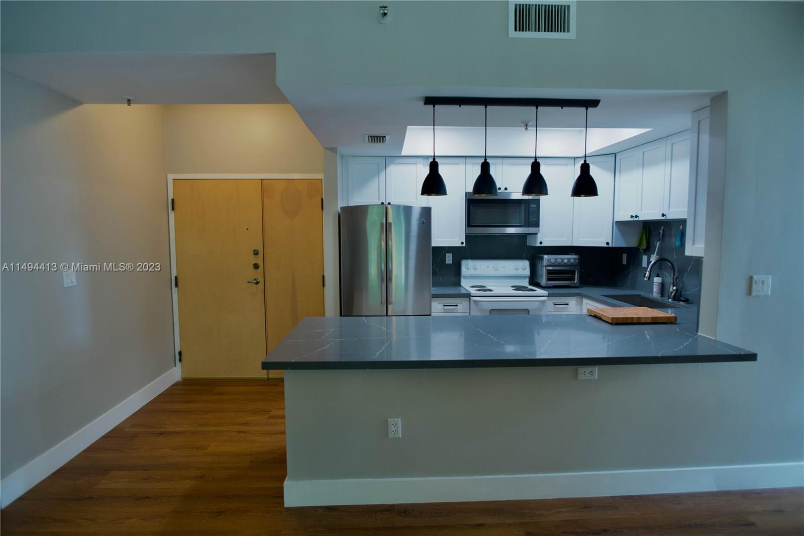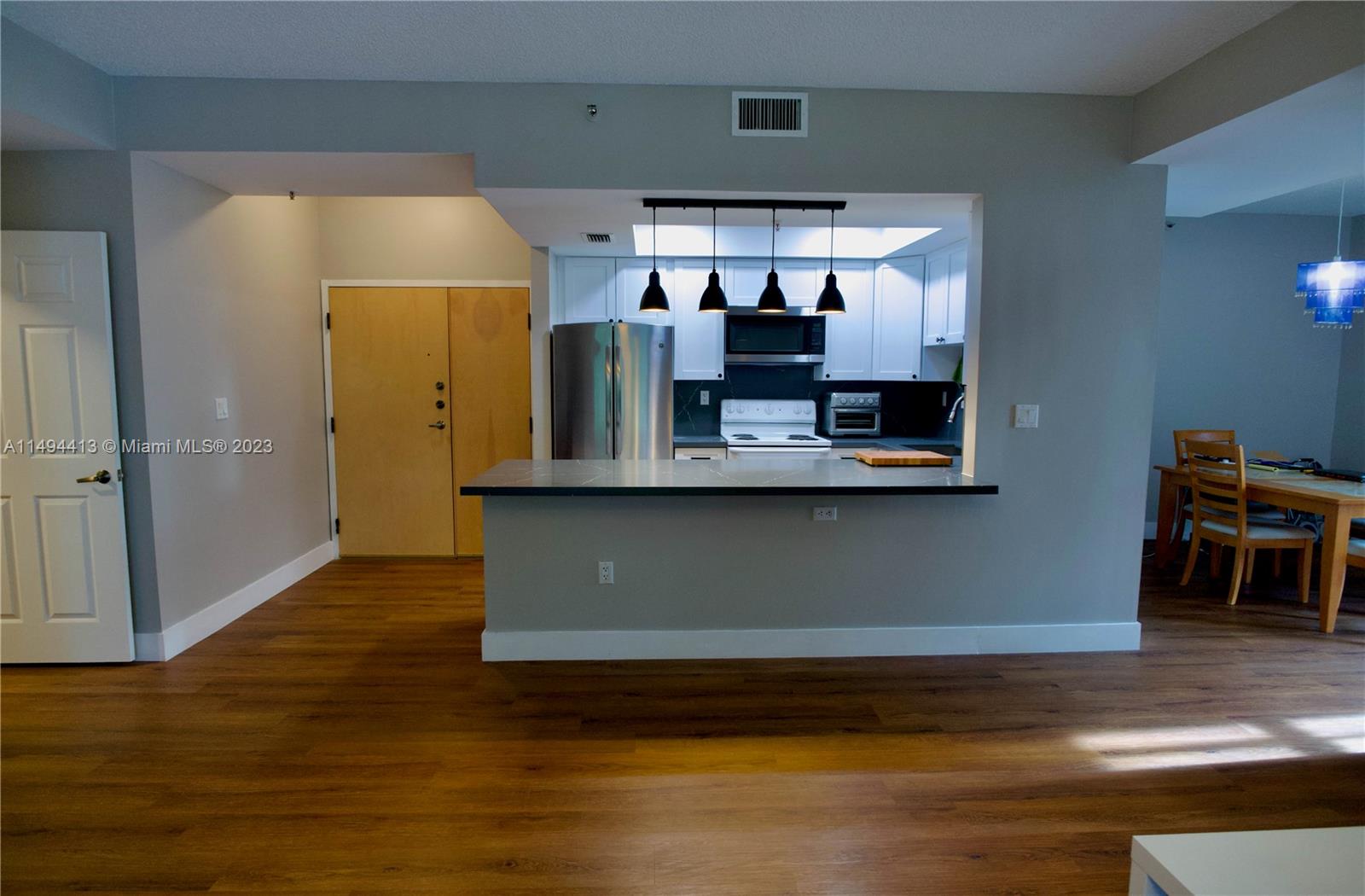 Beautiful 3/2 apartment (see floor plan picture) in Doral with kitchen Quartz top and waterproof cork floors, most appliances like new, Tankless water heater included , Washer and Dryer inside the unit. Screened terrace 15x9.6. Located at Village of Doral Oaks. Elevators, secure phone entry, guard at site. Intercom video in Lobby secured. In club courts, gym, clubhouse, business center, playhouse, 2 large pools. Apartment is larger than tax-roll. Den was converted into a 3rd room.