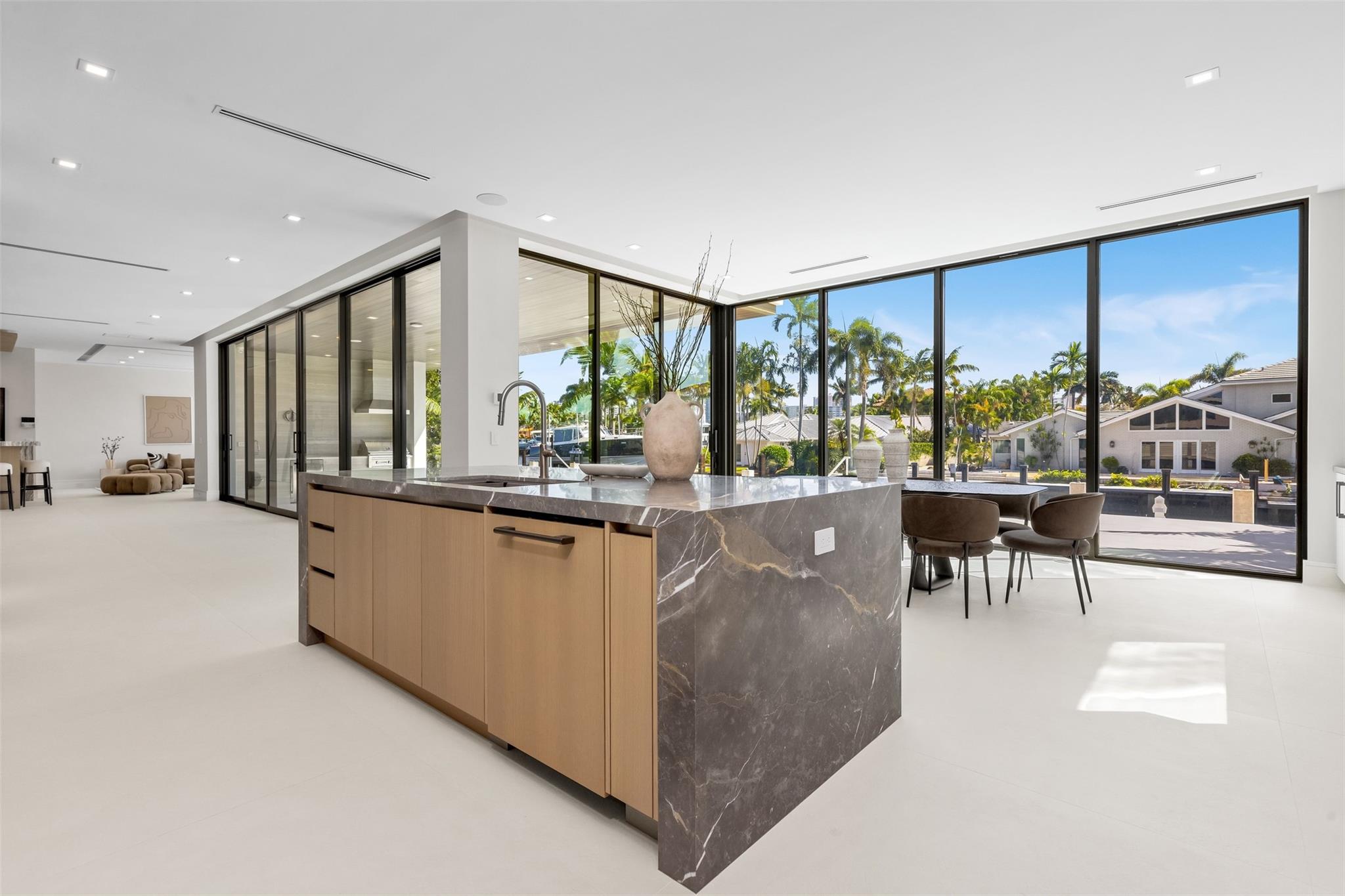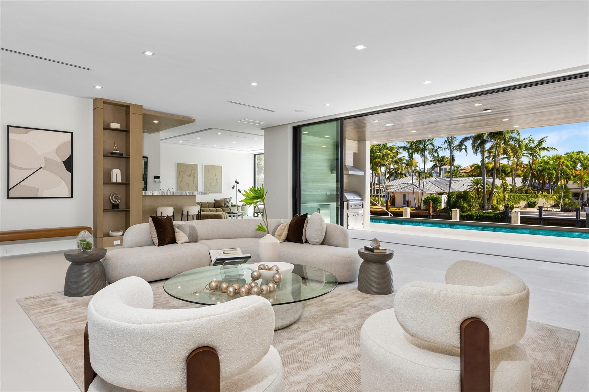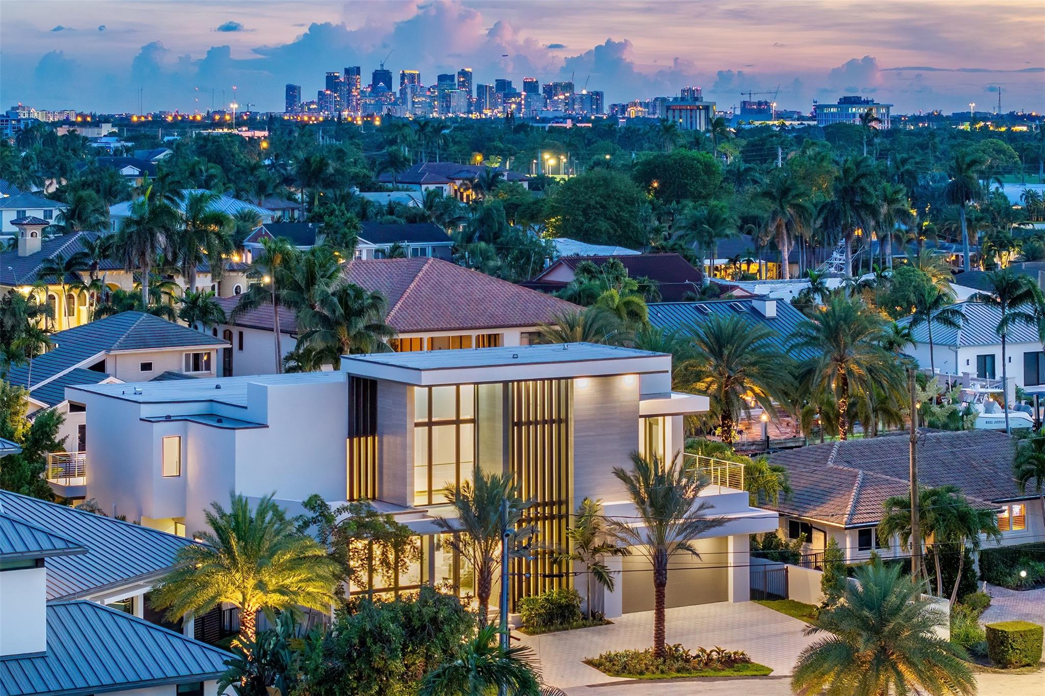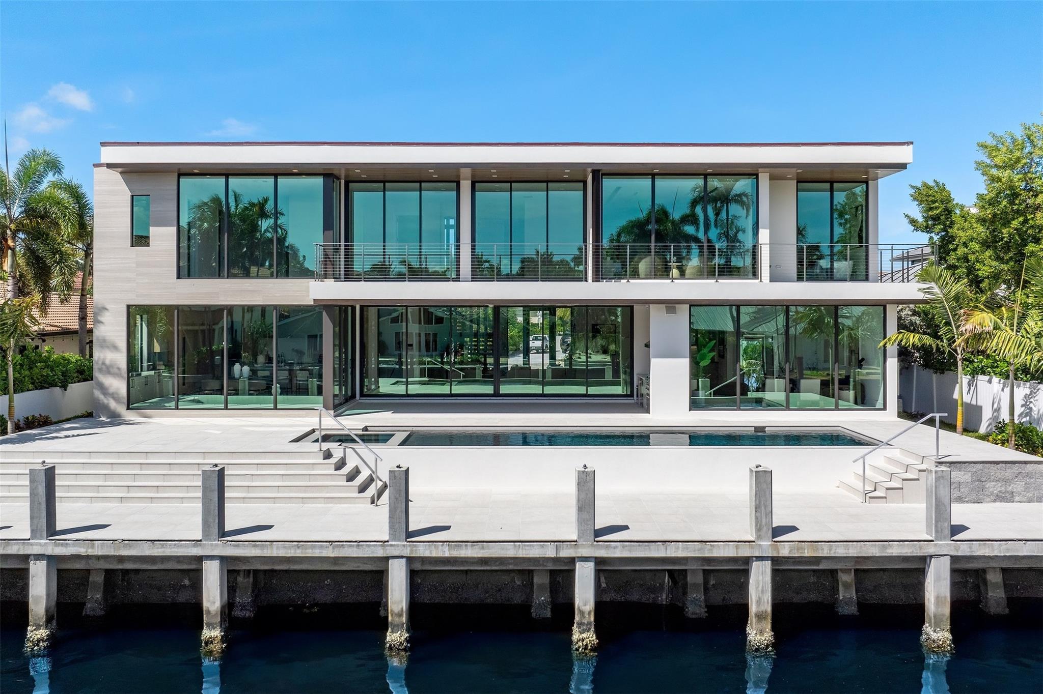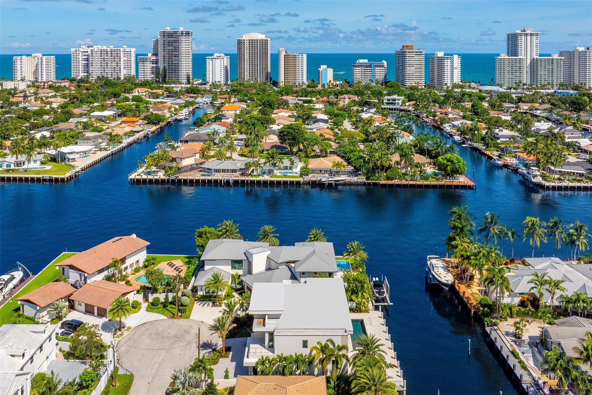 3070 NE 40th Court in Coral Ridge is a luxurious, new construction estate featuring 5,581 sq ft under air, 5 bedrooms, a home office, club room, Chef's kitchen with a Butler's pantry and 5.5 bathrooms, including a cabana bath. Perfectly located one lot off the point to maximize both views and privacy and equipped with a NEW 90 foot seawall and concrete dock. Located across the street from Coral Ridge Country Club, minutes from the beach, Pine Crest and shopping; the property's convenient location, spacious interiors, thoughtful floor plan, and modern amenities all combine to result in one of Coral Ridge's most prestigious residences.