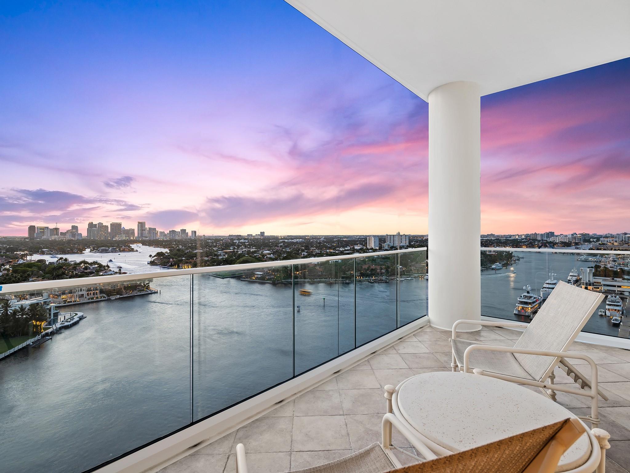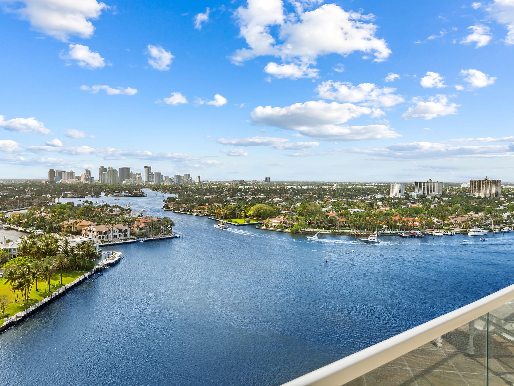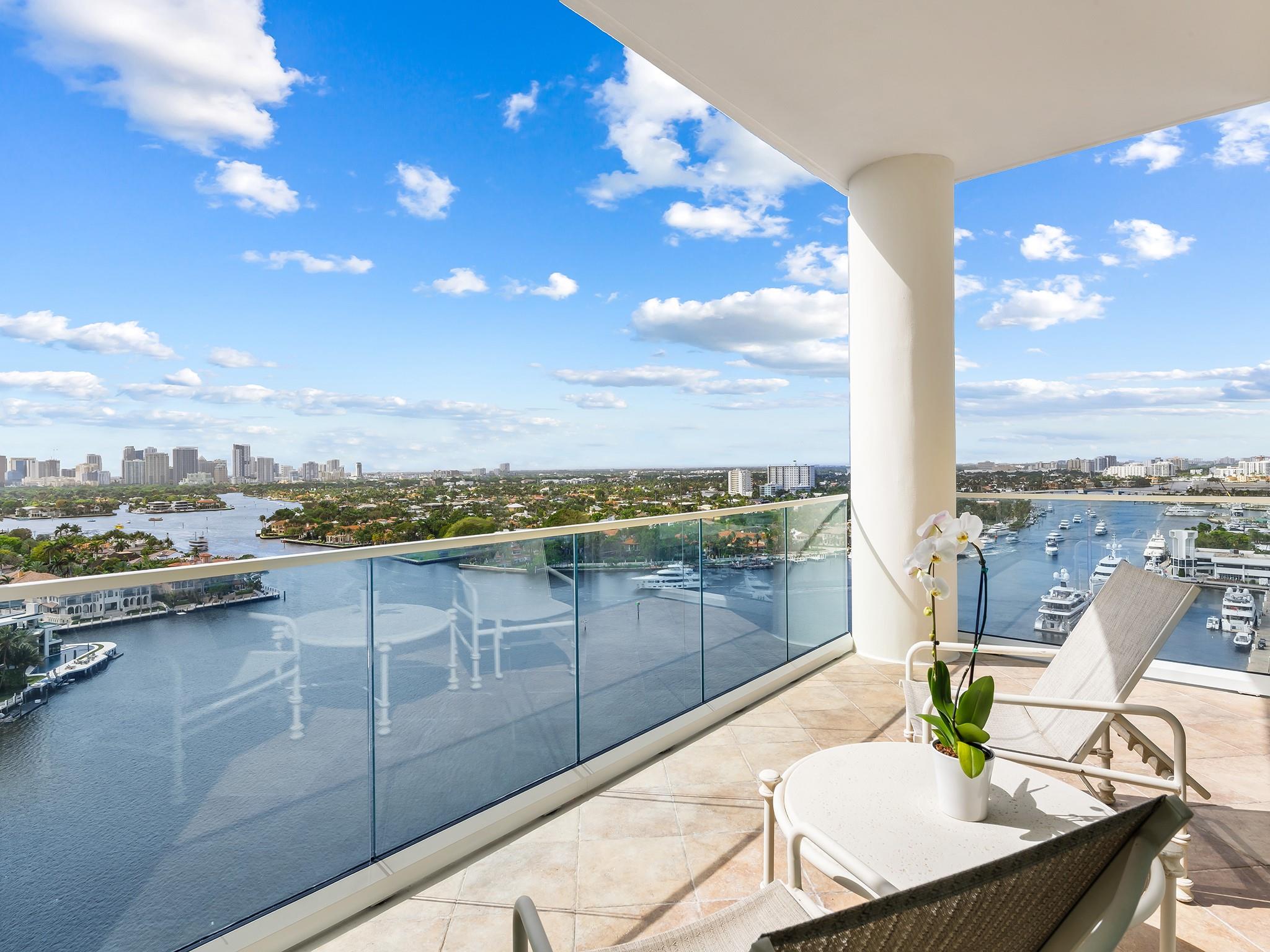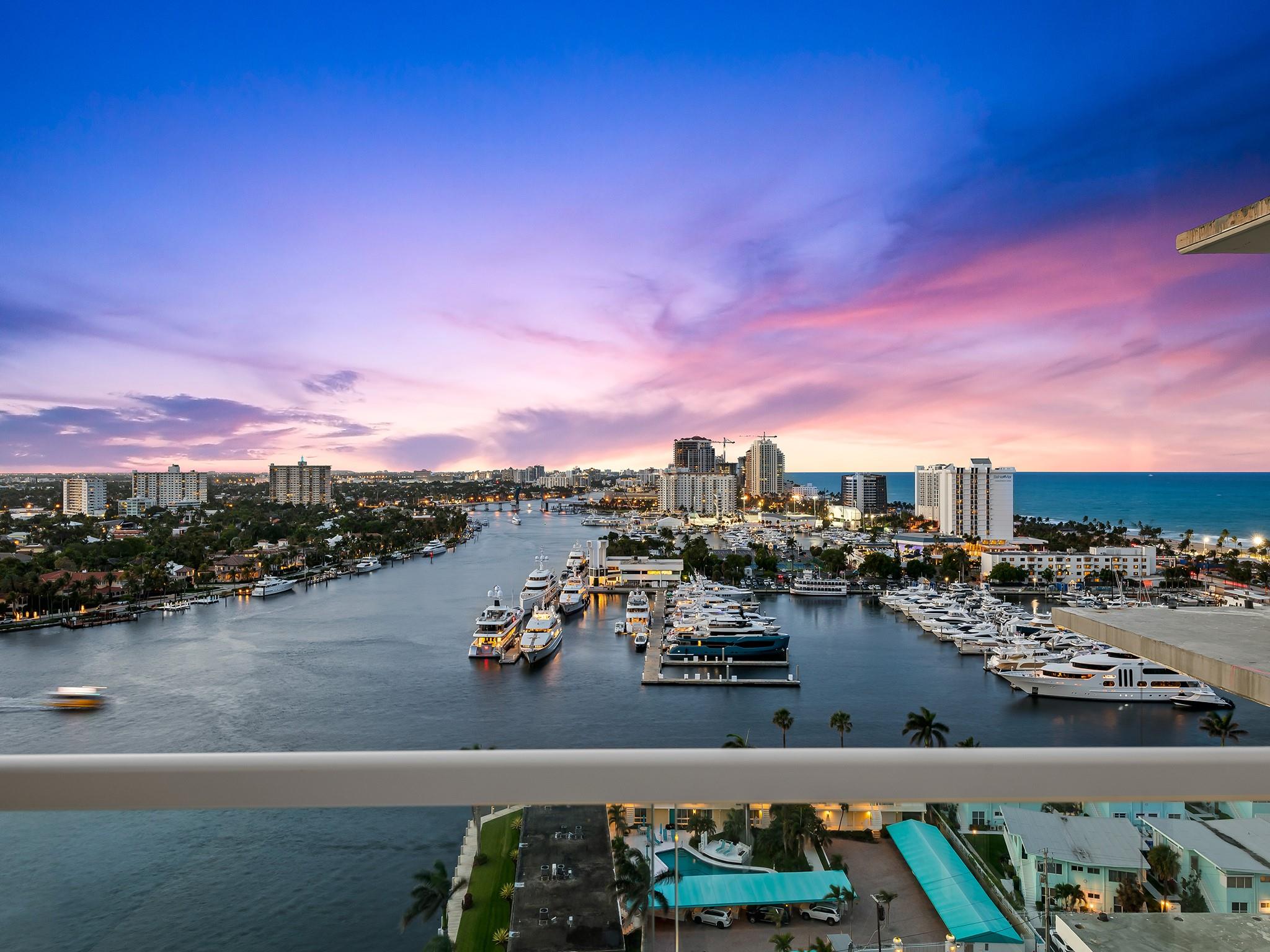 Savor the most incredible views from this direct Intracoastal Penthouse waterfront condo- exclusive Harborage Place! Spectacular views of the Intracoastal, Downtown Fort Lauderdale Skyline & Ocean are found in this 3 bedroom / 3 full / 1 half bath condo. Enjoy glorious sunset views from your spacious balconies! A double door foyer entry leads to over 3400 SF of living space with 12.5' ceilings, formal dining, grand living room with marble floors throughout main living areas & hardwood floors in Primary bedroom. The building has gone under extensive renovation w/new glass railings on all balconies & concrete restoration. Unit offers 2 parking spaces and a substantial storage room. Impact windows & doors. Semi-Private elevator /3 units per floor. Fitness center, heated pool, & 24/7 doorman