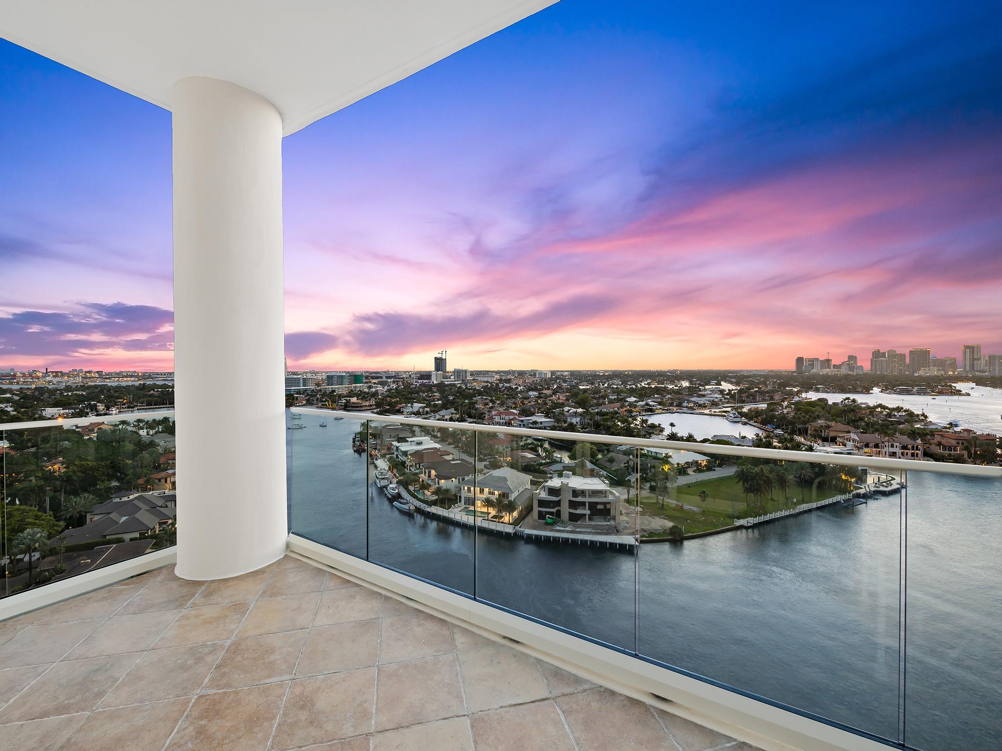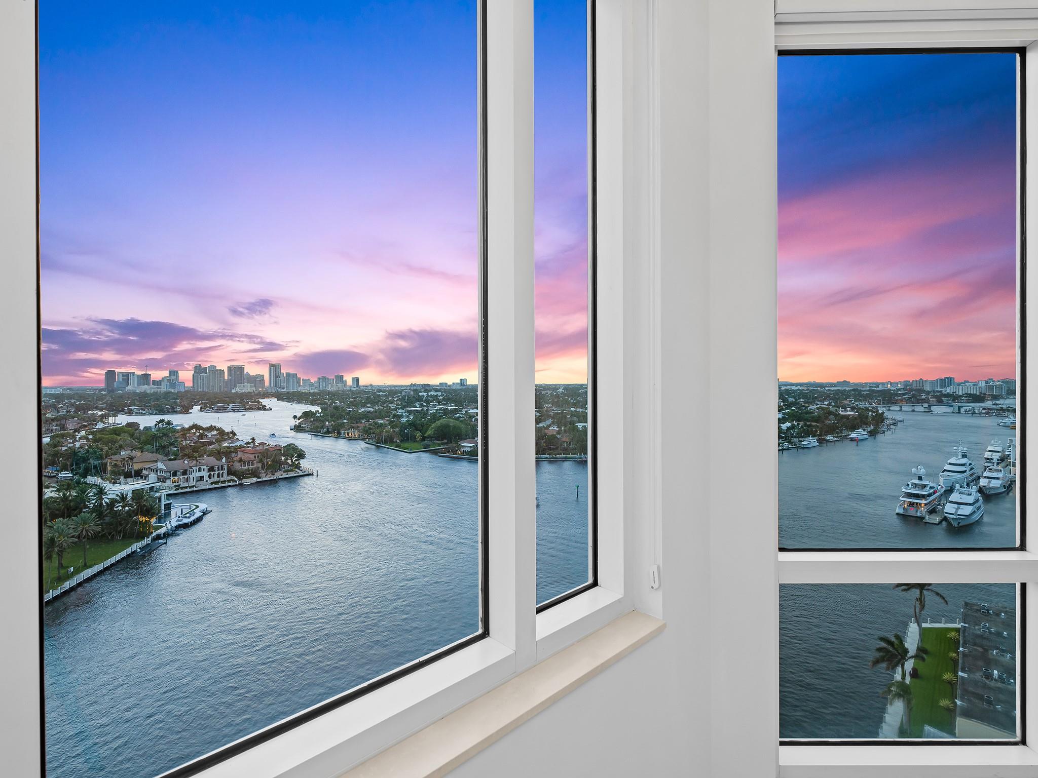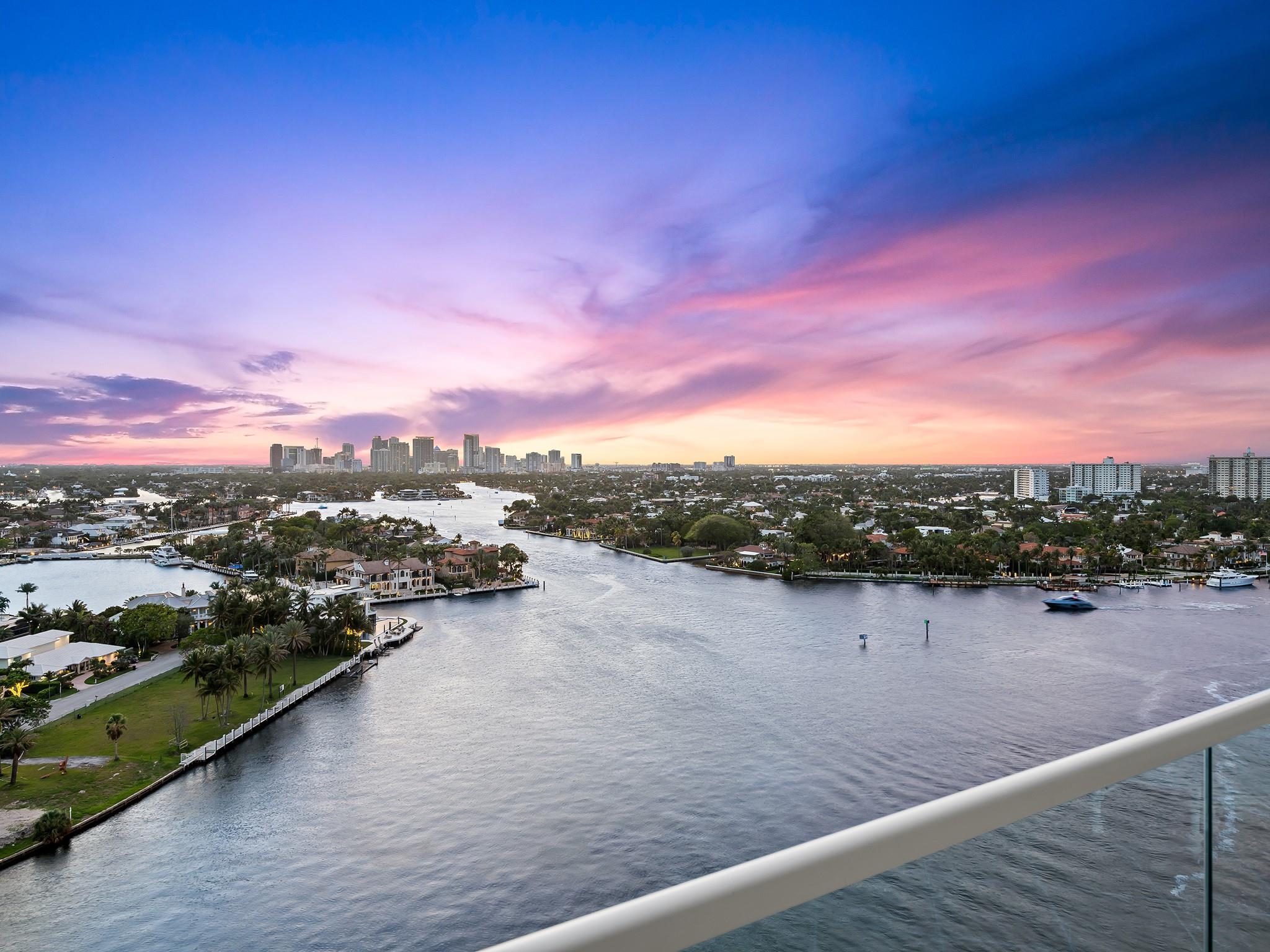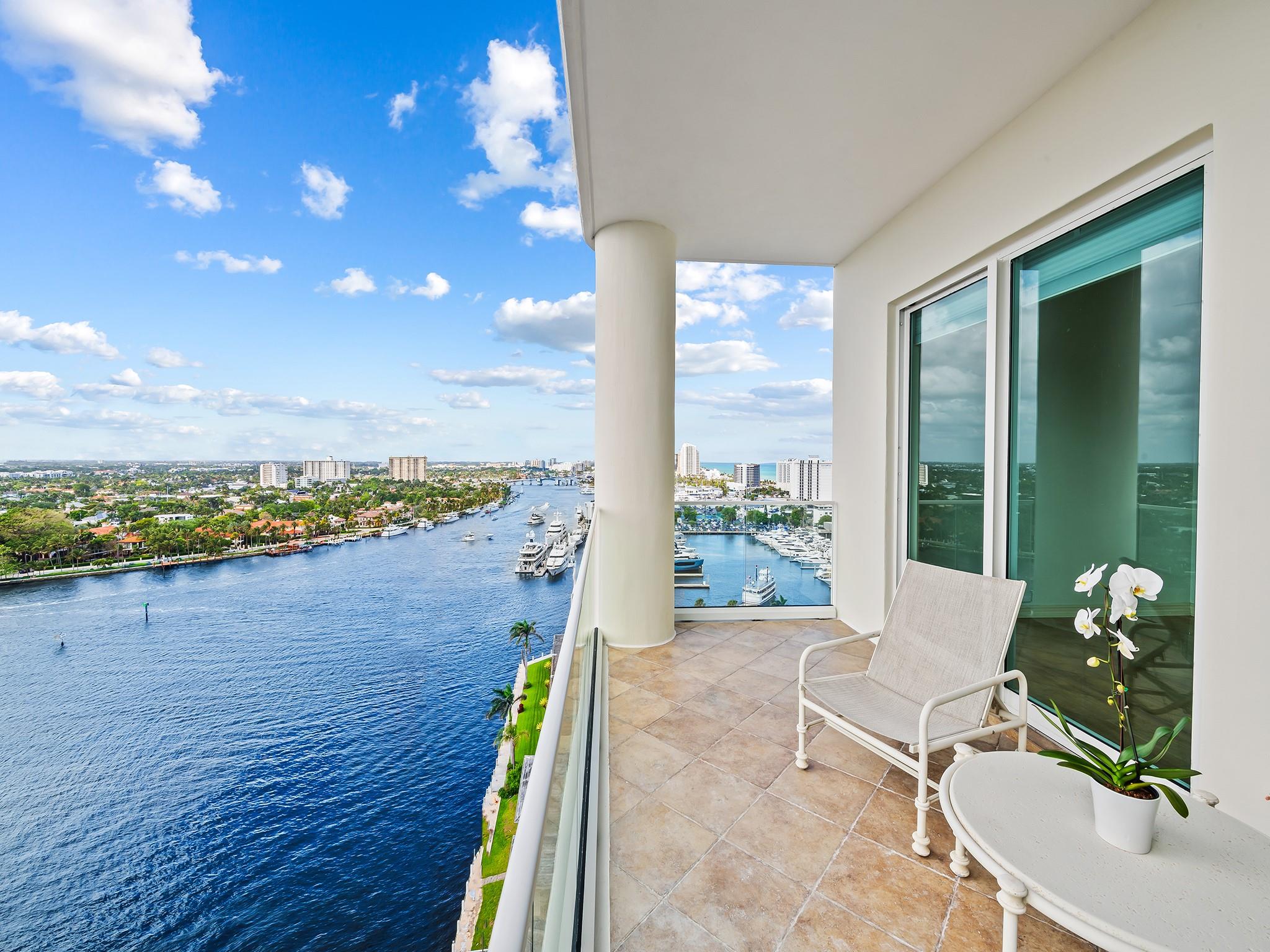 Savor the most incredible views from this direct Intracoastal Penthouse waterfront condo- exclusive Harborage Place! Spectacular views of the Intracoastal, Downtown Fort Lauderdale Skyline & Ocean are found in this 3 bedroom / 3 full / 1 half bath condo. Enjoy glorious sunset views from your spacious balconies! A double door foyer entry leads to over 3400 SF of living space with 12.5' ceilings, formal dining, grand living room with marble floors throughout main living areas & hardwood floors in Primary bedroom. The building has gone under extensive renovation w/new glass railings on all balconies & concrete restoration. Unit offers 2 parking spaces and a substantial storage room. Impact windows & doors. Semi-Private elevator /3 units per floor. Fitness center, heated pool, & 24/7 doorman