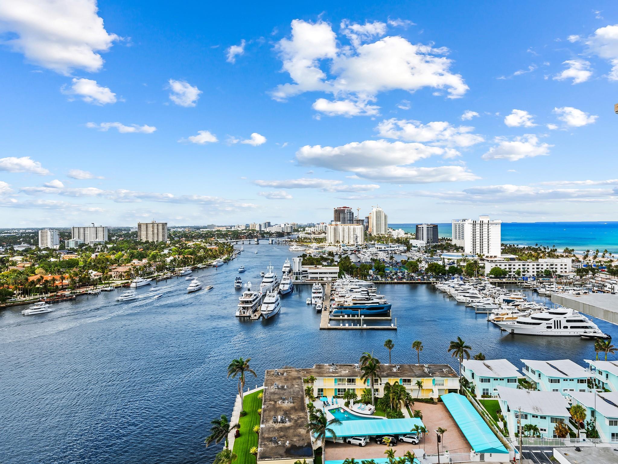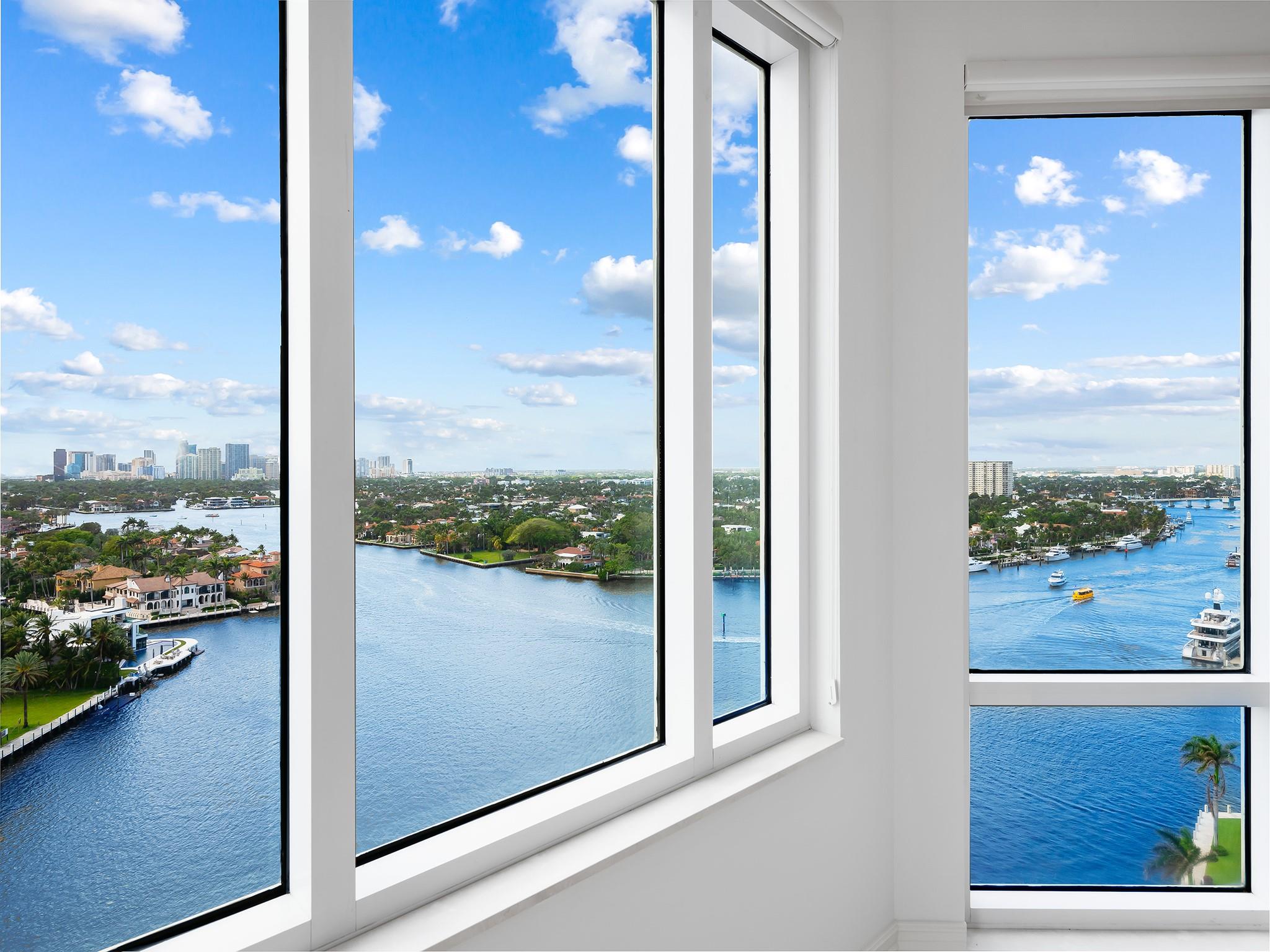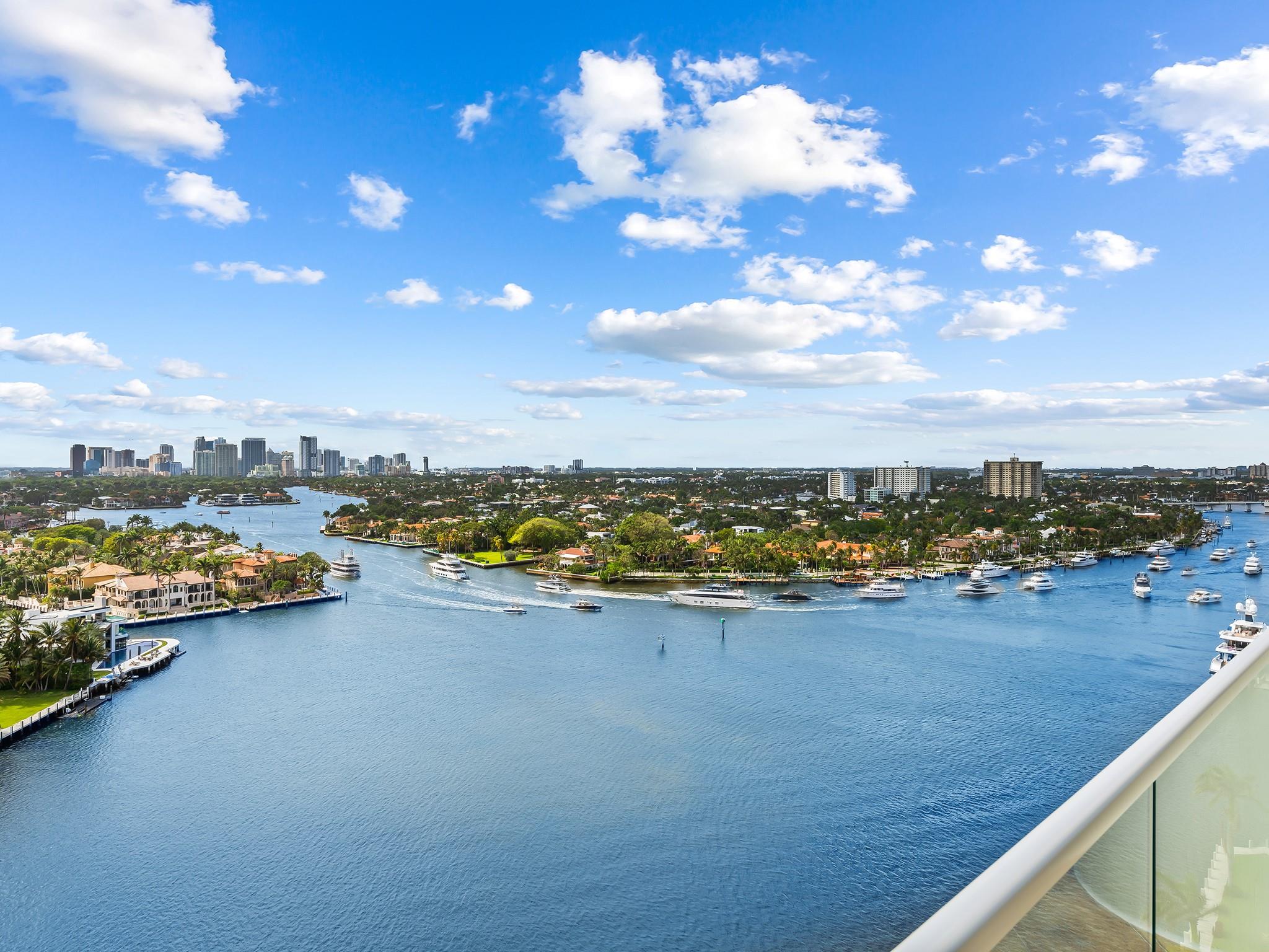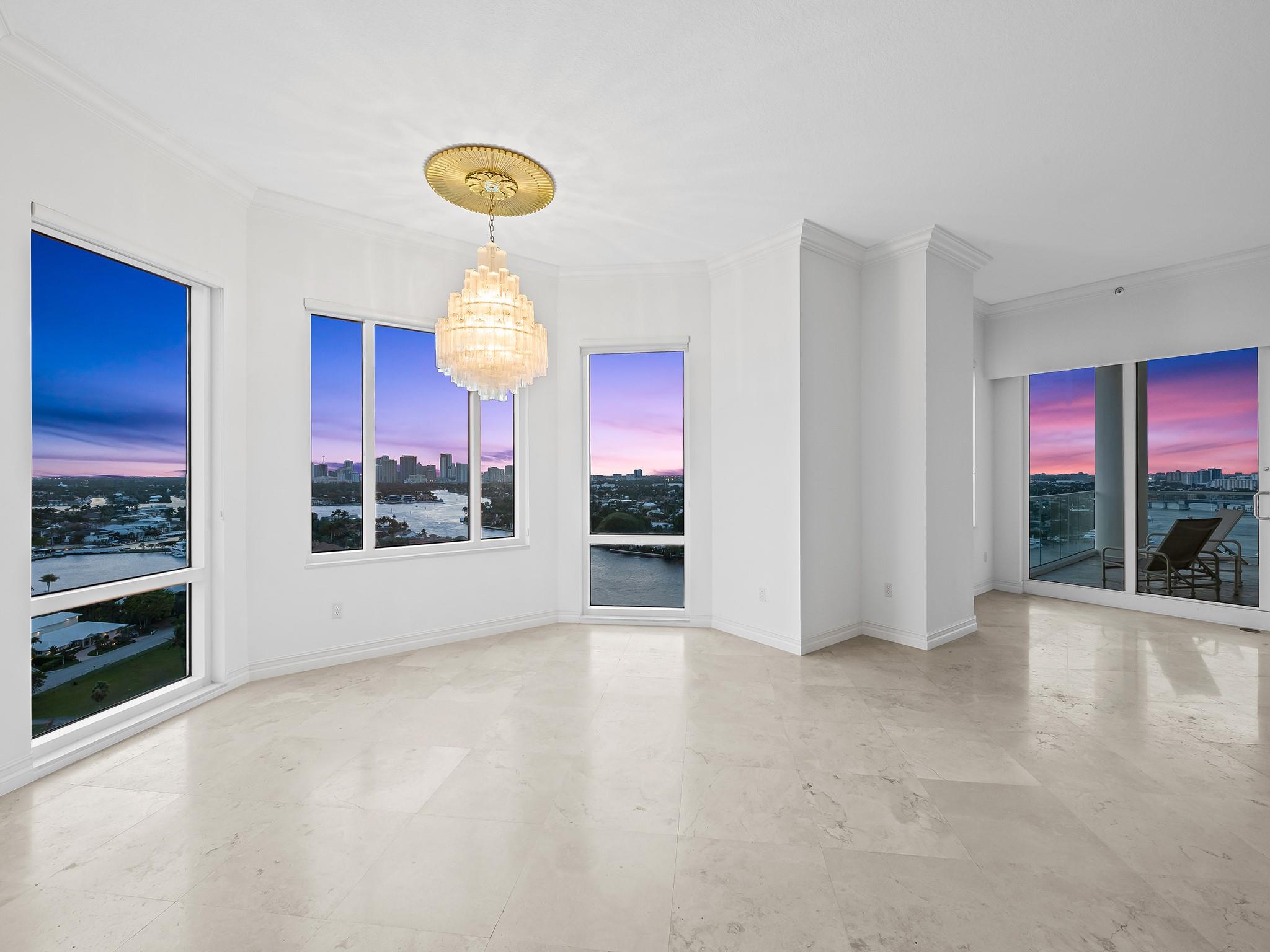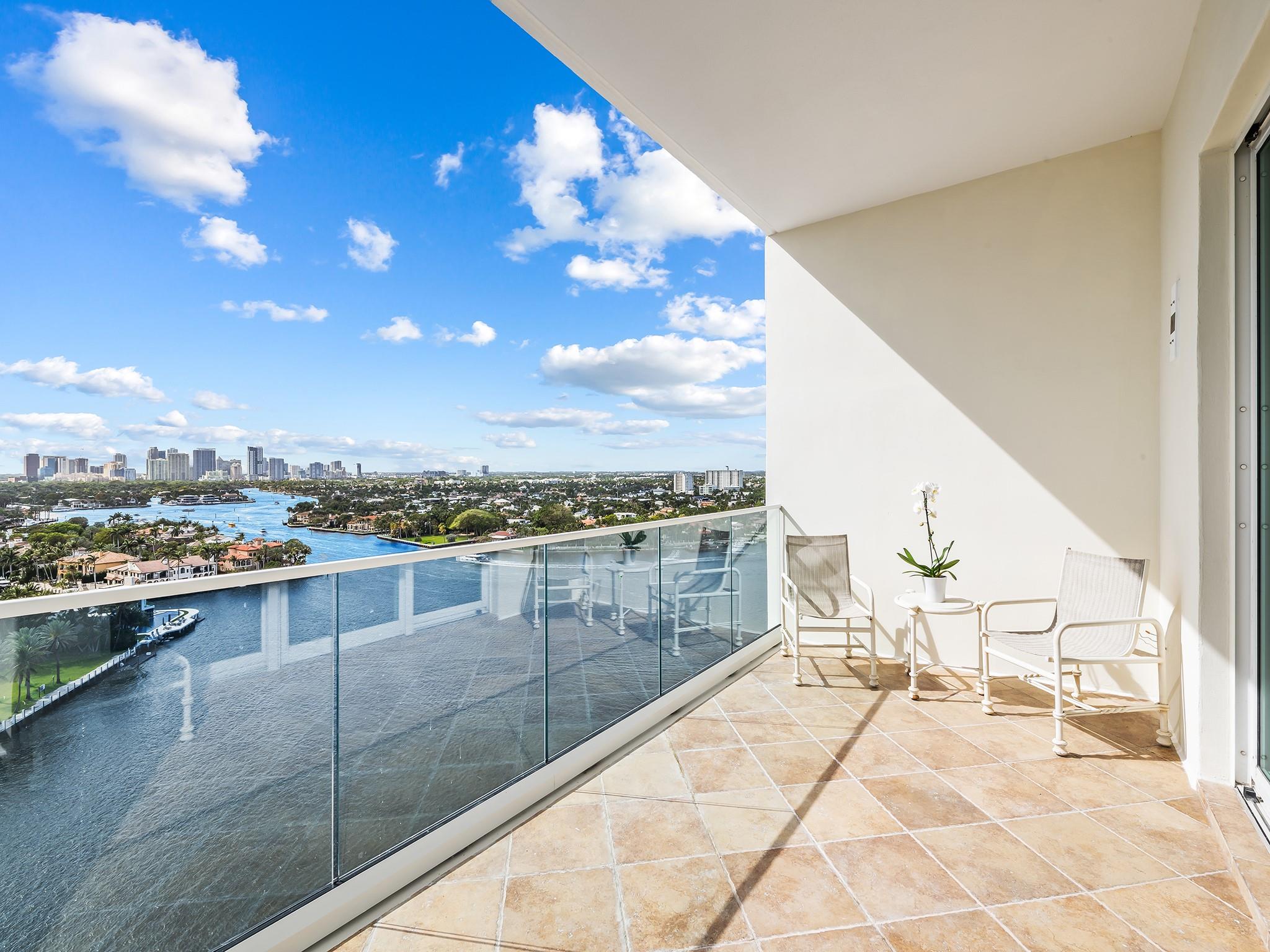 Savor the most incredible views from this direct Intracoastal Penthouse waterfront condo- exclusive Harborage Place! Spectacular views of the Intracoastal, Downtown Fort Lauderdale Skyline & Ocean are found in this 3 bedroom / 3 full / 1 half bath condo. Enjoy glorious sunset views from your spacious balconies! A double door foyer entry leads to over 3400 SF of living space with 12.5' ceilings, formal dining, grand living room with marble floors throughout main living areas & hardwood floors in Primary bedroom. The building has gone under extensive renovation w/new glass railings on all balconies & concrete restoration. Unit offers 2 parking spaces and a substantial storage room. Impact windows & doors. Semi-Private elevator /3 units per floor. Fitness center, heated pool, & 24/7 doorman