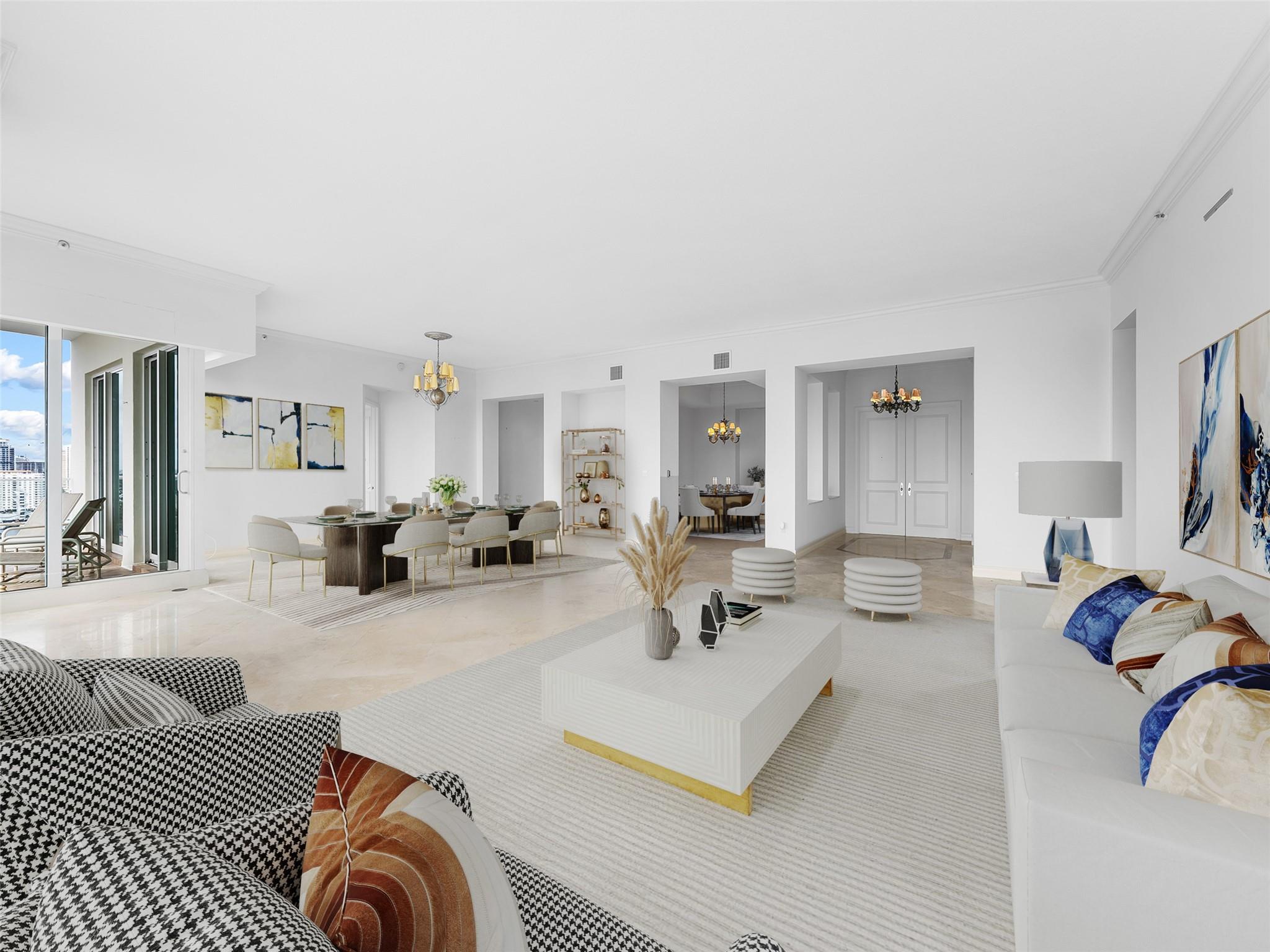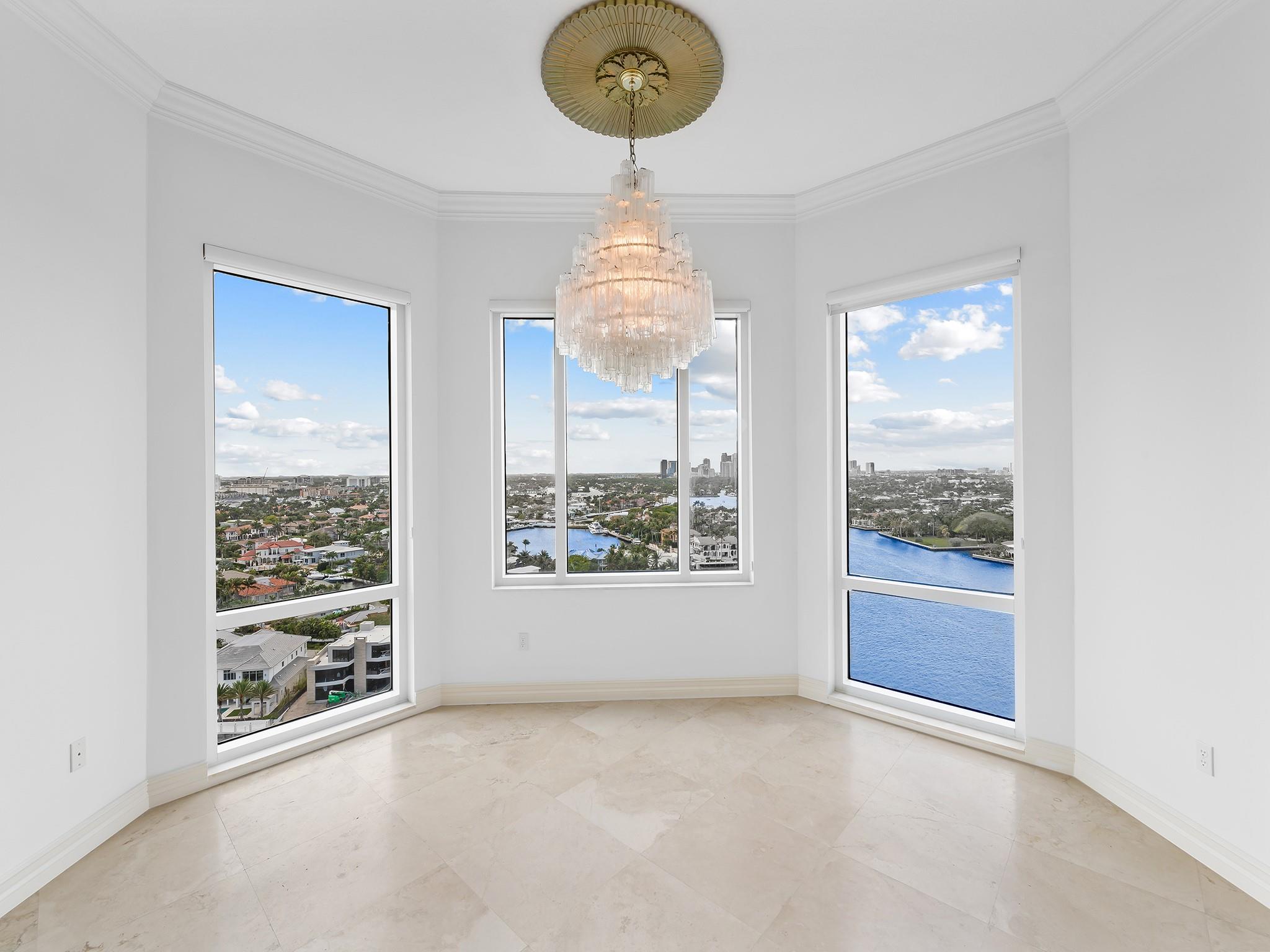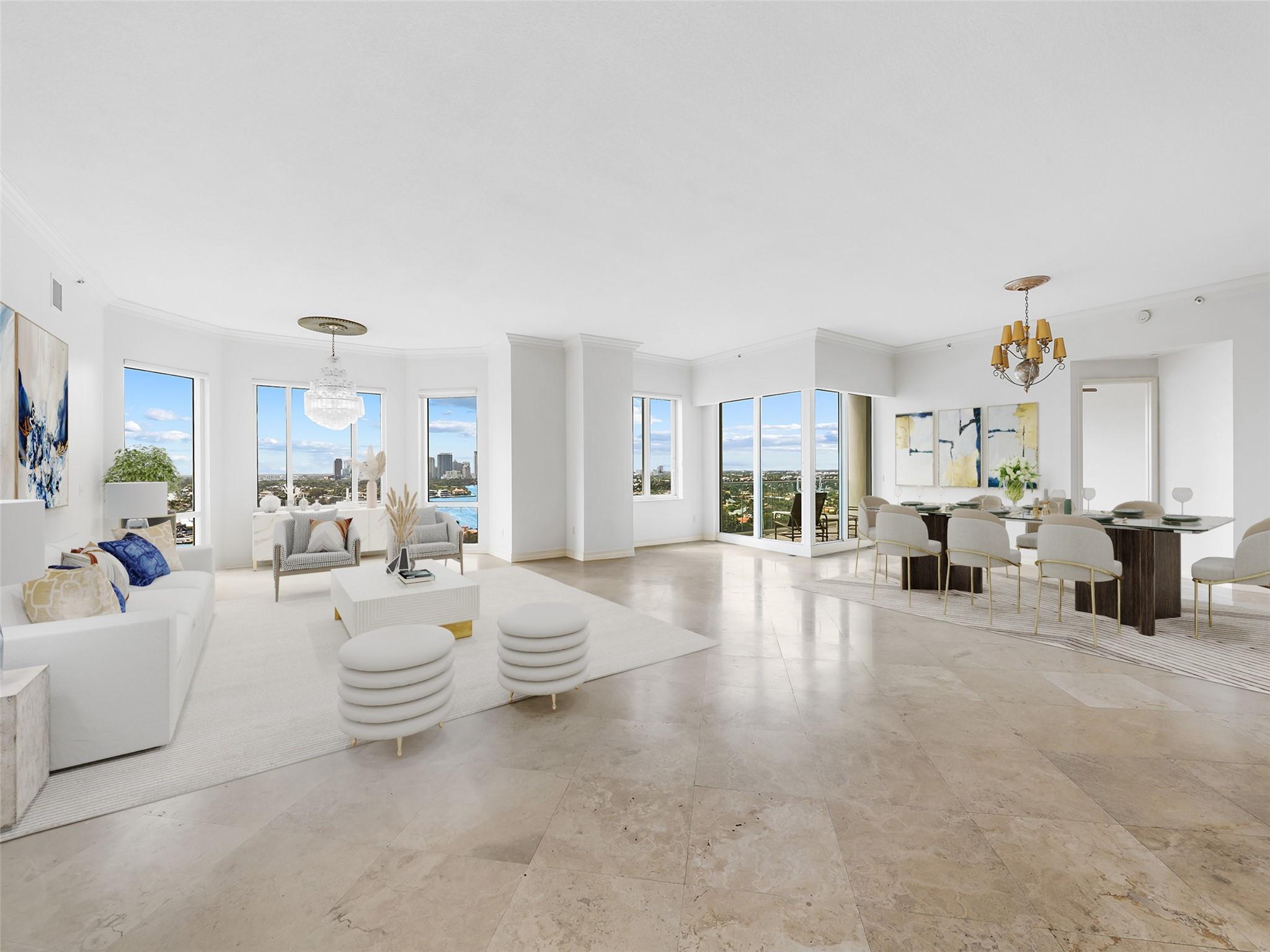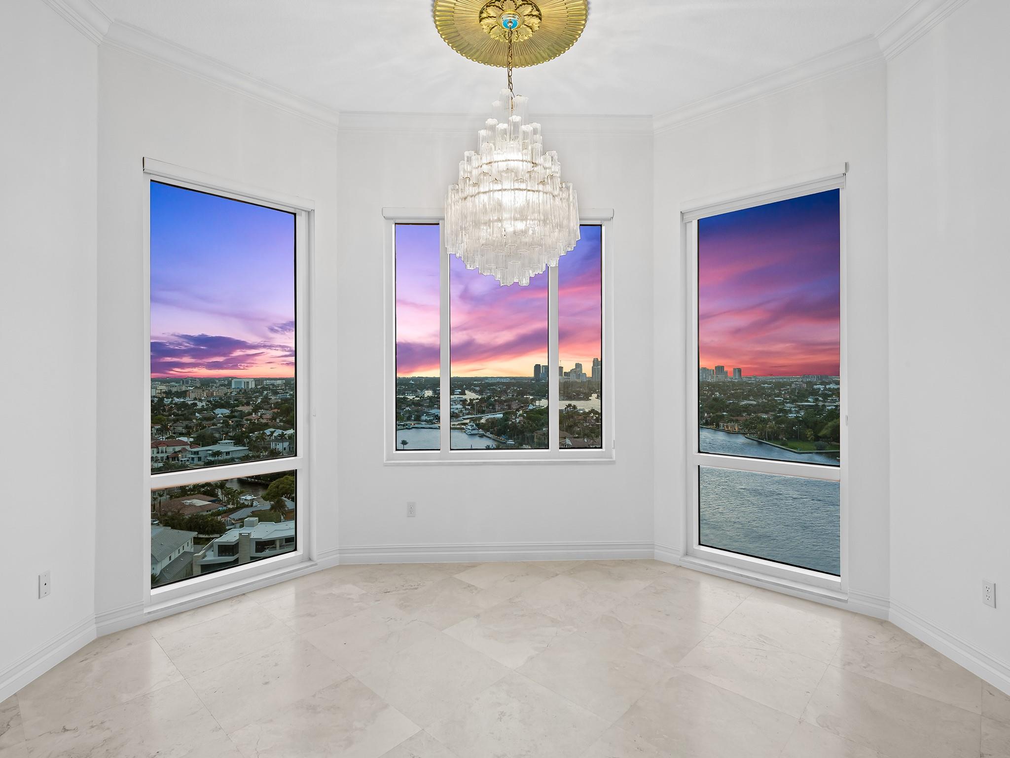 Savor the most incredible views from this direct Intracoastal Penthouse waterfront condo- exclusive Harborage Place! Spectacular views of the Intracoastal, Downtown Fort Lauderdale Skyline & Ocean are found in this 3 bedroom / 3 full / 1 half bath condo. Enjoy glorious sunset views from your spacious balconies! A double door foyer entry leads to over 3400 SF of living space with 12.5' ceilings, formal dining, grand living room with marble floors throughout main living areas & hardwood floors in Primary bedroom. The building has gone under extensive renovation w/new glass railings on all balconies & concrete restoration. Unit offers 2 parking spaces and a substantial storage room. Impact windows & doors. Semi-Private elevator /3 units per floor. Fitness center, heated pool, & 24/7 doorman