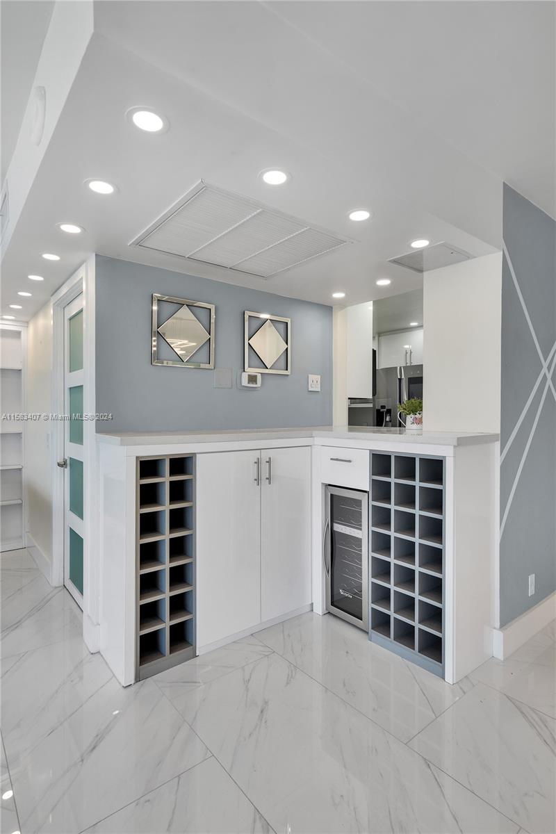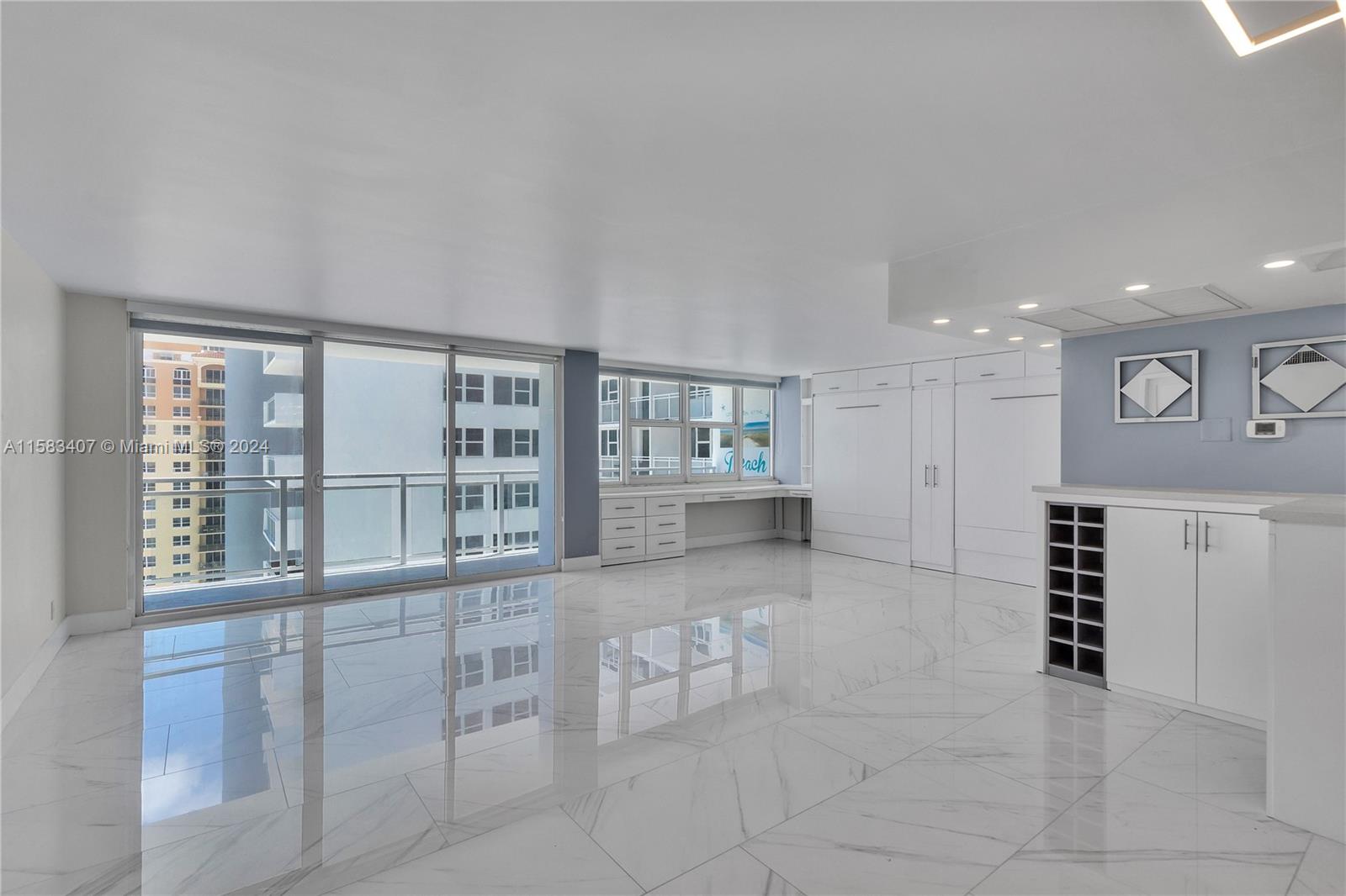 Experience luxury oceanfront living and enjoy the privilege of private beach access! Step inside this fully remodeled unit to discover a masterfully crafted open floor plan. The living room and dining area boast a built-in wine bar and work desk spaces, while the second bedroom offers versatility with two full-sized Murphy beds seamlessly integrated into the living area. Indulge in a chef's dream kitchen equipped with top-of-the-line appliances, including a Wolf espresso machine, and both bathrooms feature resort-style showers. This home also includes a Bosch washer & dryer for added convenience. Enjoy your private balcony with sweeping ocean views and breathtaking sunsets. Ideally situated between Fort Lauderdale and Miami Beach, this gem is nestled in one of Florida's most coveted areas.
