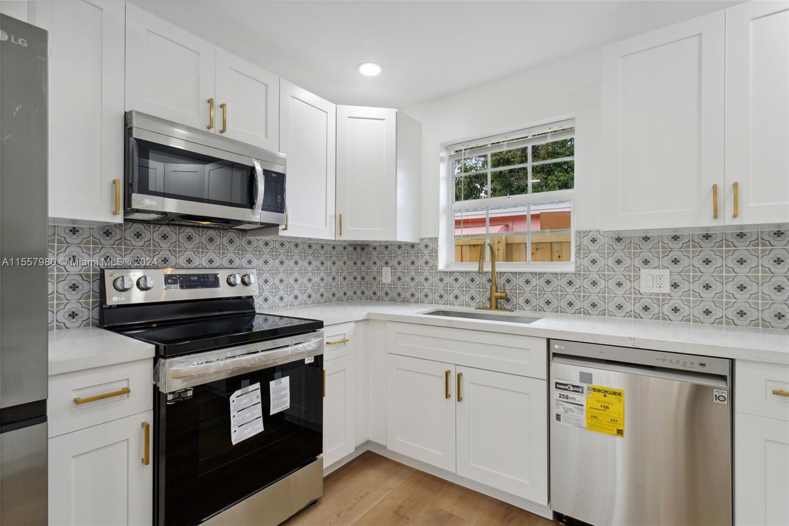 This stunning property has undergone a complete transformation, boasting a top-to-bottom remodel. Enjoy the luxury of a brand new kitchen with modern appliances, new washer & dryer, sleek vinyl floors throughout, and the comfort of a new air conditioning system, chlorine pool with brand new equipment. With a new roof with warranty, gutters, and updated electricity, and plumbing. This home offers peace of mind. Step into the spa-like bathrooms featuring all-new fixtures. It's an opportunity not to be missed. This property is 8 mins away from Aventura Mall, 5 mins away from Gulfstream Park, 13 mins away from the beaches, 5 mins away from the Brightline train station to Orlando. Don't miss out on this great opportunity wether is for you to live or short or long term rental. Your choice.